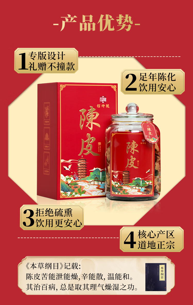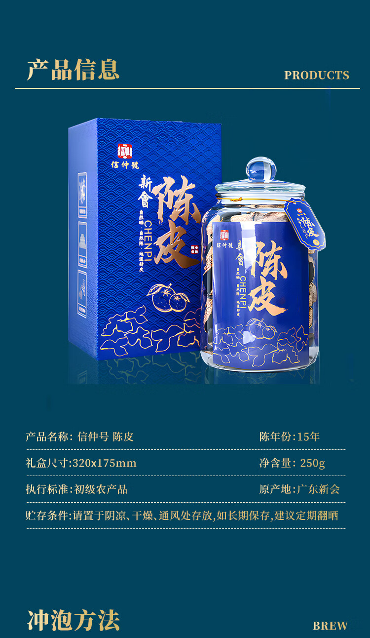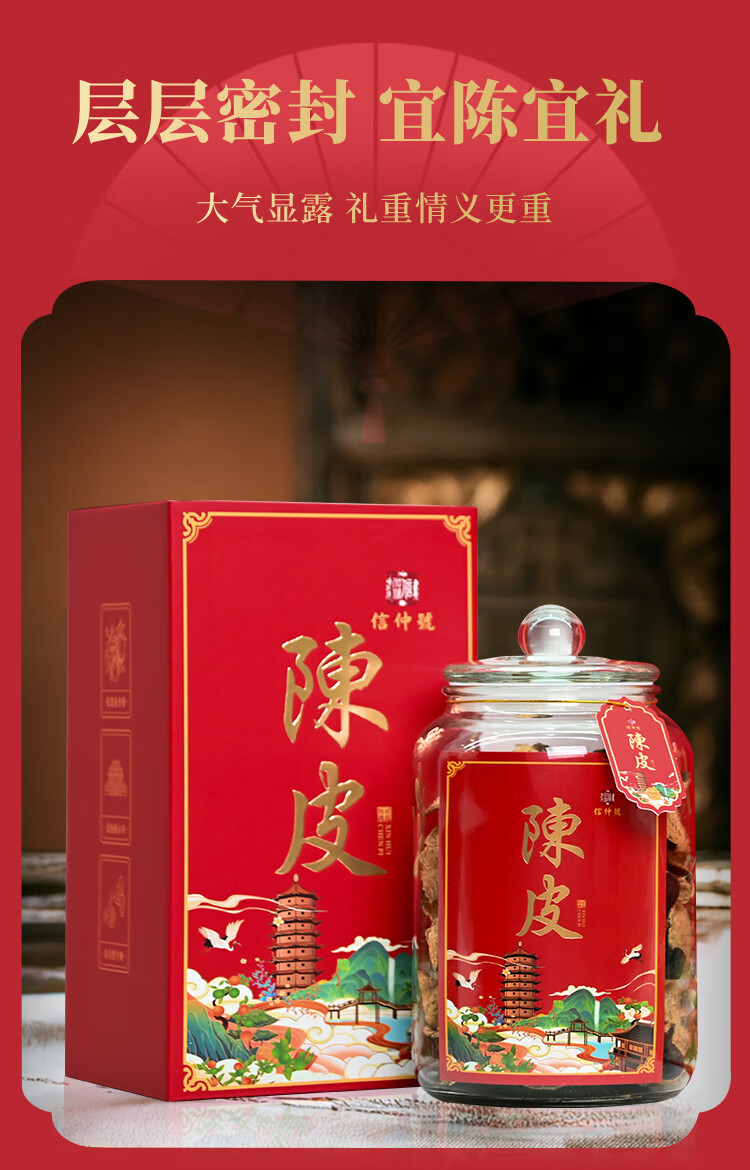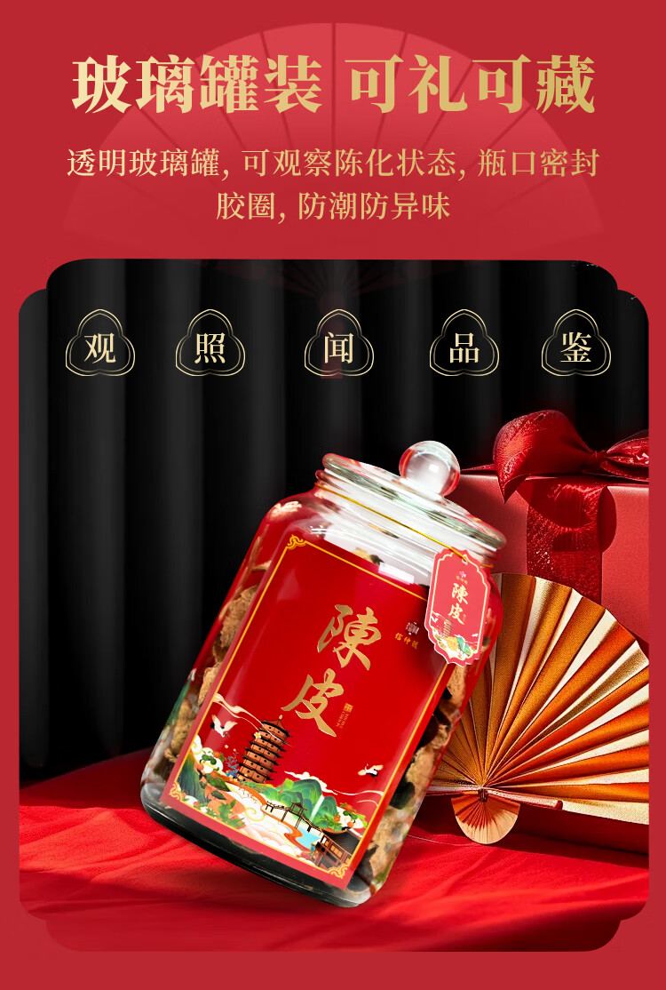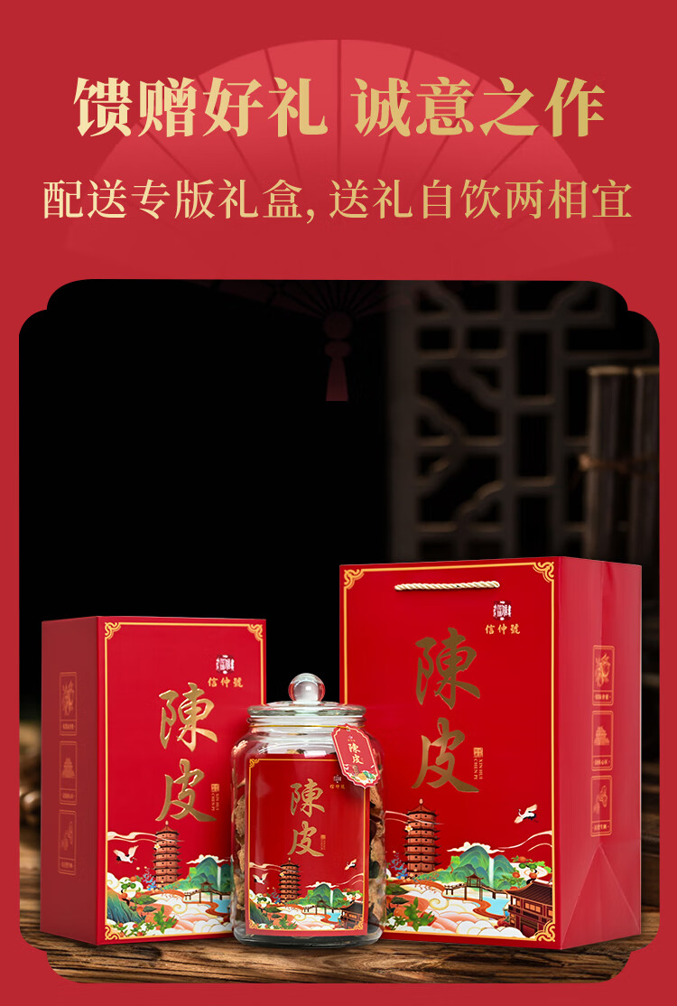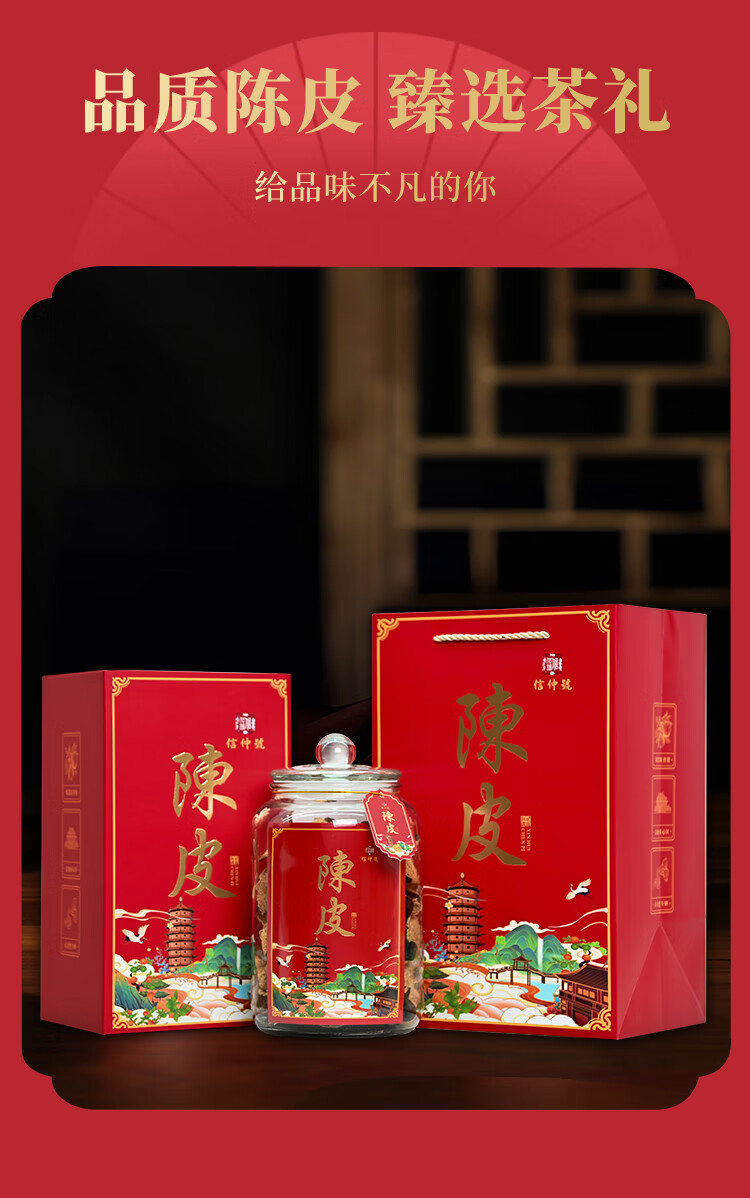 信仲号新会陈皮八年十年十五年礼盒泡茶广东特产送礼 【经典十年】新会老陈皮 玻璃罐礼盒 200g*1盒