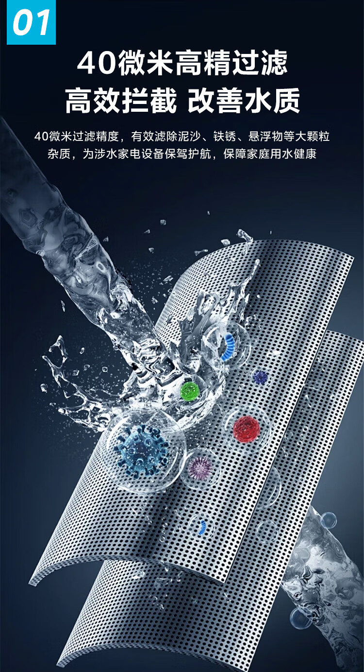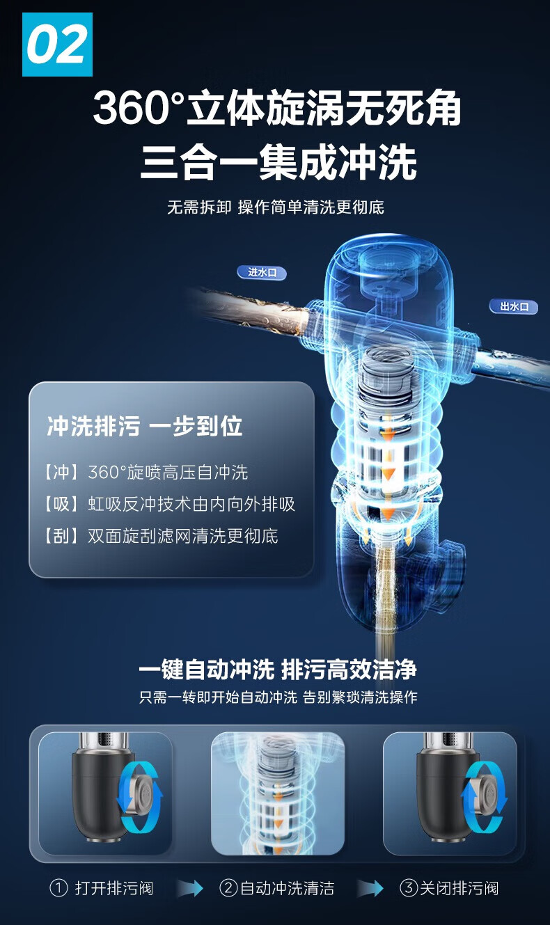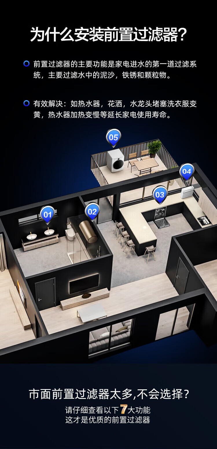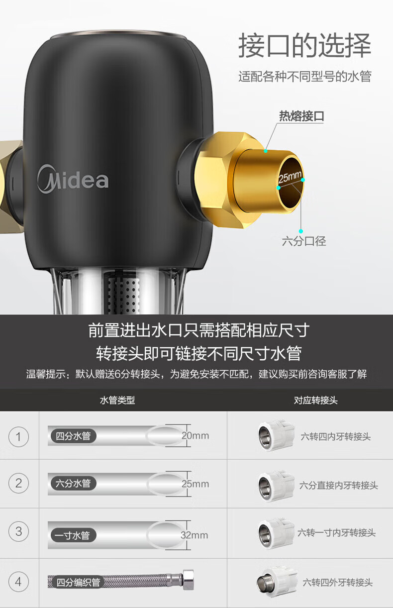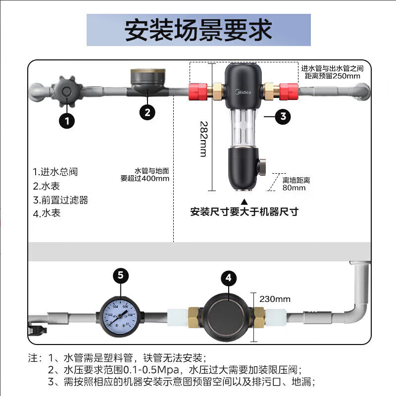 美的(Midea) 前置过滤器净水器10T大通量 全屋自来水终身免换滤芯 虹吸式高压自动反冲洗 防爆QZBW20S-48前置 【性价比顶配款-10T大通量】