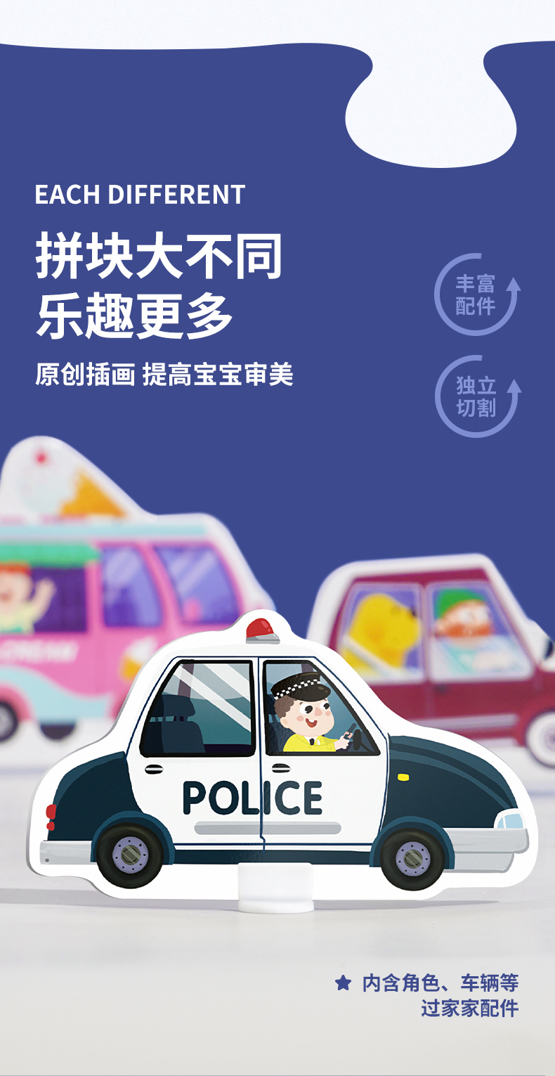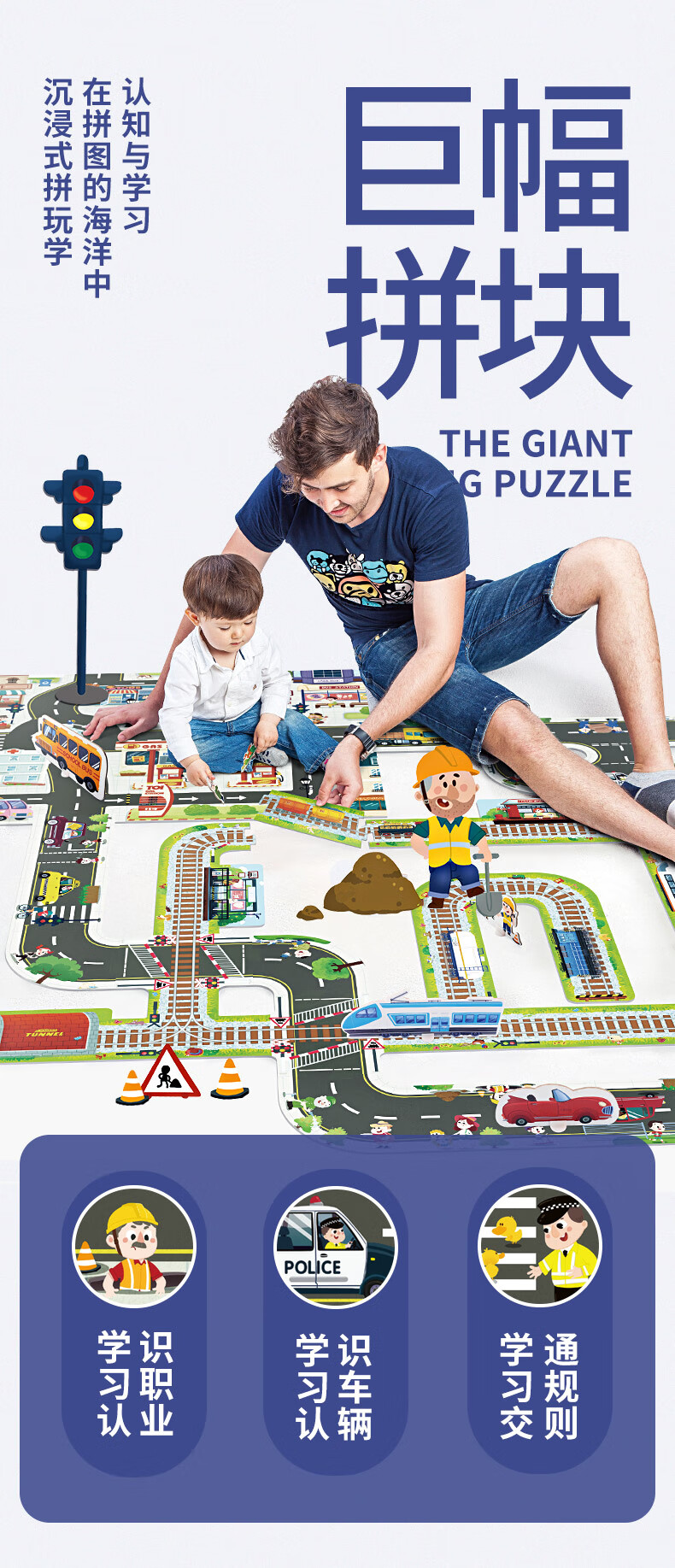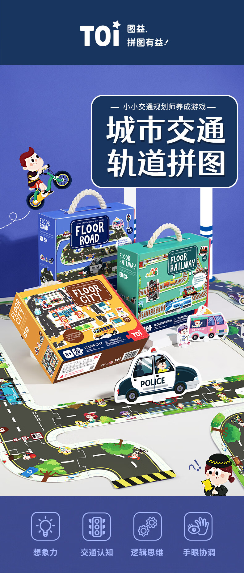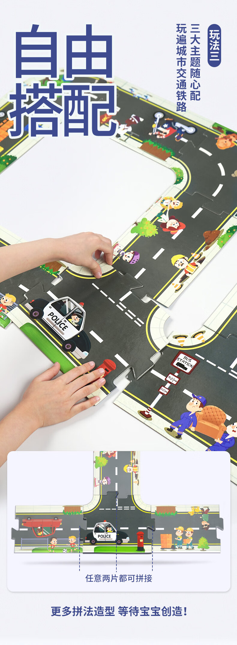 TOI拼图3-6岁城市交通轨道儿童拼图大块早教玩具男女孩生日礼物 城市款