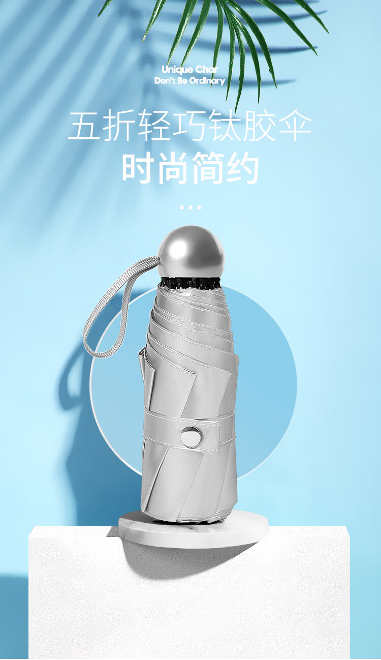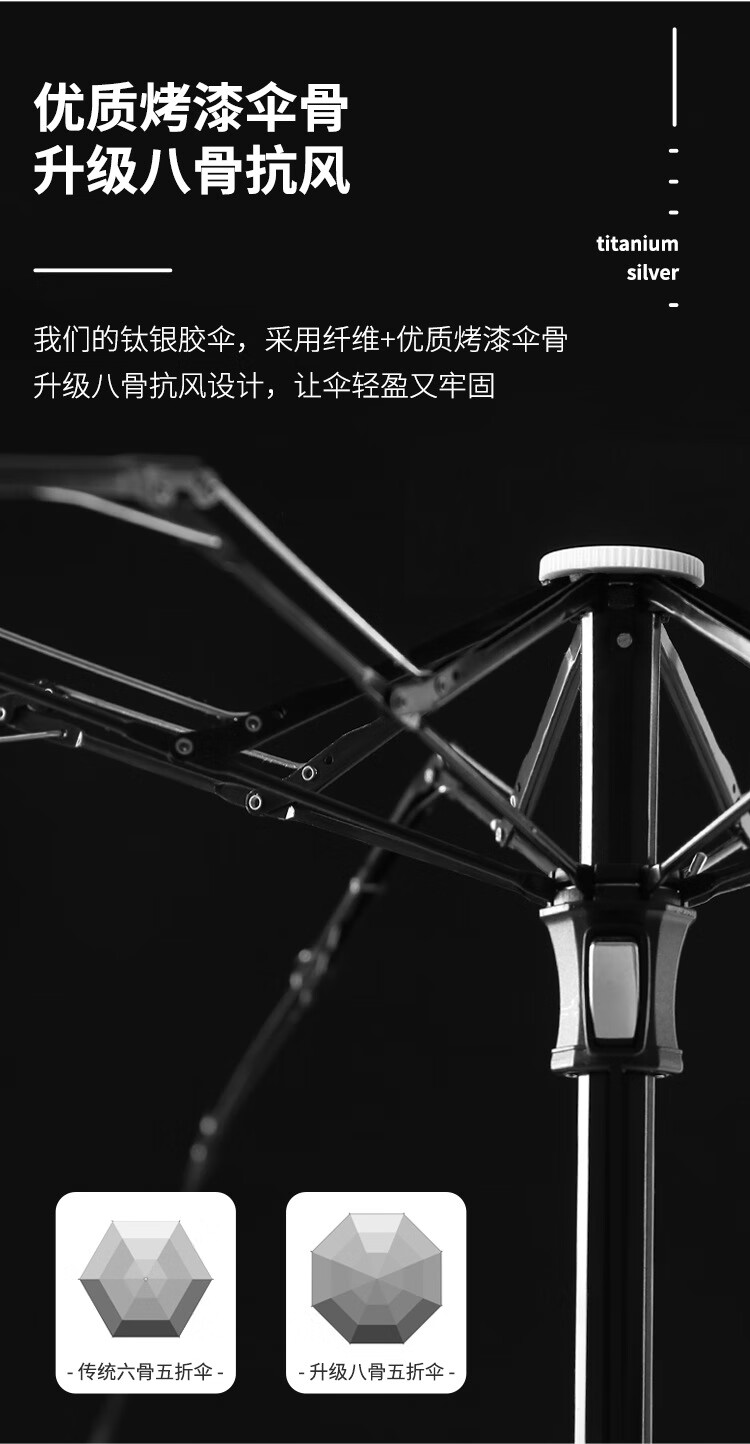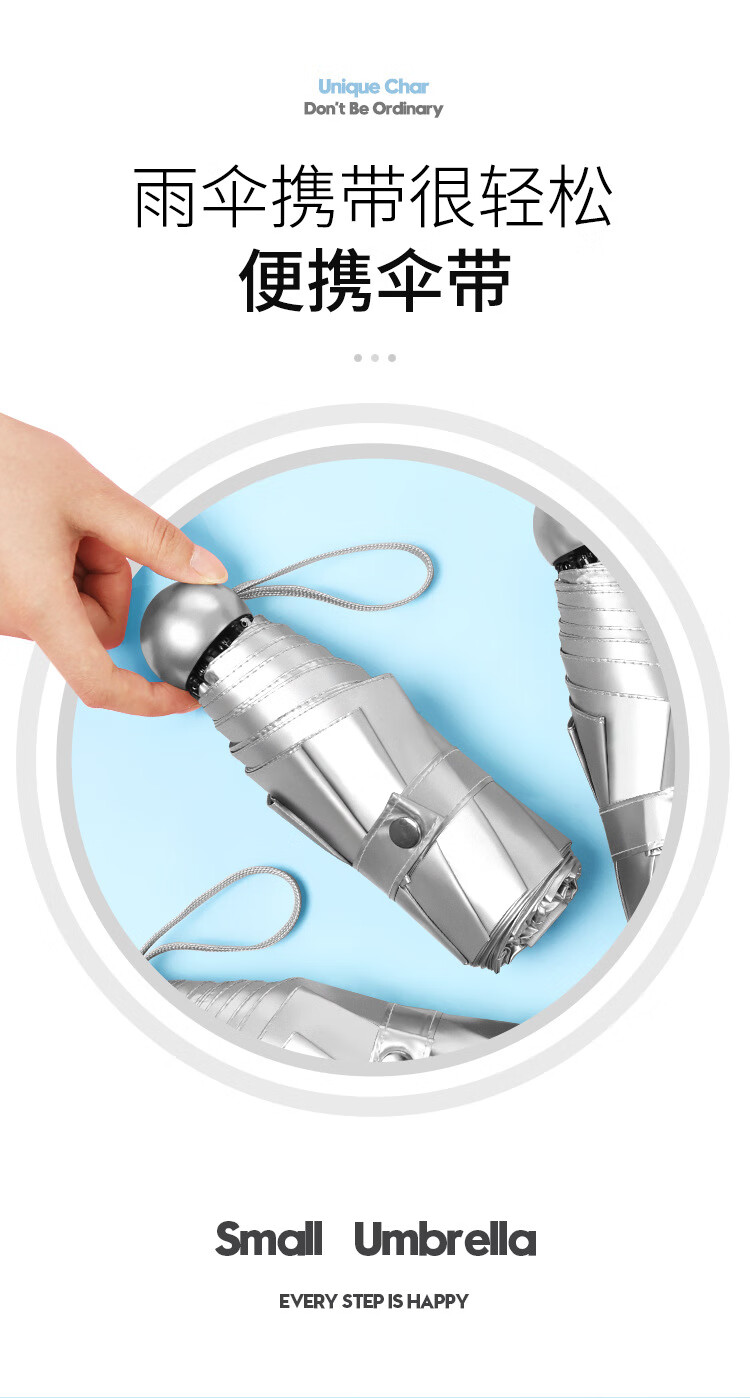 恋云【优选好物】新款钛银胶八股五折伞加大防晒折叠迷你两用雨伞 手动uv藏青(三折8骨) 21寸*8骨