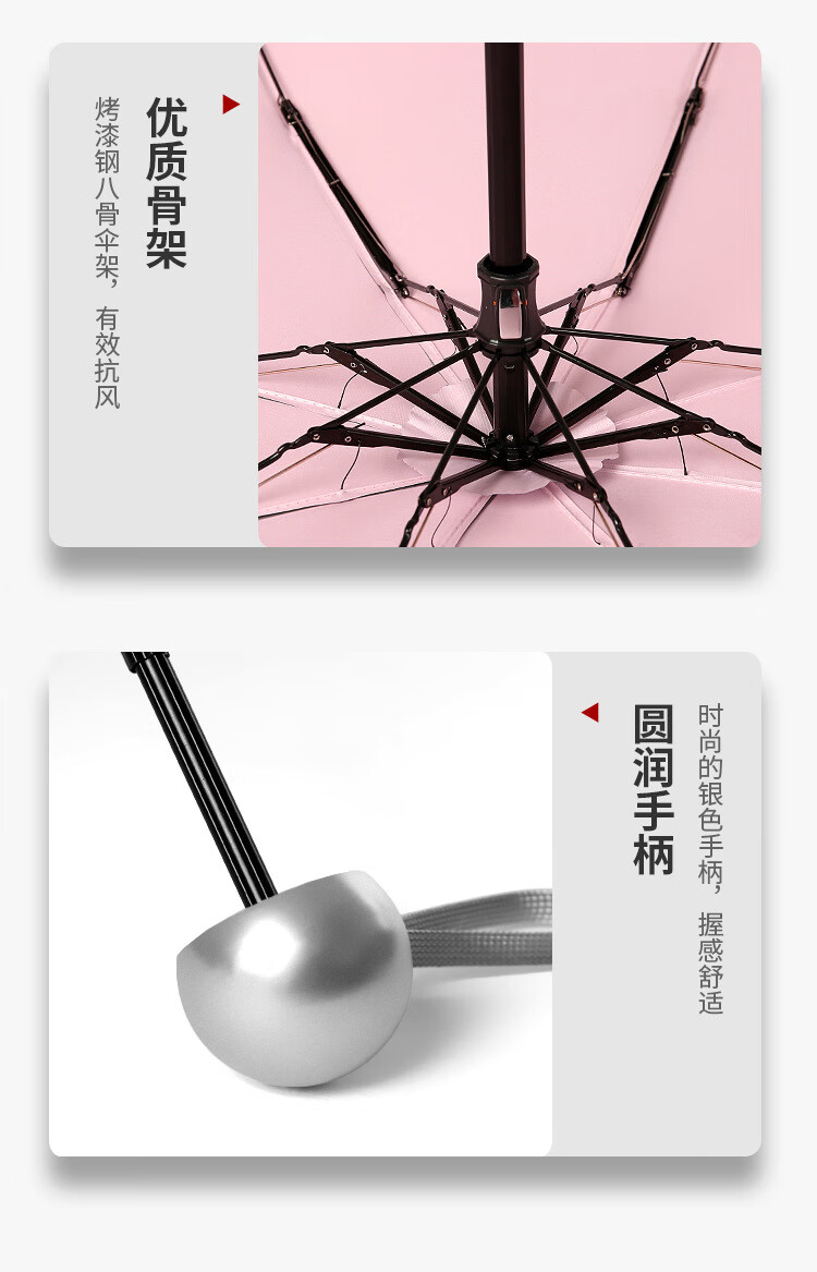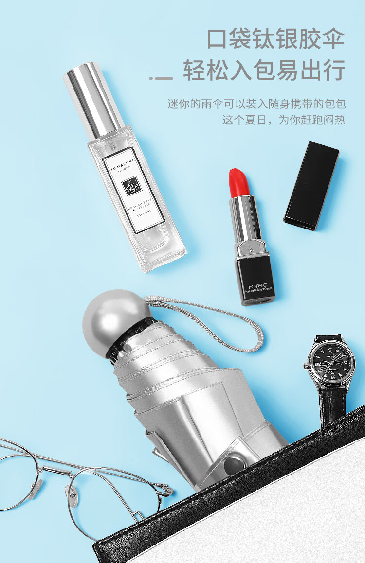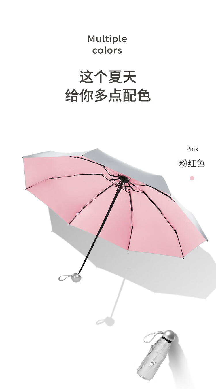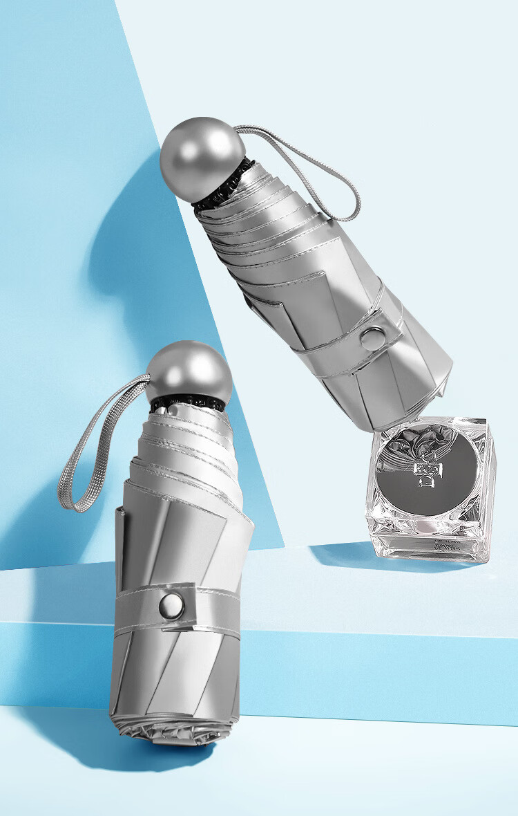 恋云【优选好物】新款钛银胶八股五折伞加大防晒折叠迷你两用雨伞 手动uv藏青(三折8骨) 21寸*8骨