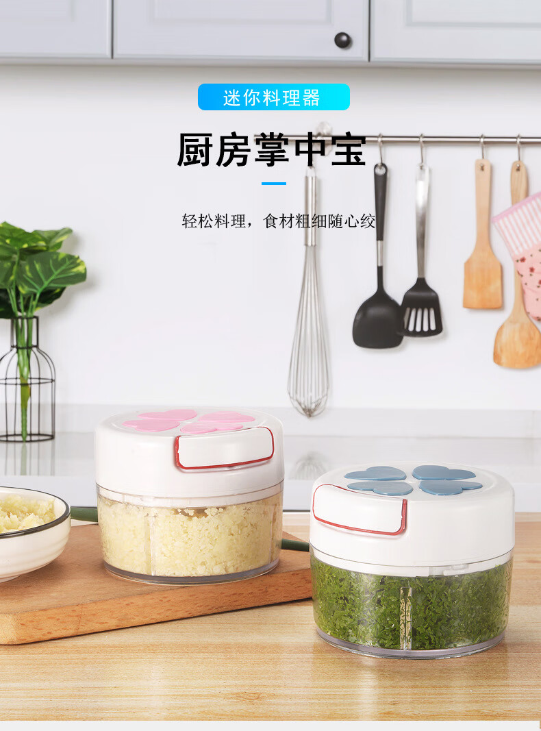 其他家2899小型姜蒜搅蒜器迷你蒜泥压捣蒜器手动拉蒜器打蒜机姜末蒜泥器 粉色