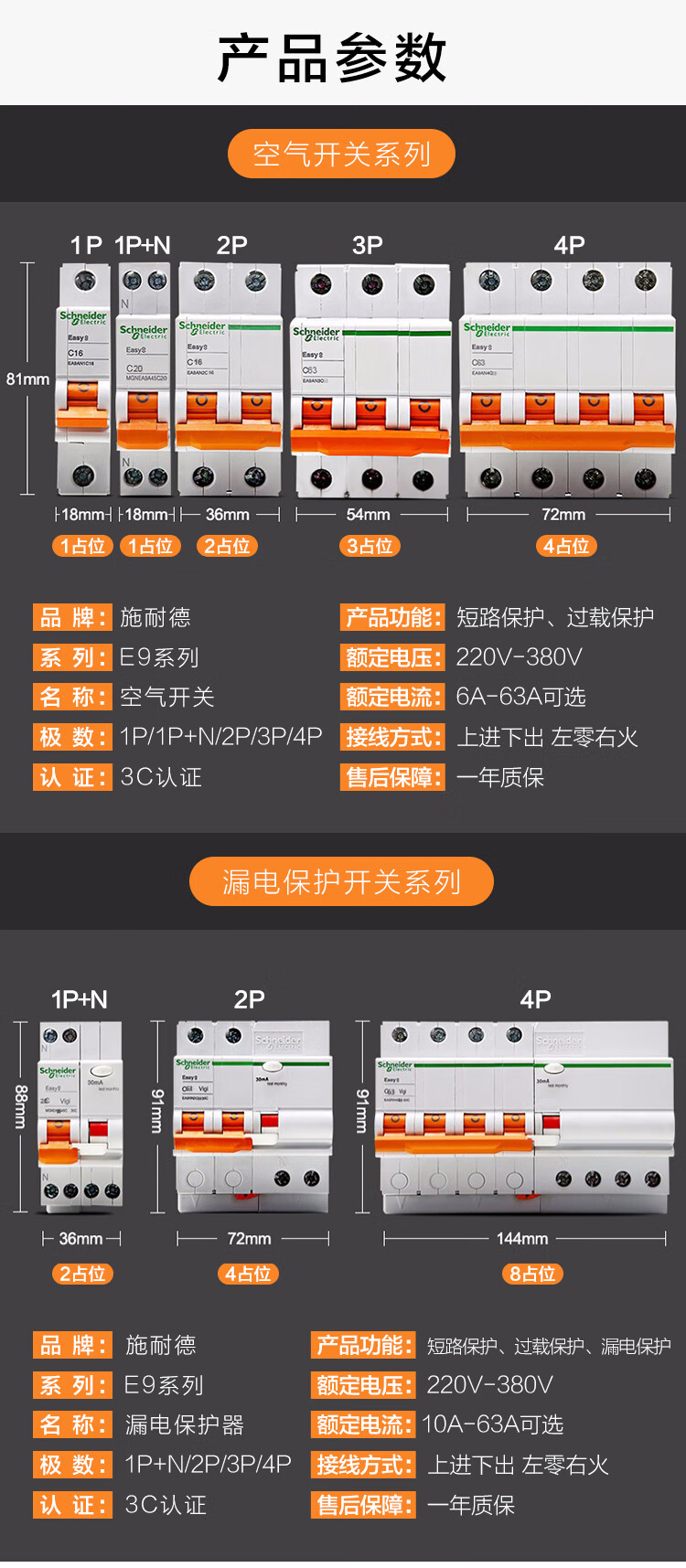施耐德 断路器空气开关 配电箱套装 漏电保护开关全套 清单报价专用链接