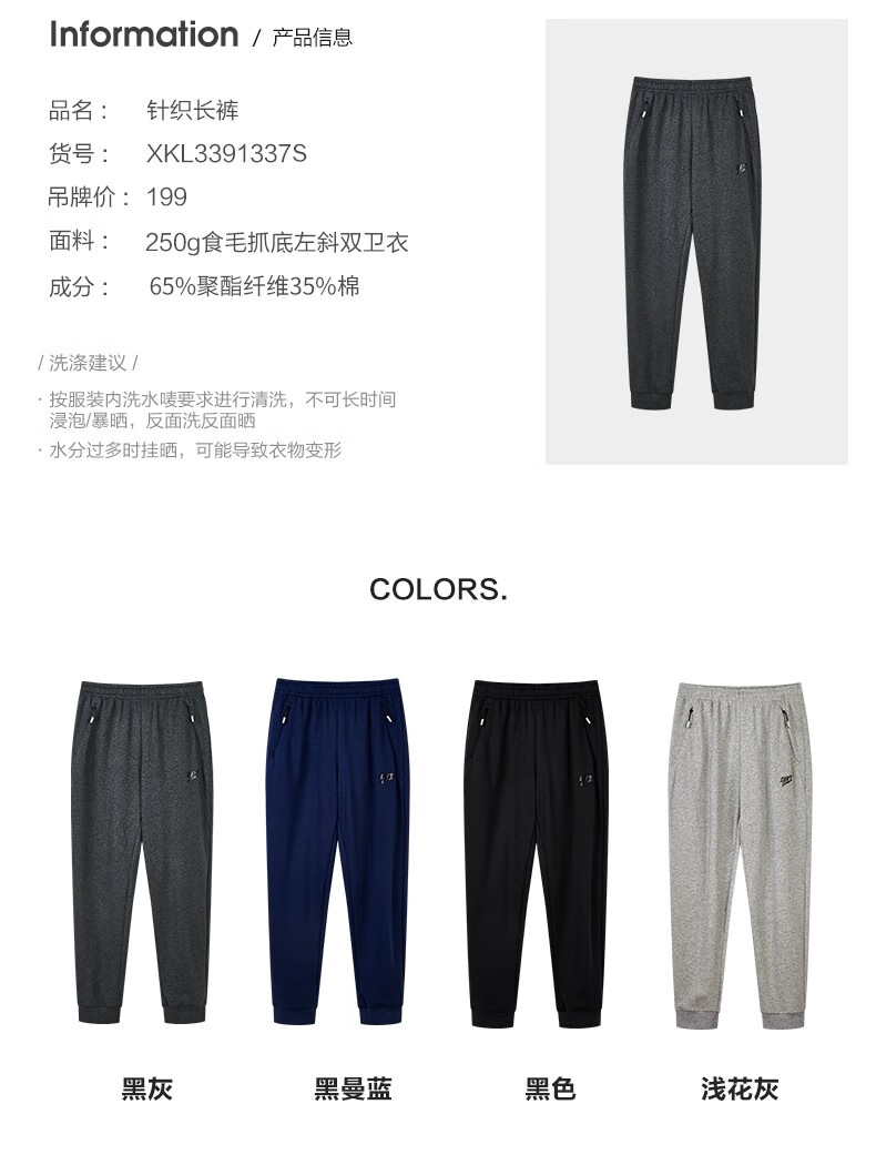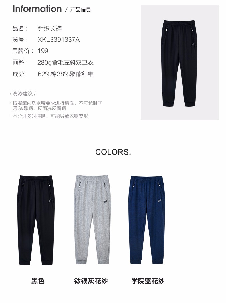 乔丹QIAODAN运动裤男裤卫裤子男秋冬季针织束脚裤休闲裤男 钛银灰花纱 4XL
