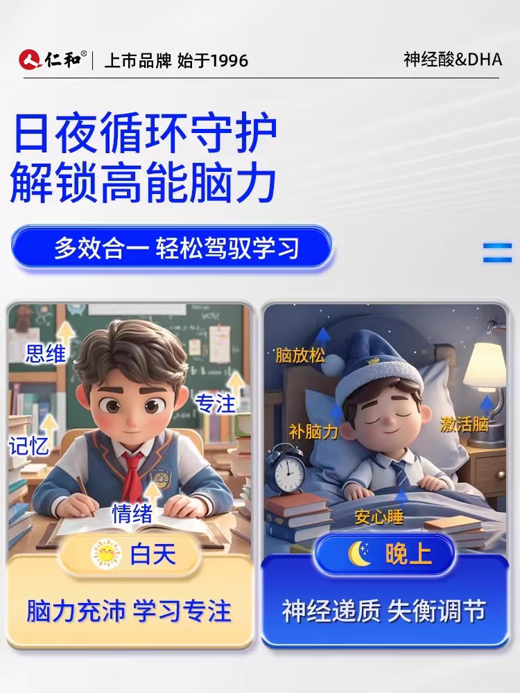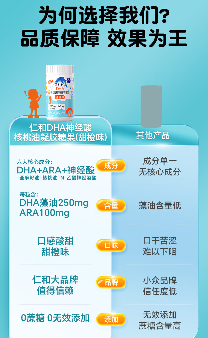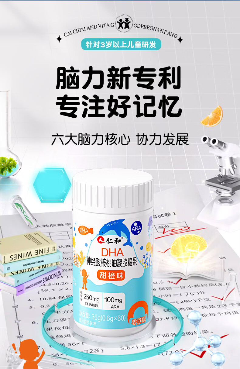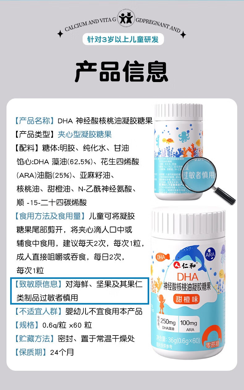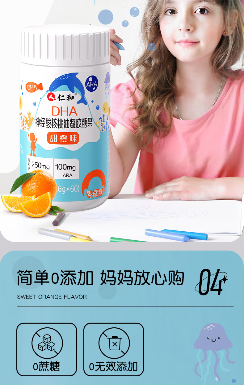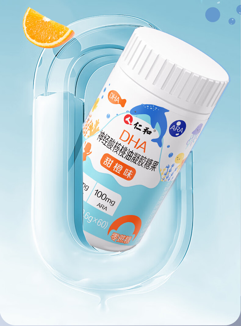 仁和【升级版】dha神经酸核桃油250mgDHA儿童学生成人凝胶糖果3盒装