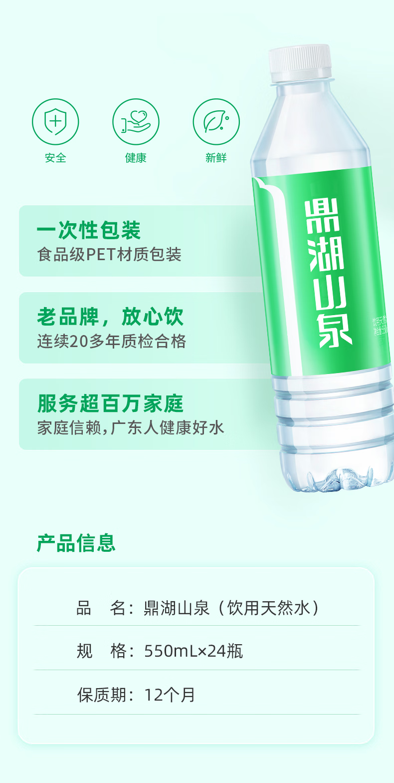 鼎湖山泉饮用天然水 550ml/瓶 清甜健康瓶装水含矿物质 12瓶