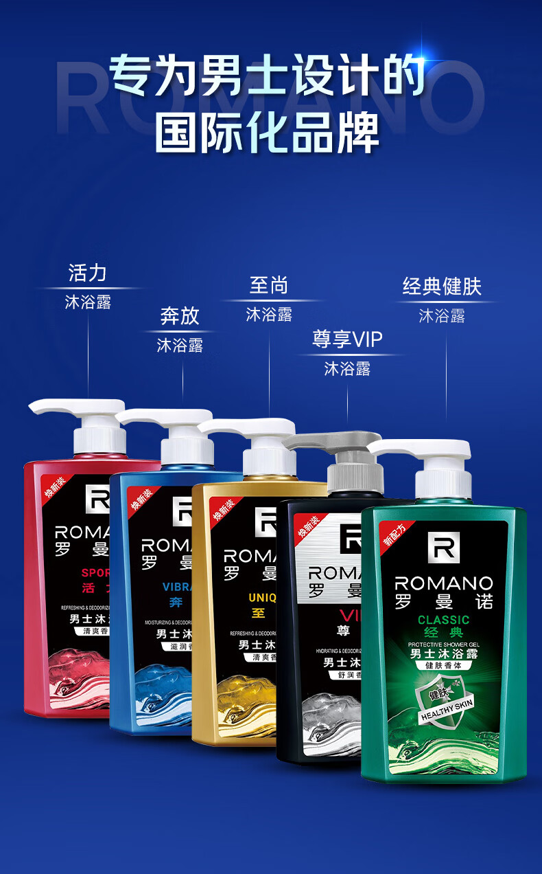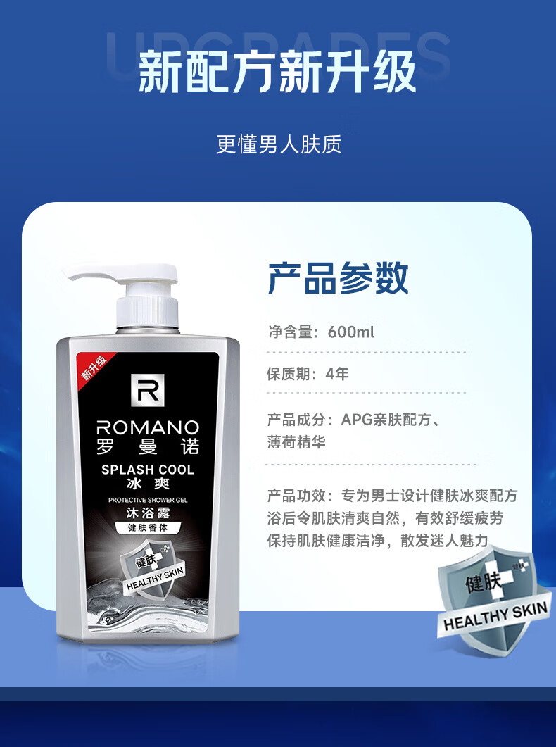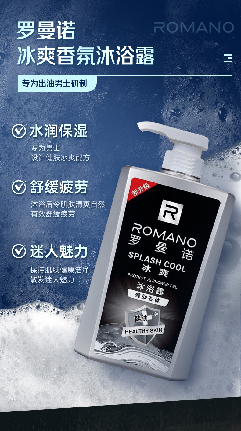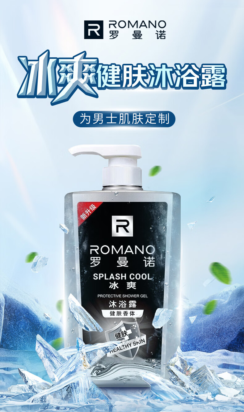 罗曼诺(ROMANO)沐浴露男士 薄荷冰爽香氛沐浴乳 健肤清凉保湿留香持久600ml