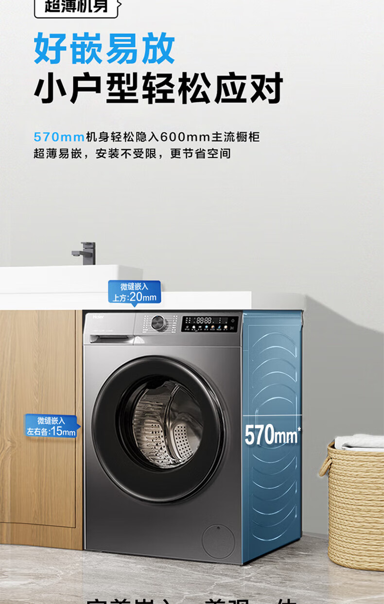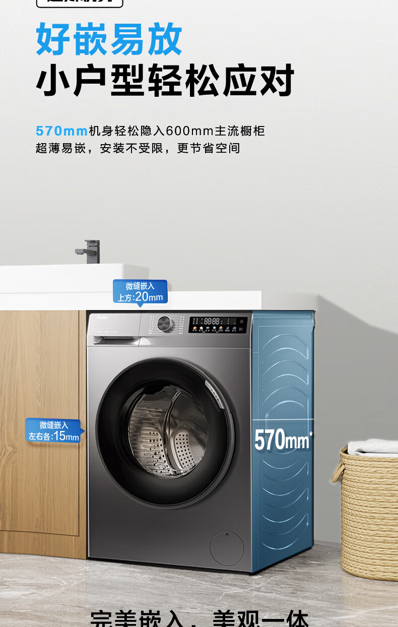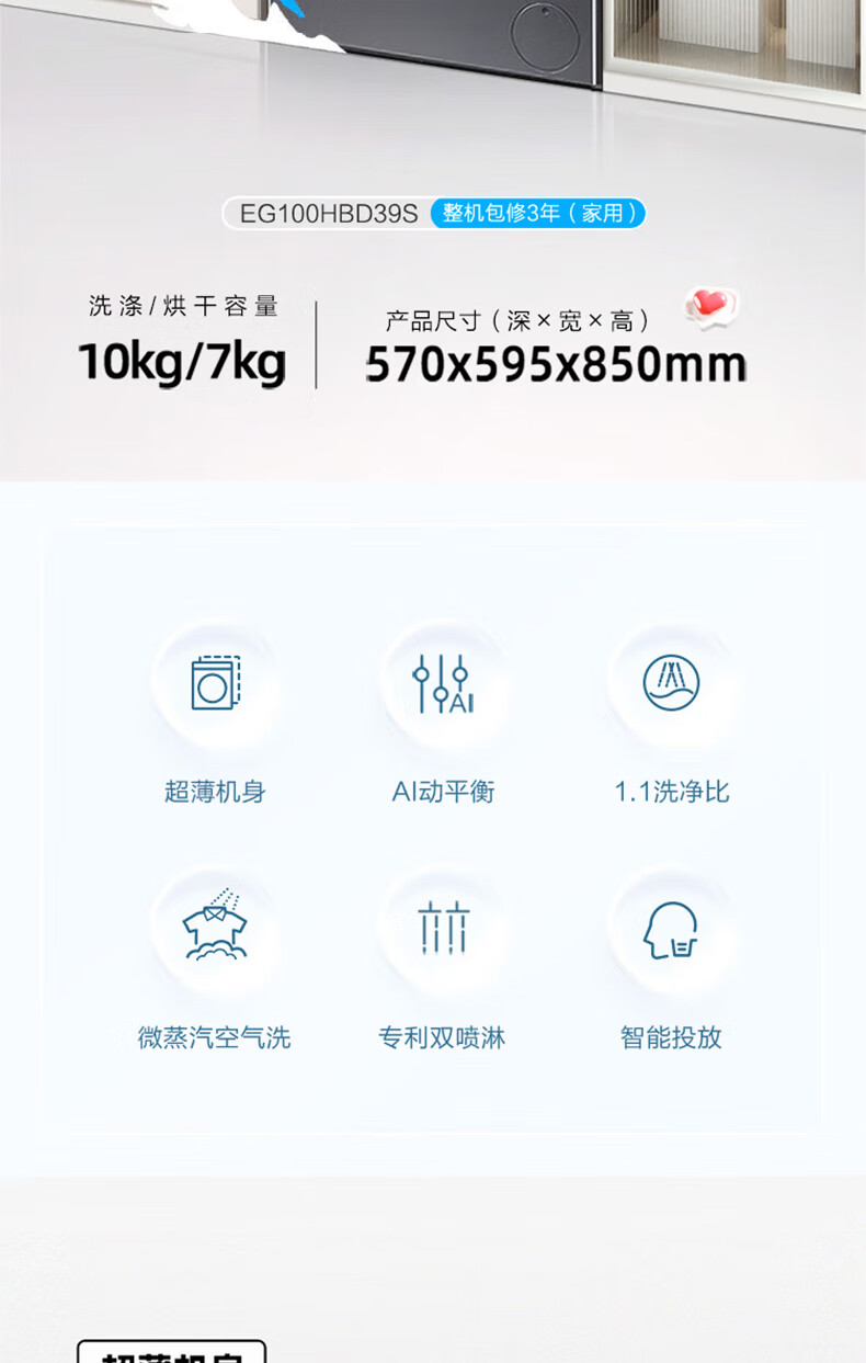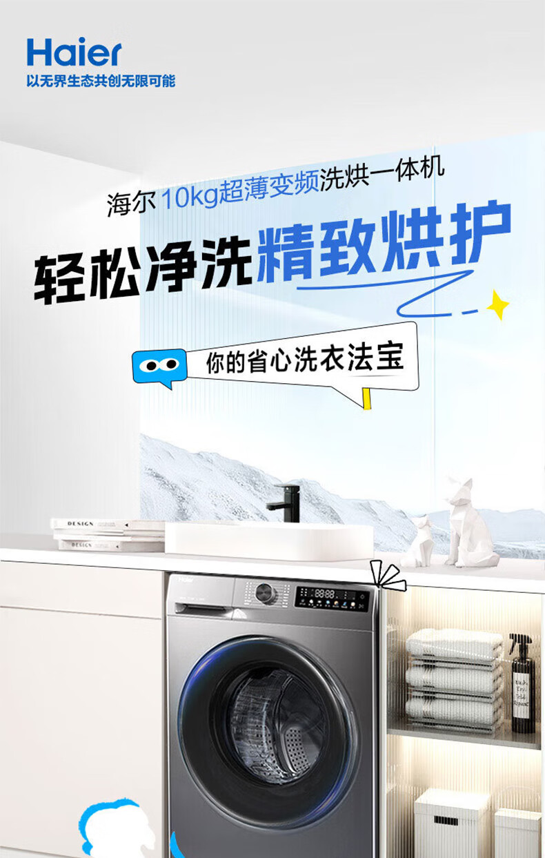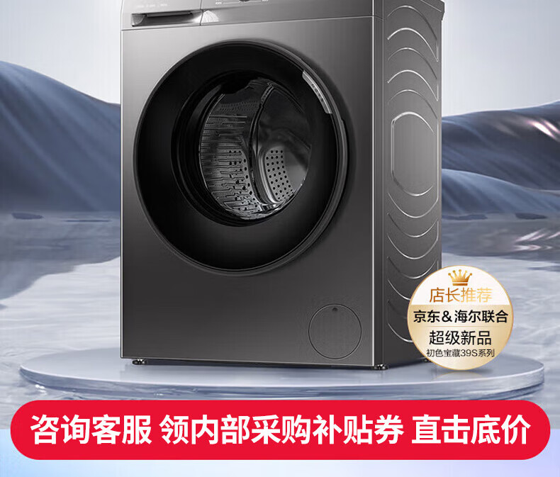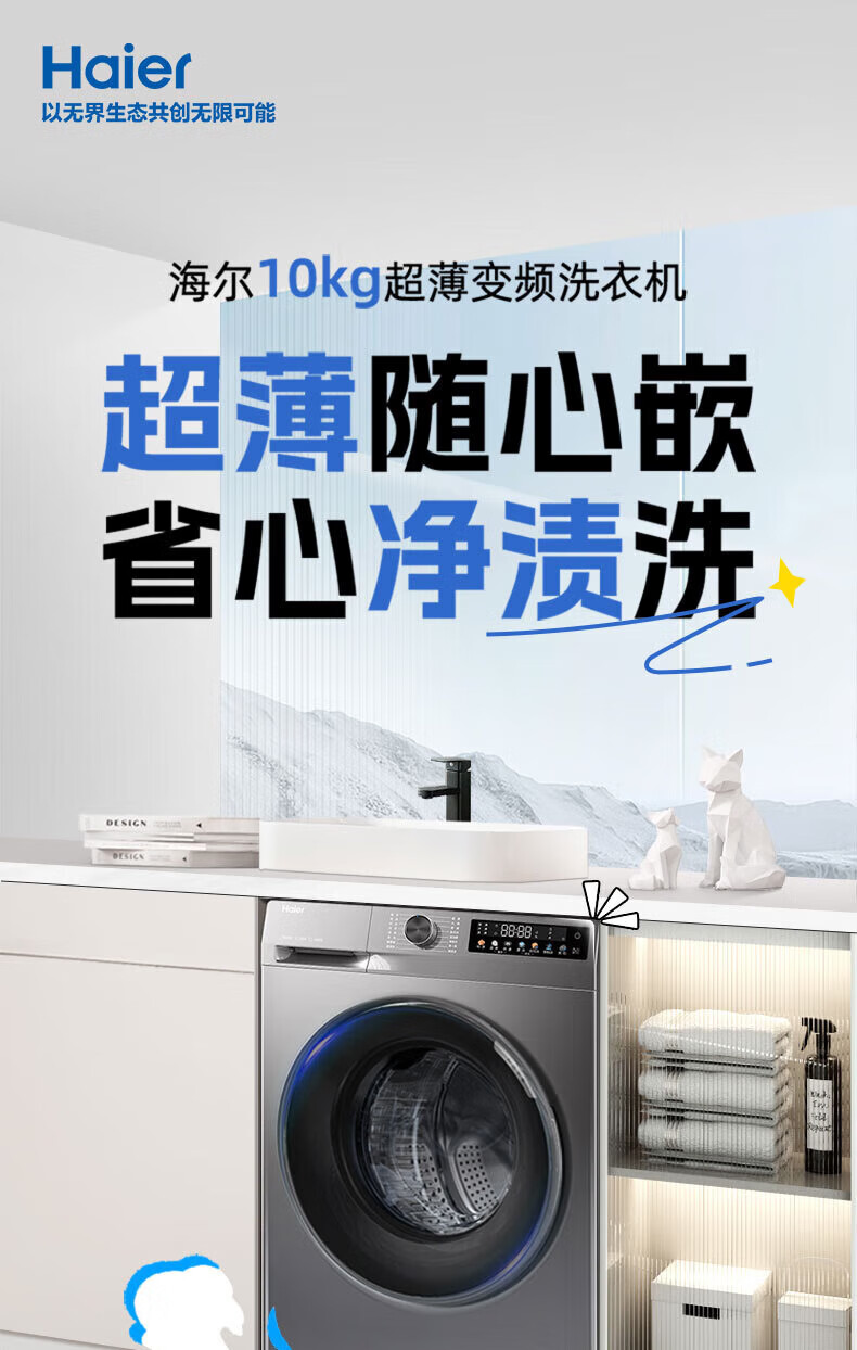 海尔(Haier)滚筒洗衣机全自动10公斤大容量超薄平嵌一级能效变频节能除菌瞒39S初色系列国家补贴20%以旧换新 【洗烘一体】六维减震+智投+3档空气洗+清洁毛絮