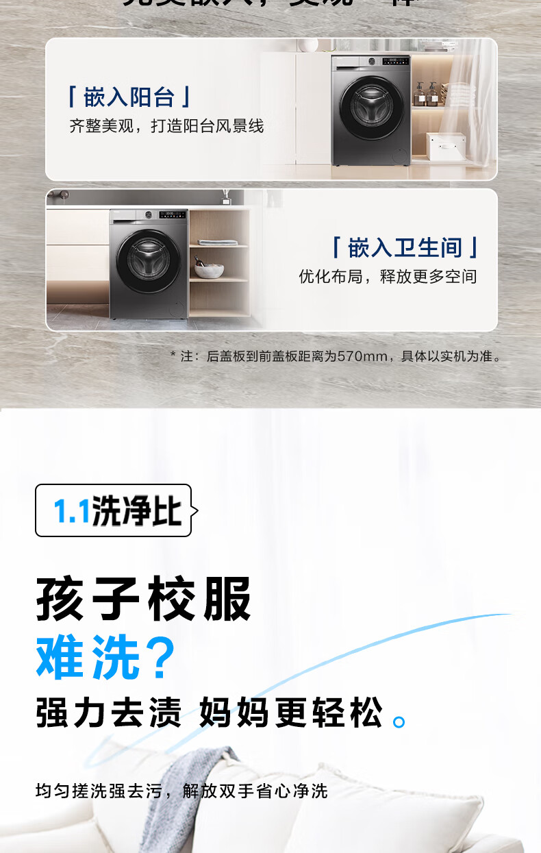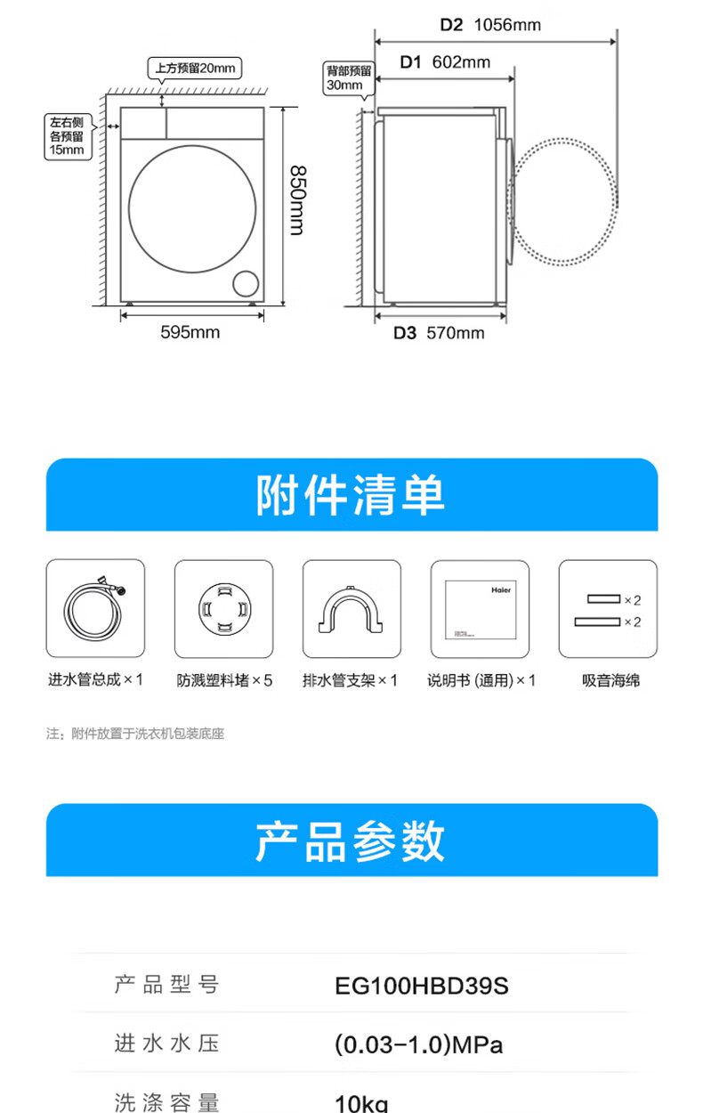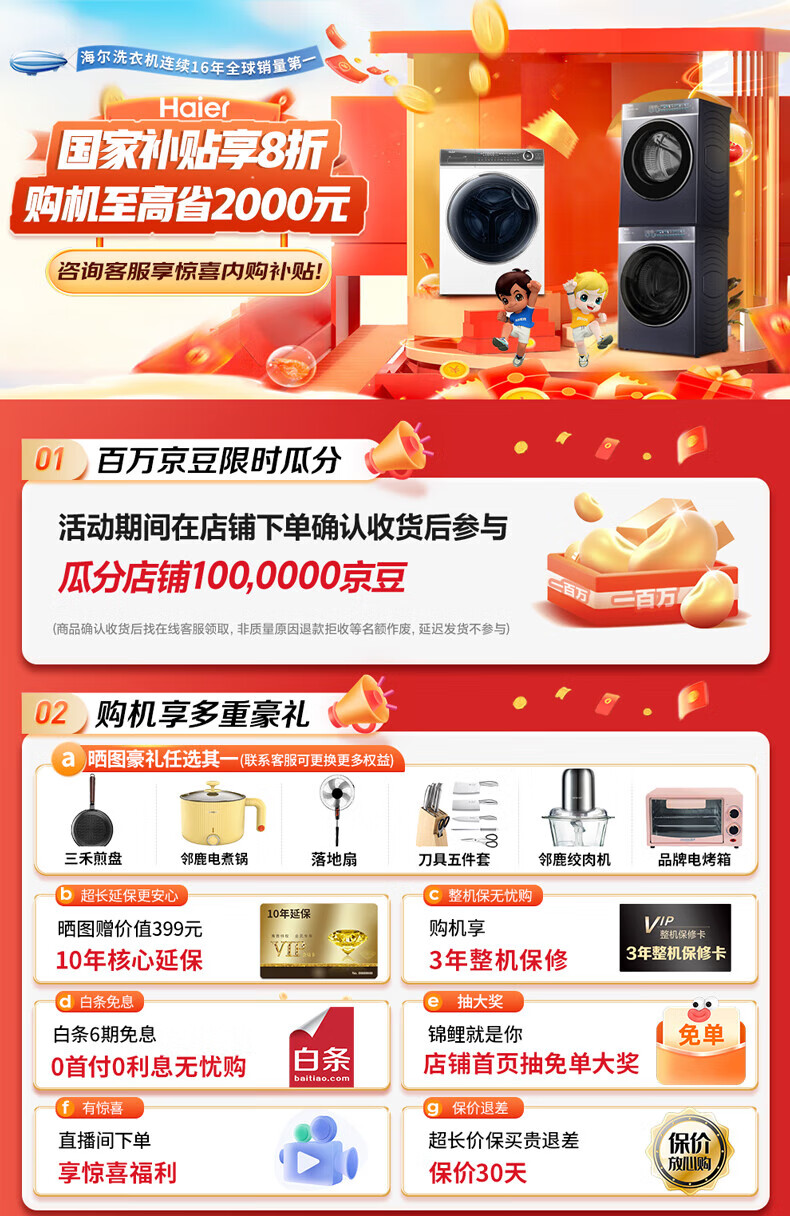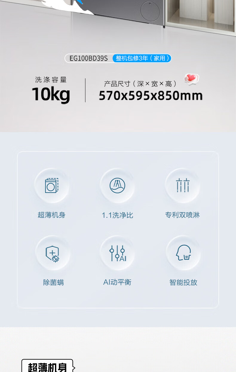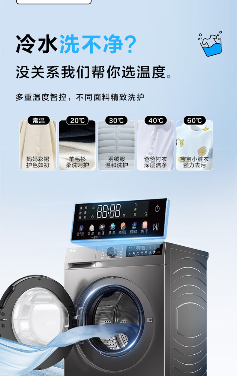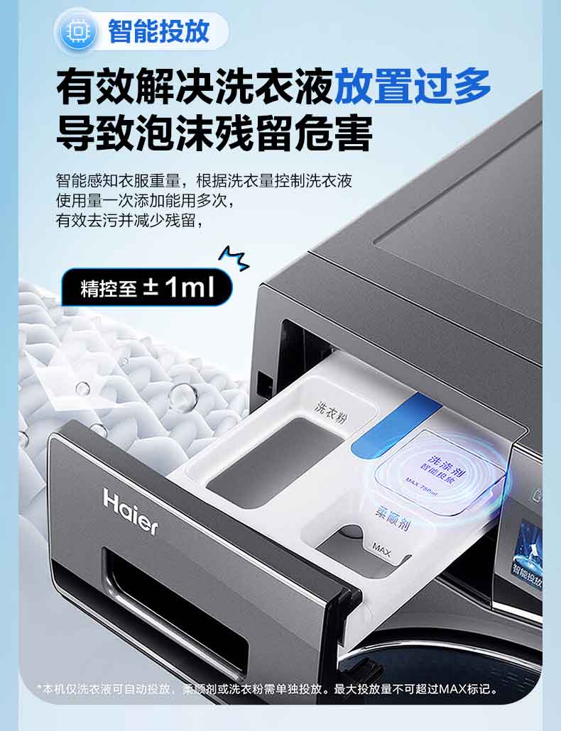 海尔(Haier)滚筒洗衣机全自动10公斤大容量超薄平嵌一级能效变频节能除菌瞒39S初色系列国家补贴20%以旧换新 【洗烘一体】六维减震+智投+3档空气洗+清洁毛絮