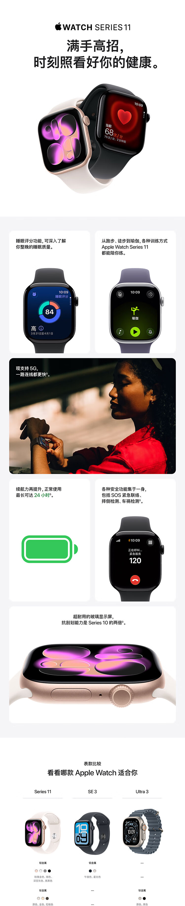 Apple/苹果 Watch S11 智能手表GPS+蜂窝款46毫米原色钛金属表壳金属原色米兰尼斯表带M/L MFDT4CH/B