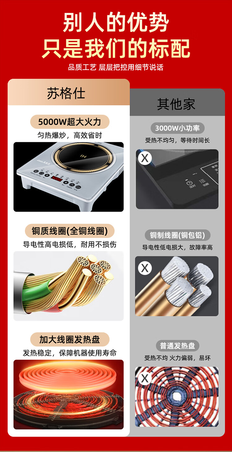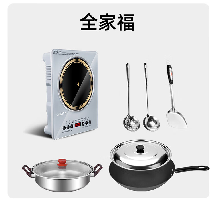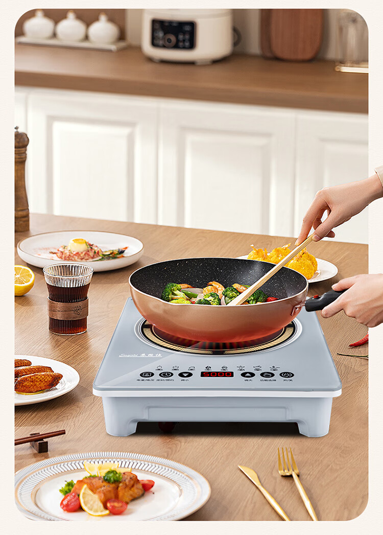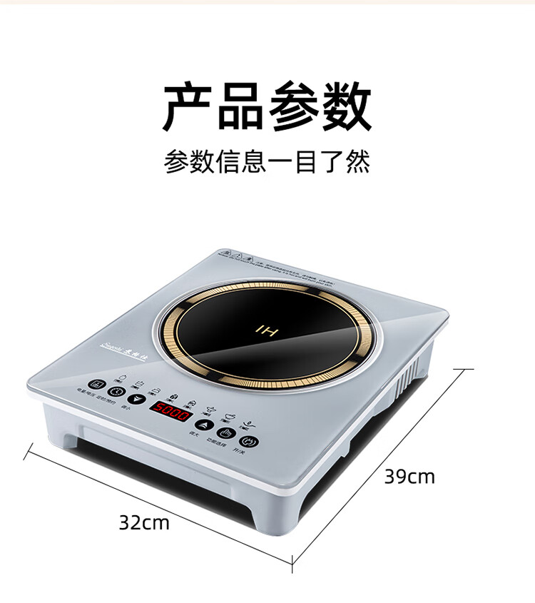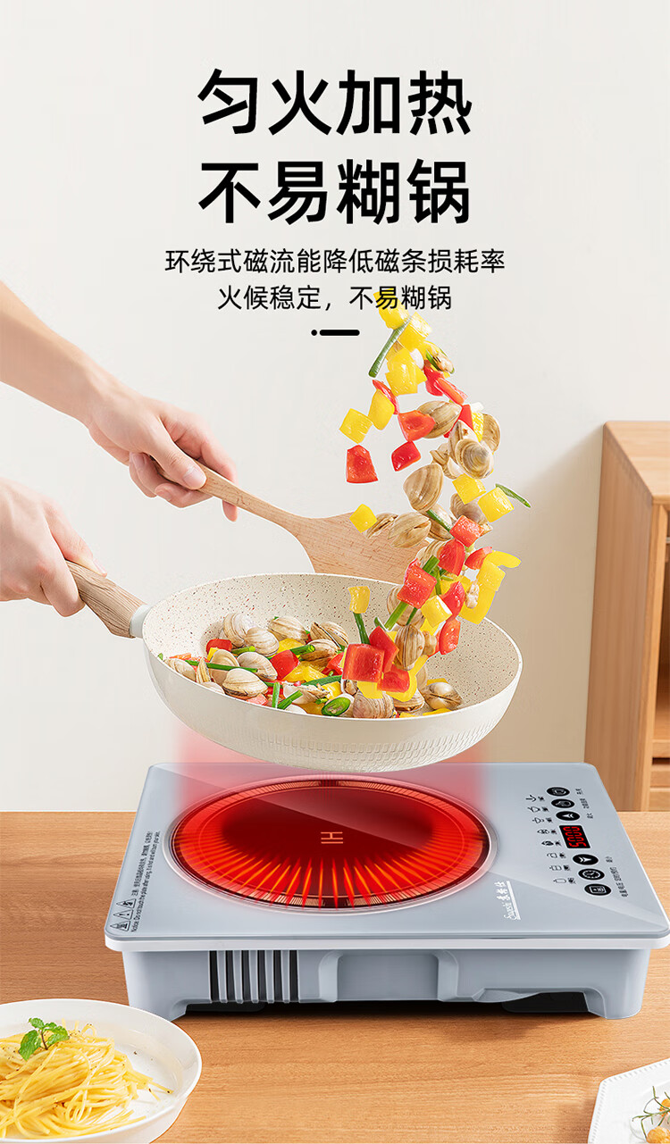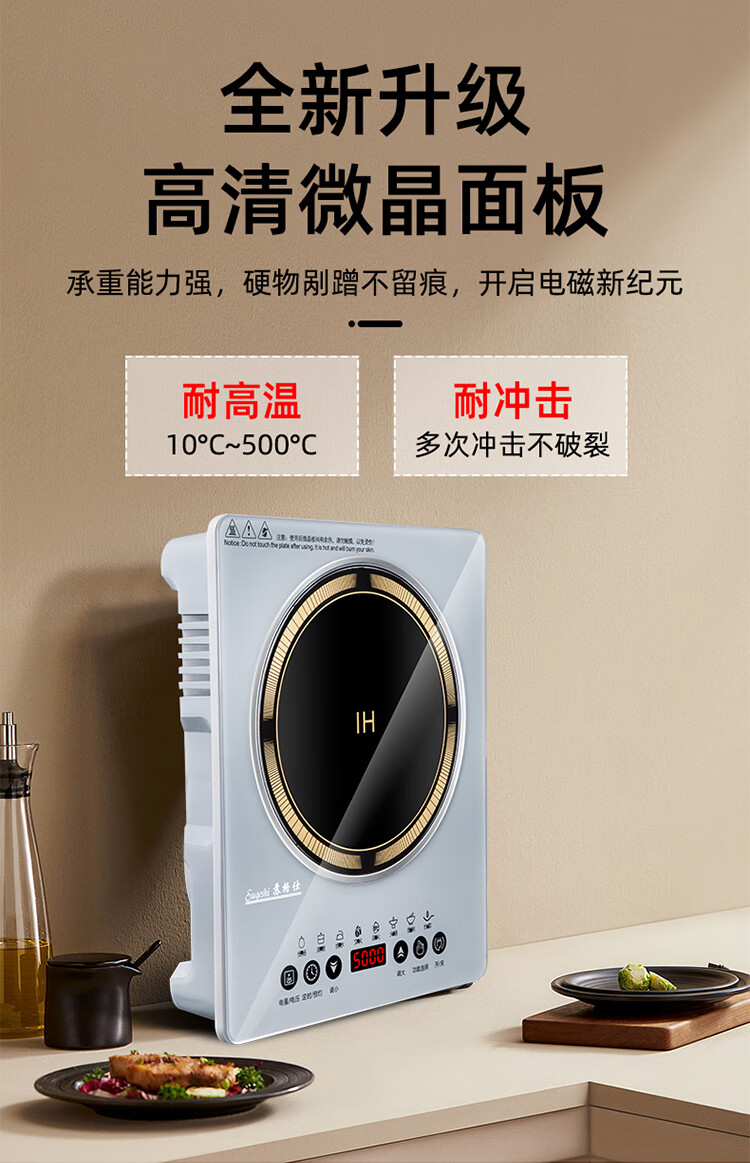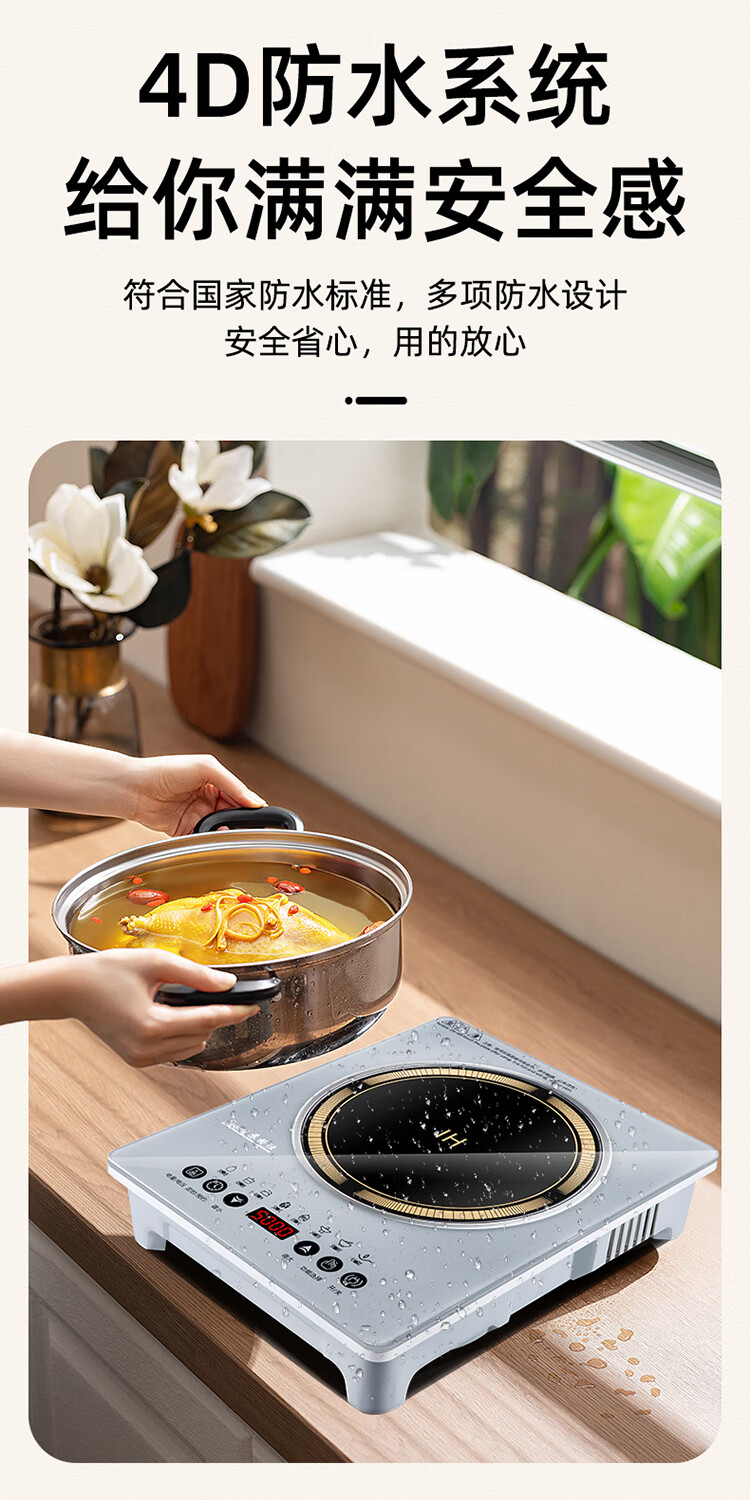 苏格仕电磁炉新款智能大功率5000W电磁灶家用商用防水无辐射猛火灶平面 灰色5000W单机+汤煲+炒锅