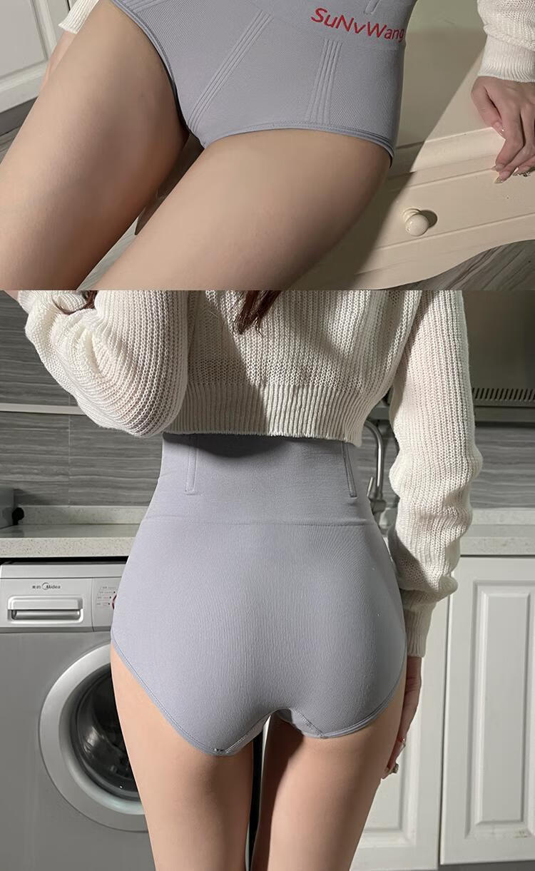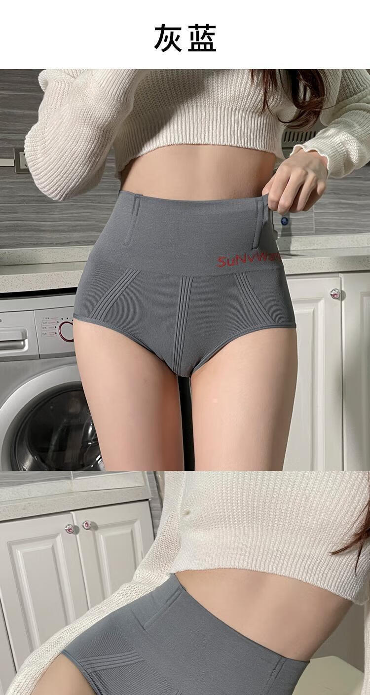 GEEZORO强力提臀收腹裤收腰收肚子塑身加强版高腰女士内裤女薄款塑形短裤 灰蓝 1条 L 115-135斤