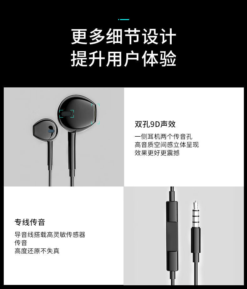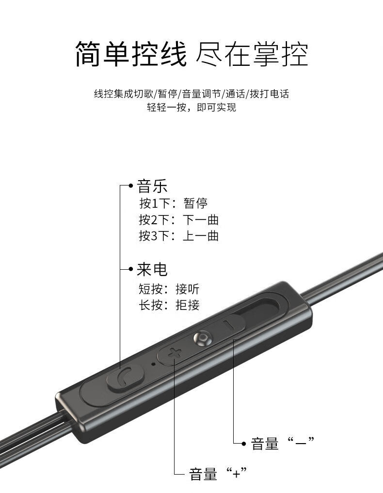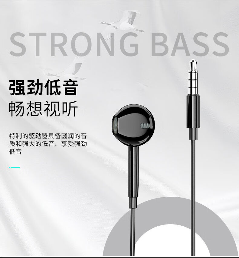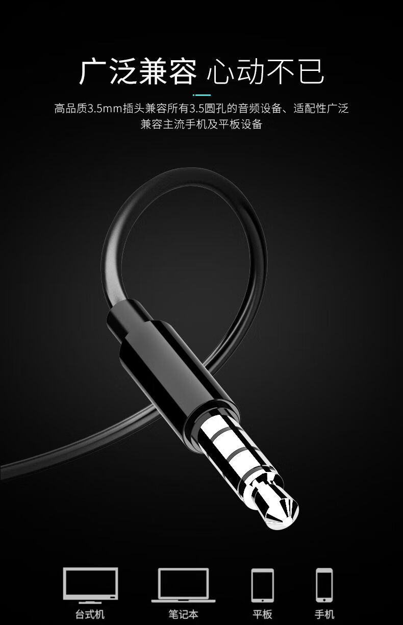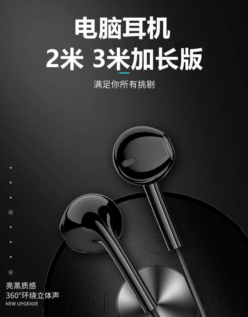 RSRDDY 电脑耳机入耳式带麦有线2米3米语音加长线直播声卡专用双插头 2米【白色】单插头 标配