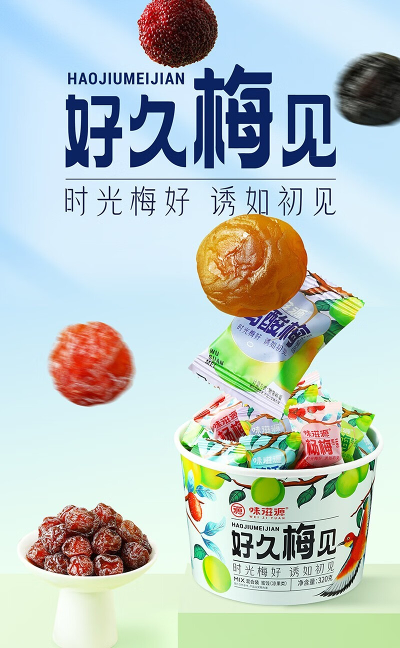 味滋源坚果炒货零食大礼包中式小蛋糕饼干糕点代餐饱腹小食品甜点美食 梅子桶320g/桶 1件