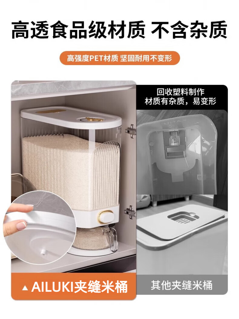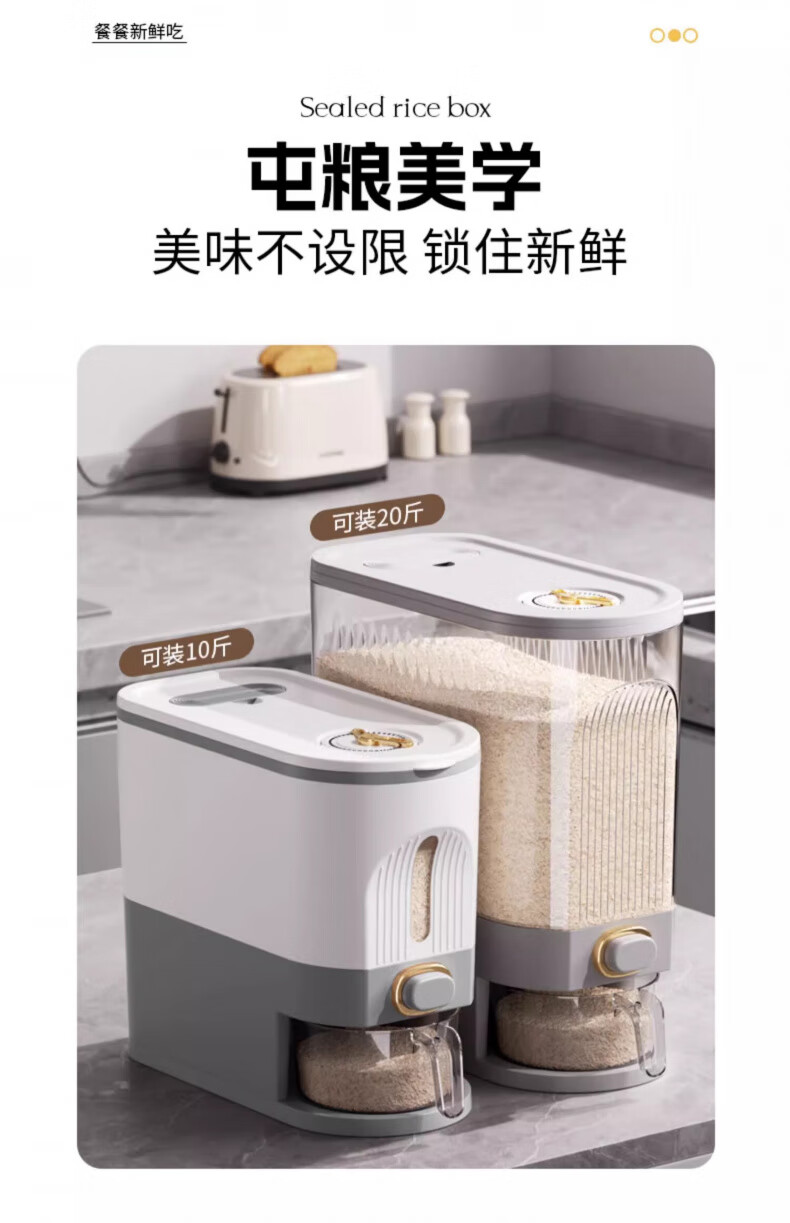 AILUKI日本米桶20斤装2025新款防虫防潮食品级专用防虫储米箱防潮密封 团购 赠量米杯