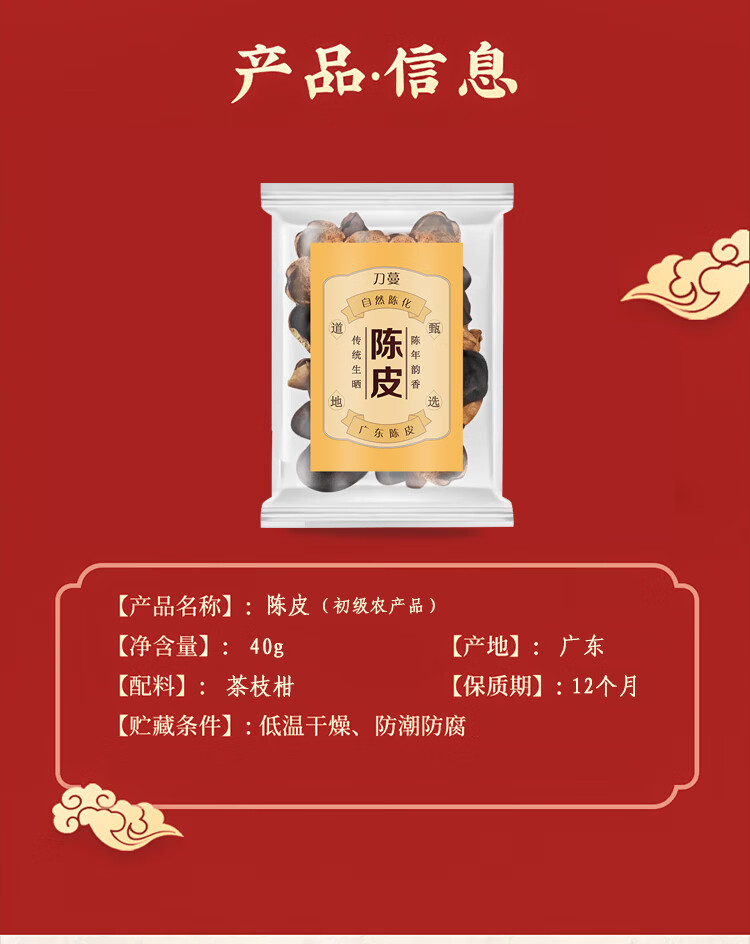 刀蔓陈皮 新会陈皮十年泡水专用泡茶炖汤10年广东正宗茶送礼自然生晒 80克*1袋