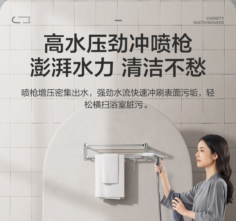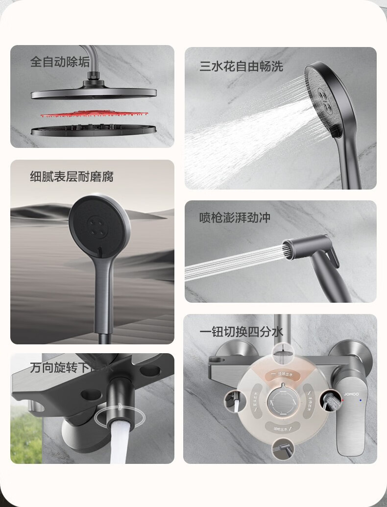 九牧(JOMOO)淋浴花洒套装 劲冲喷枪淋浴喷头多模式出水增压除垢淋浴器36484 【银色增压喷枪】自动除垢