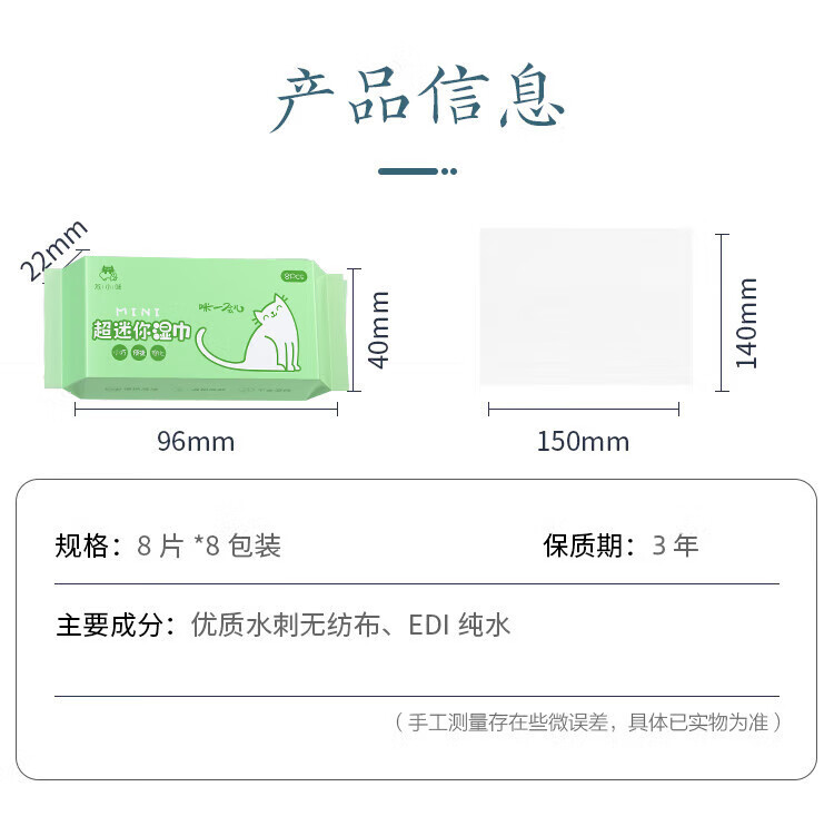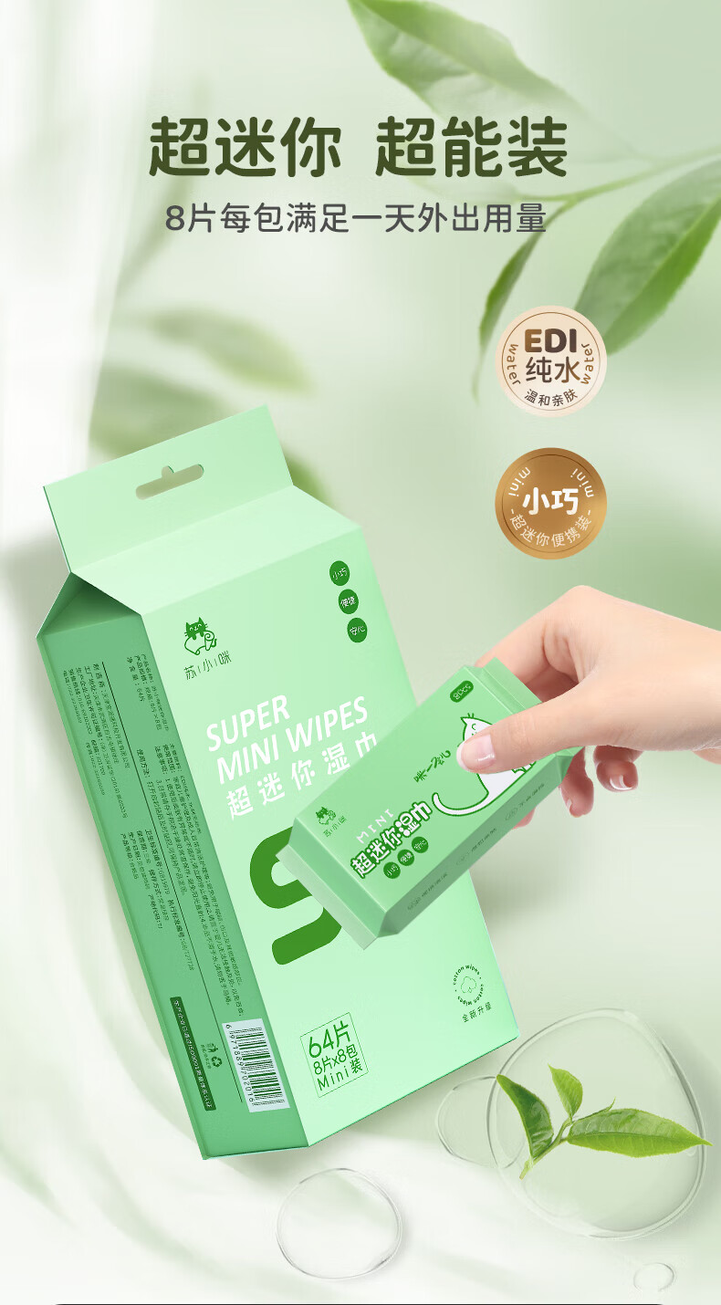 苏小咪外出小包清洁湿巾纯水湿巾超迷你便携装洁肤湿巾日常清洁 【迷你便携】8片*24包【共192片