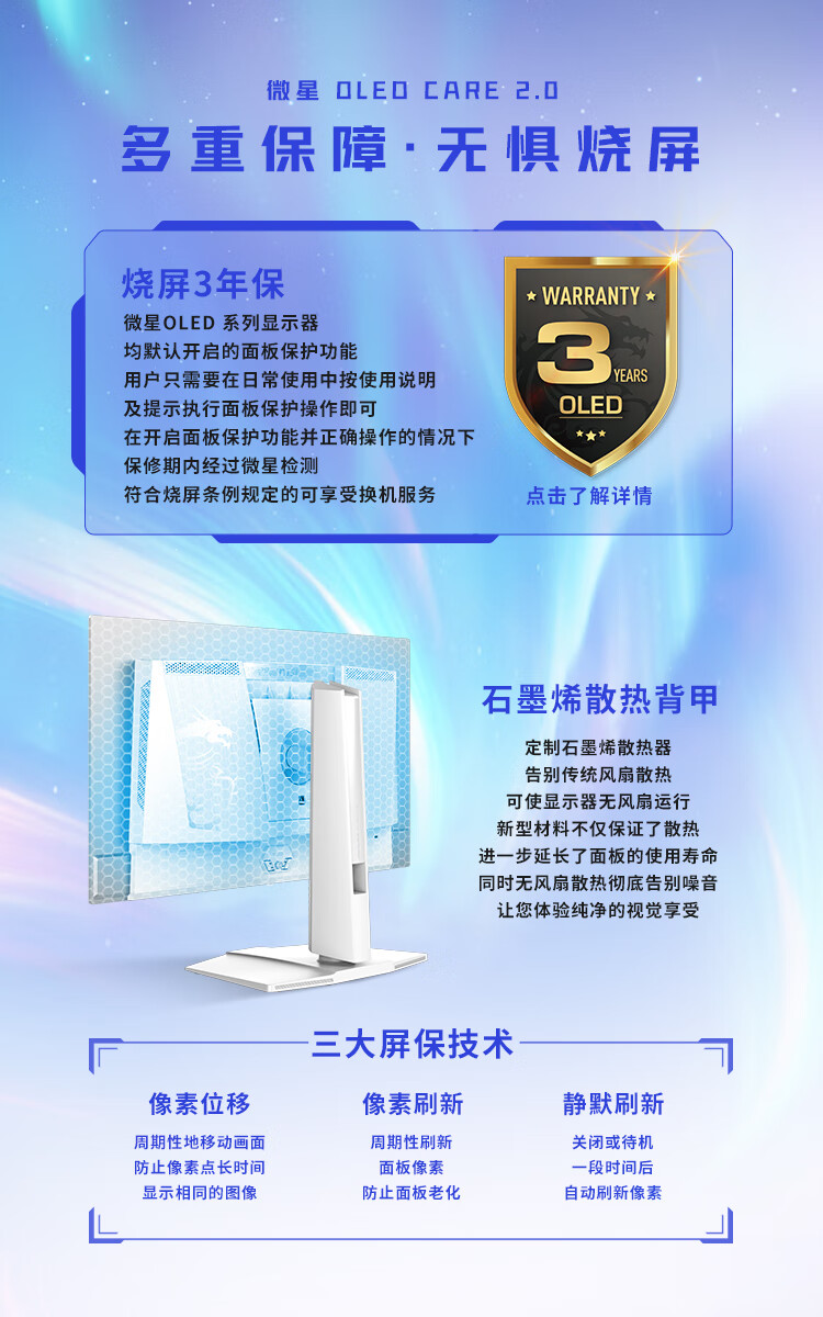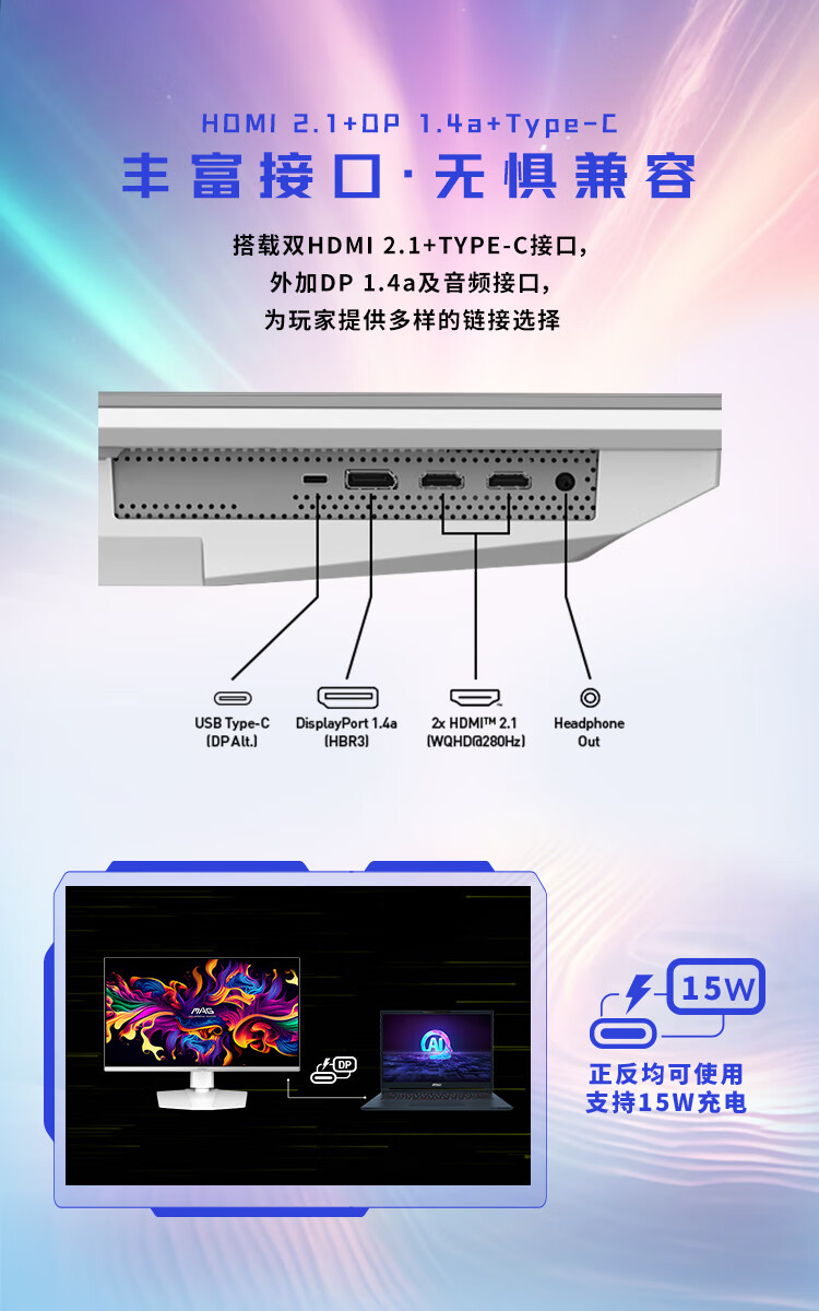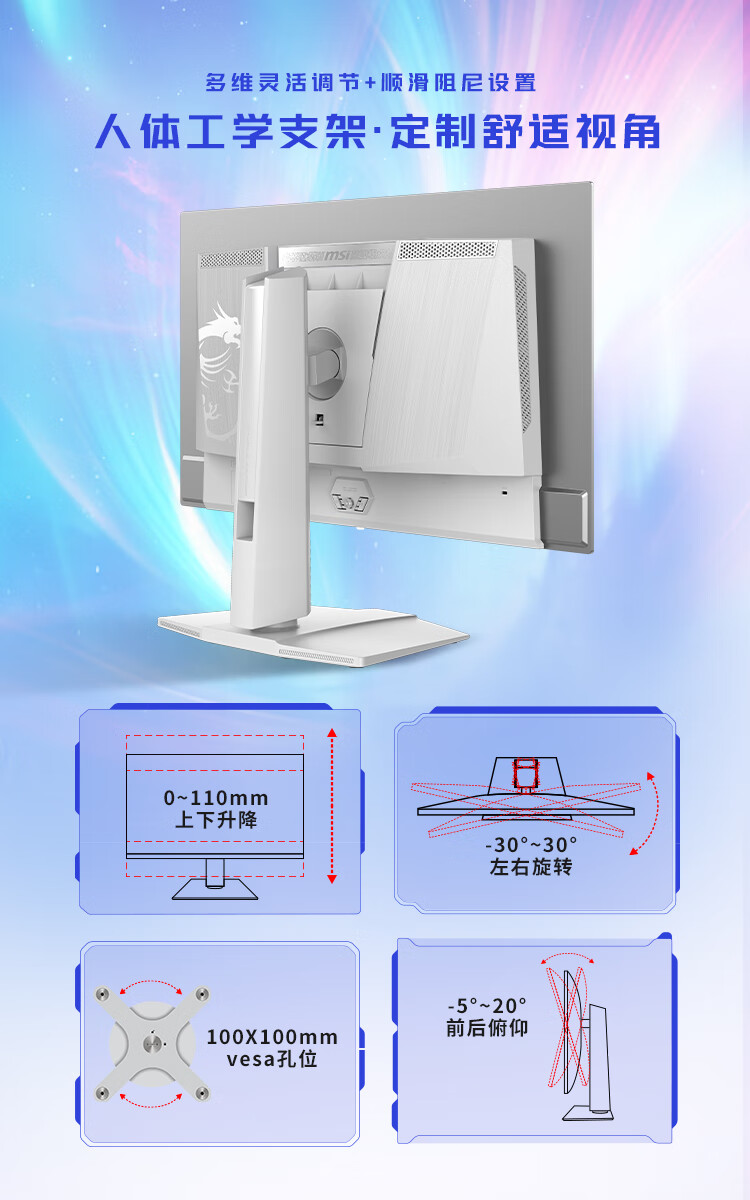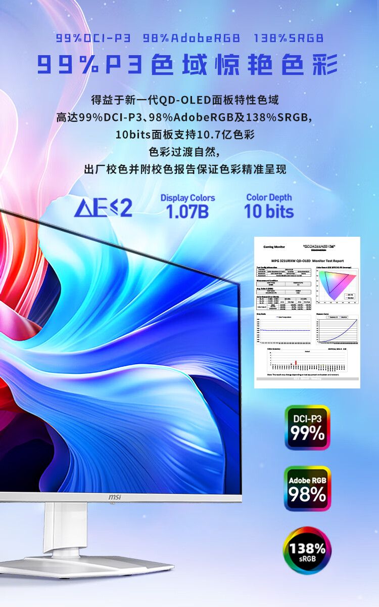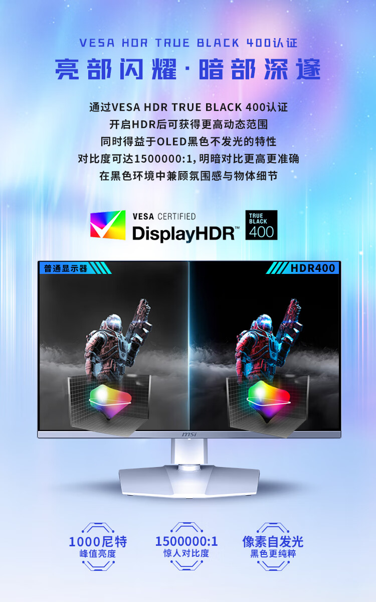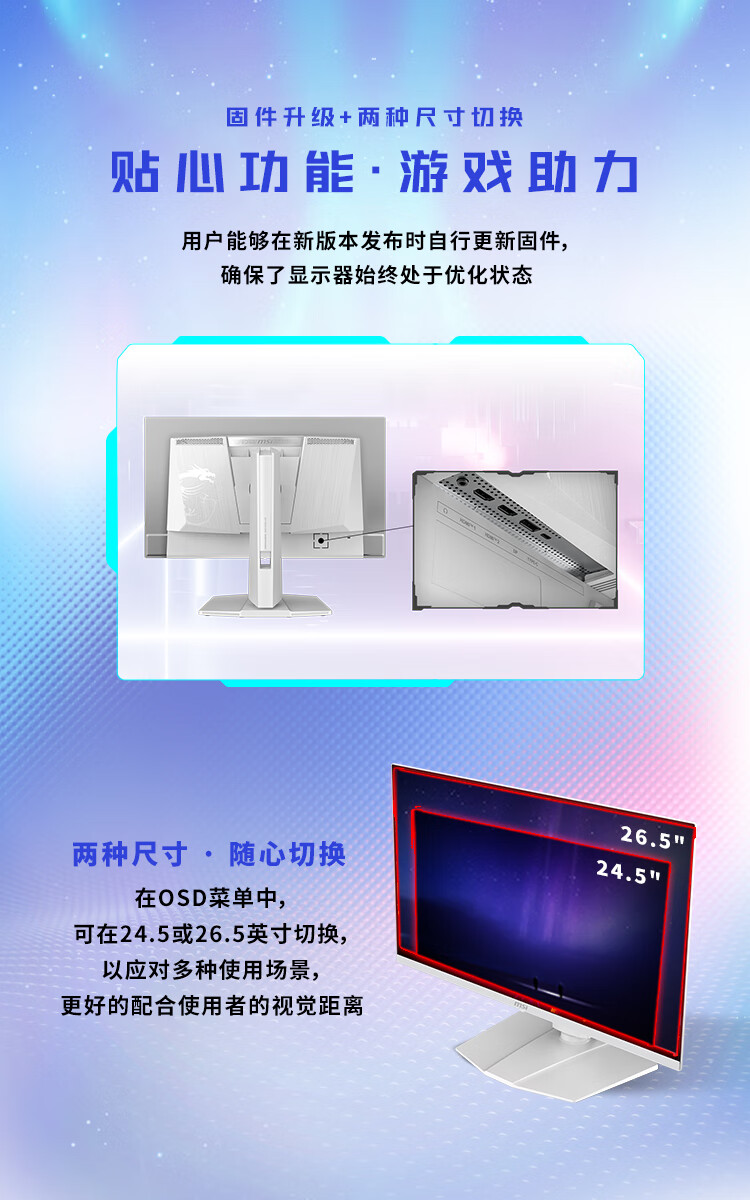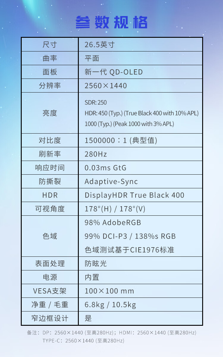 微星(MSI)27英寸2K280Hz QD-OLED显示器 0.03ms(GTG) HDR400游戏电竞显示屏MAG 272QPW QD-OLED X28极光X28