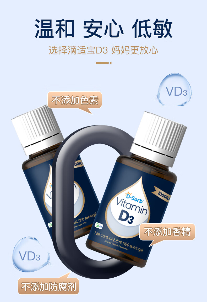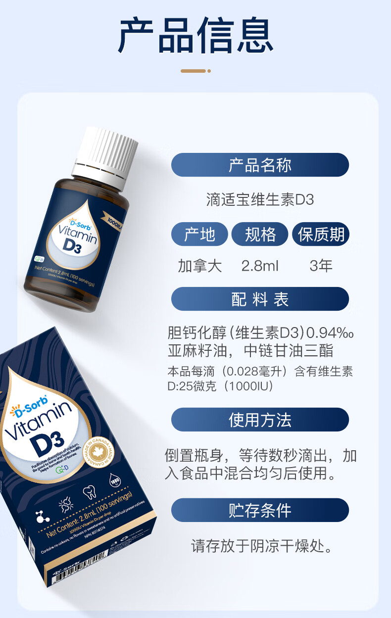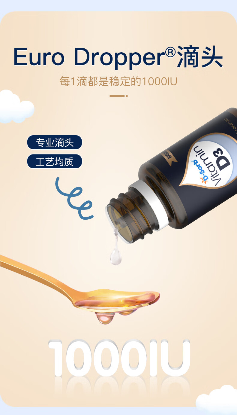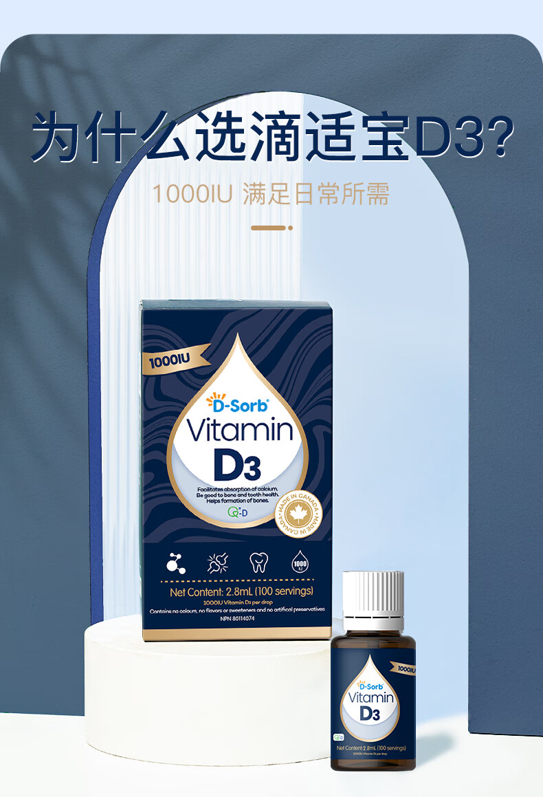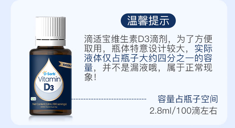 滴适宝(D-Sorb)维生素D3滴剂1000iu儿童成人VD3青少年原装进口5ML 1000IU【2.8ml】