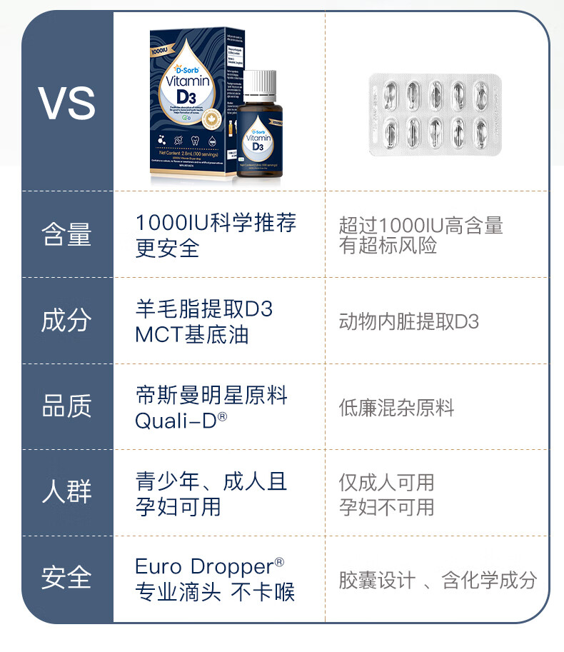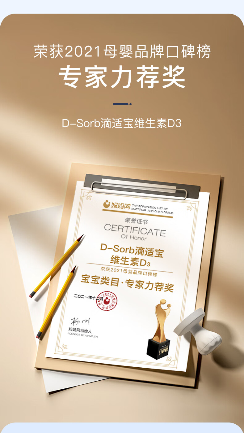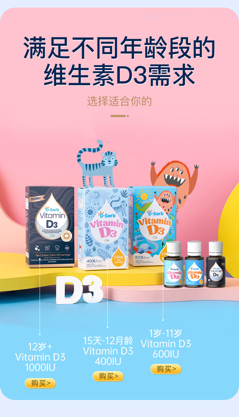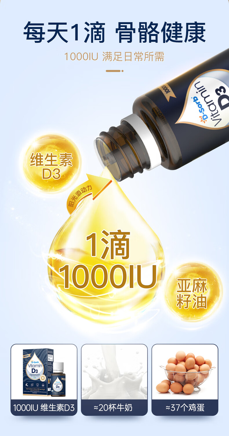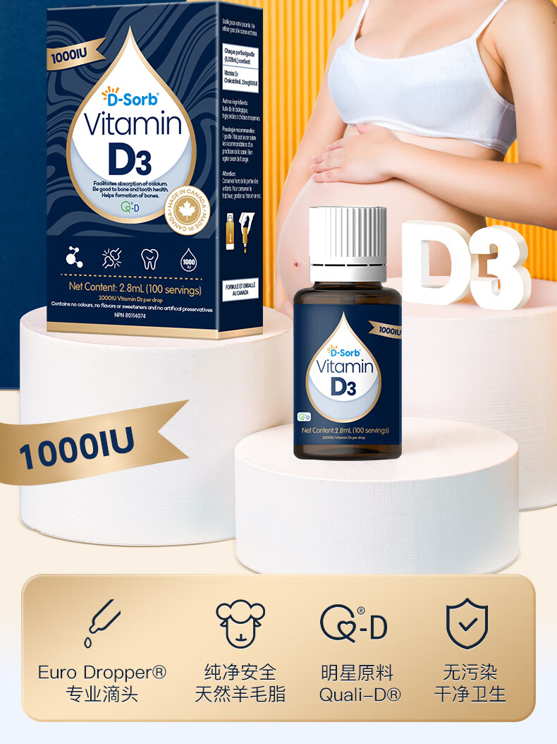 滴适宝(D-Sorb)维生素D3滴剂1000iu儿童成人VD3青少年原装进口5ML 1000IU【2.8ml】