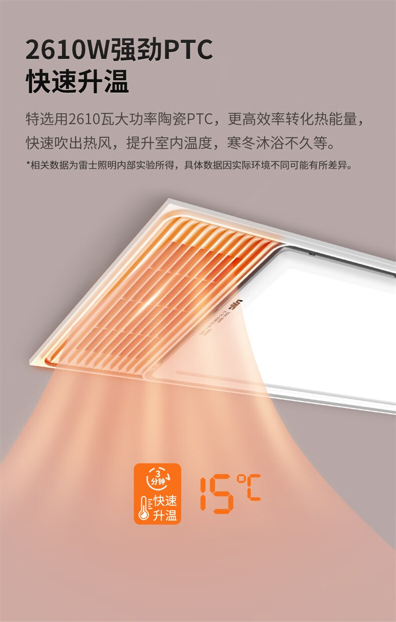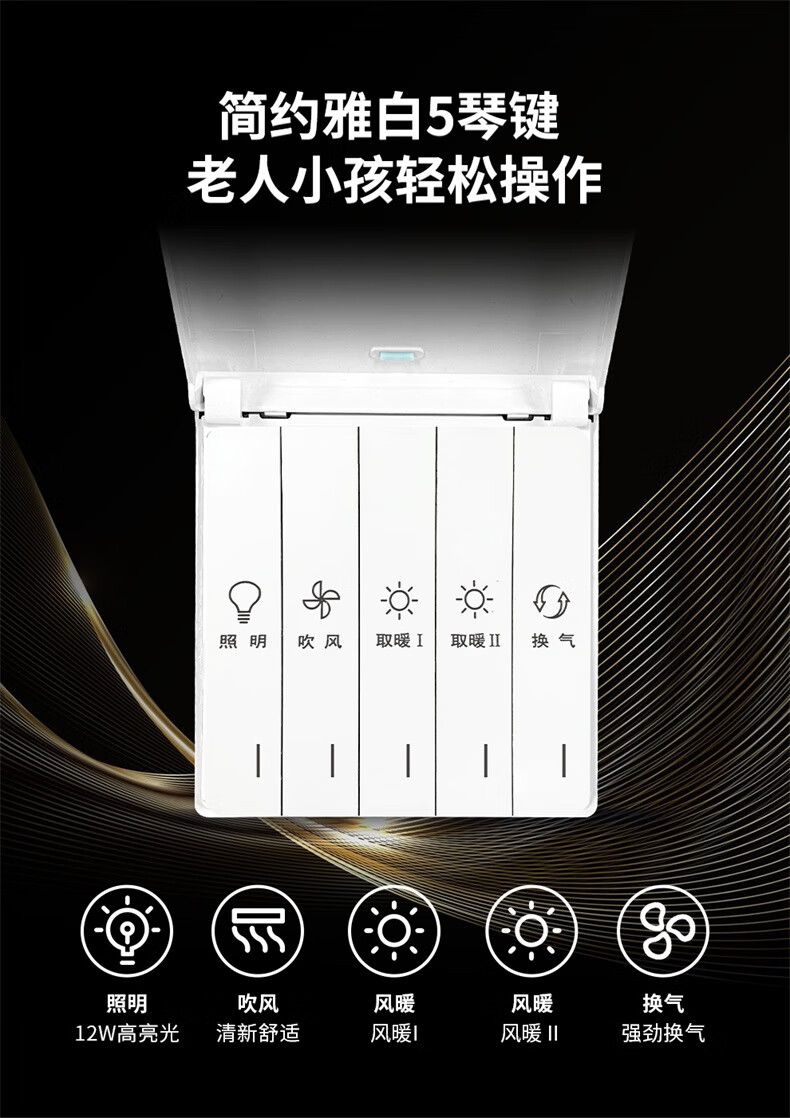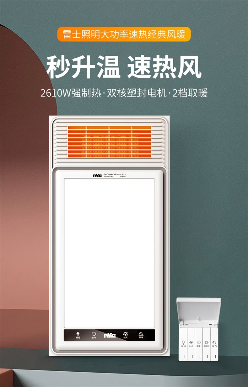 雷士(NVC)大功率暖风机排气扇照明LED一体卫生间集成吊顶风暖风机浴霸浴室 【热卖推荐】2610W琴键五合一