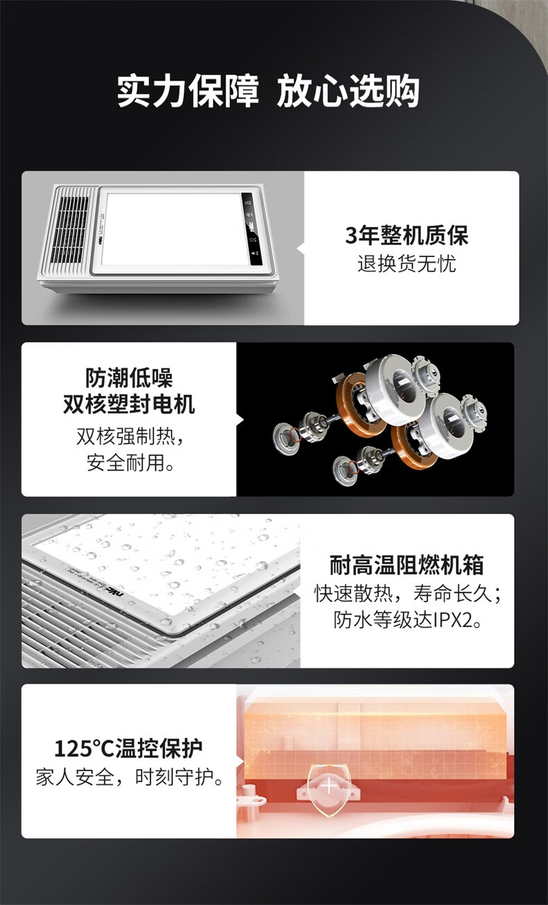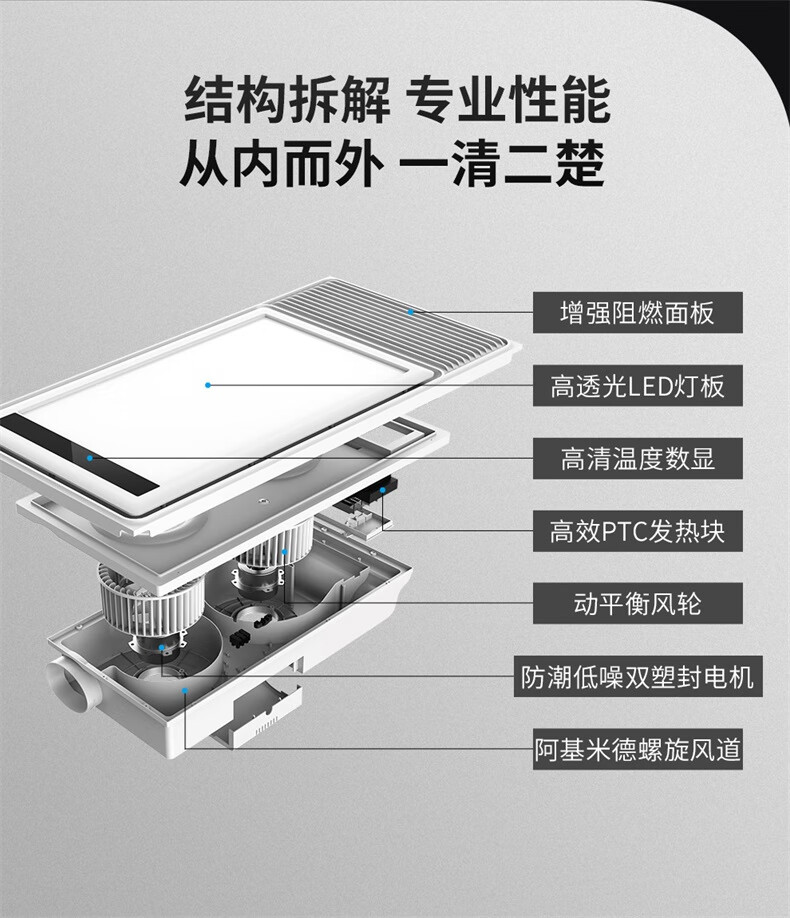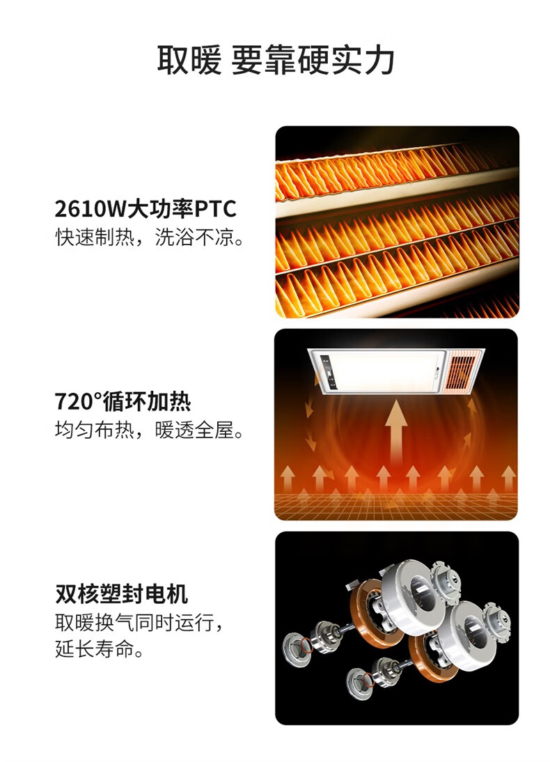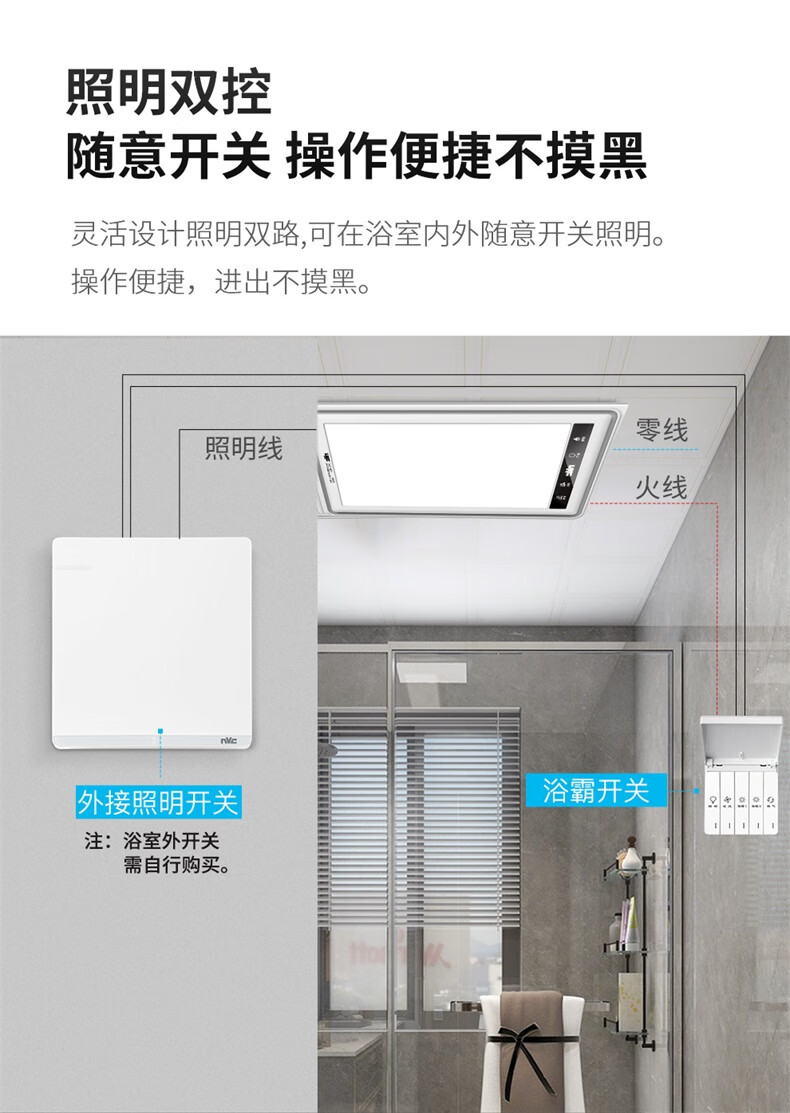 雷士(NVC)大功率暖风机排气扇照明LED一体卫生间集成吊顶风暖风机浴霸浴室 【热卖推荐】2610W琴键五合一