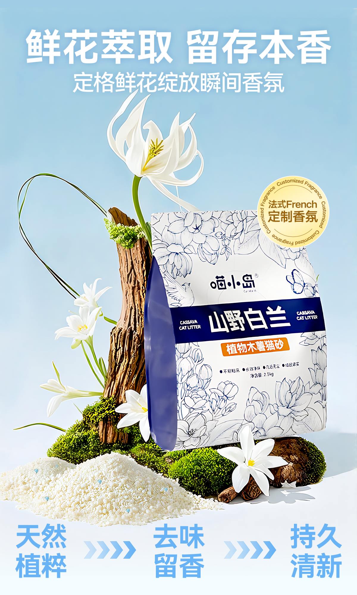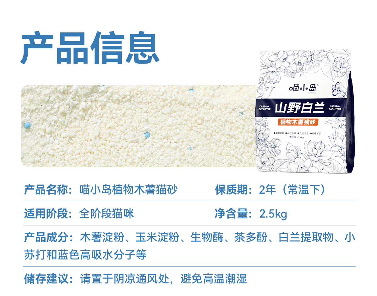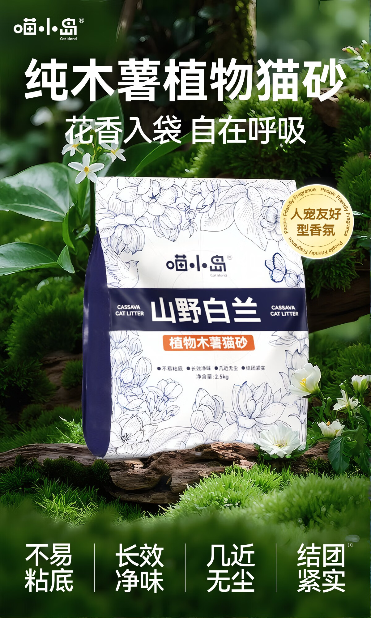 喵小岛木薯猫砂 香氛除臭 植物砂吸水结团紧实不沾底 0甲醛 山野白兰 【10斤畅销装】木薯猫砂2.5斤*4包