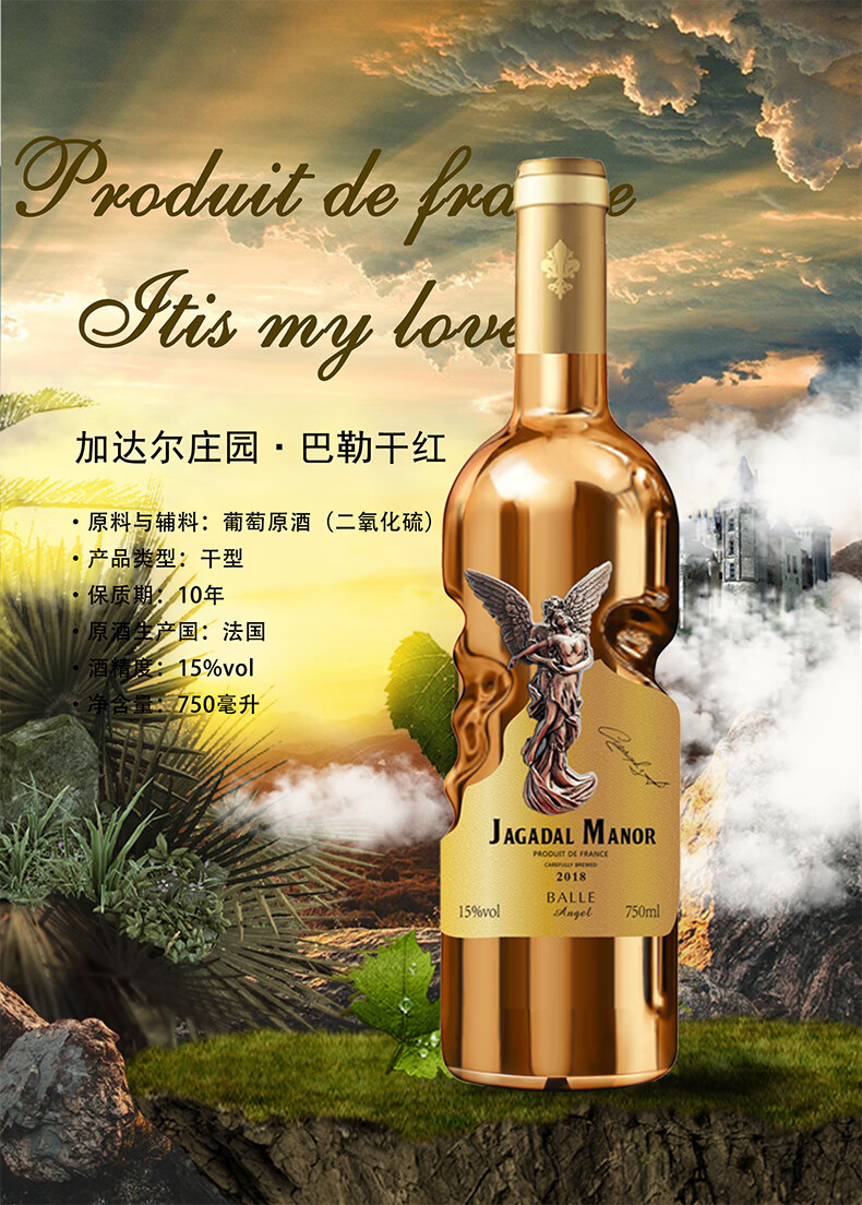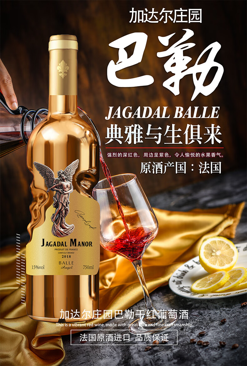 加达尔庄园法国原酒进口巴勒15度干红葡萄酒 750ml*2支巴勒+开瓶器