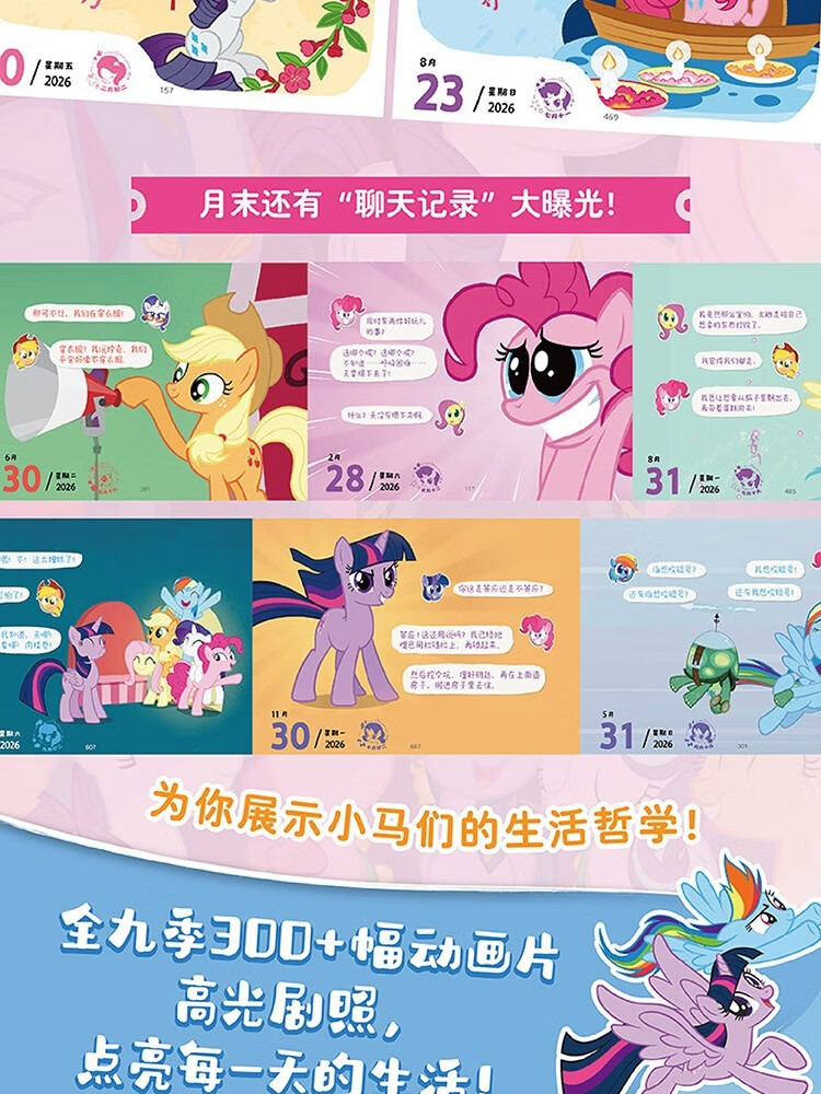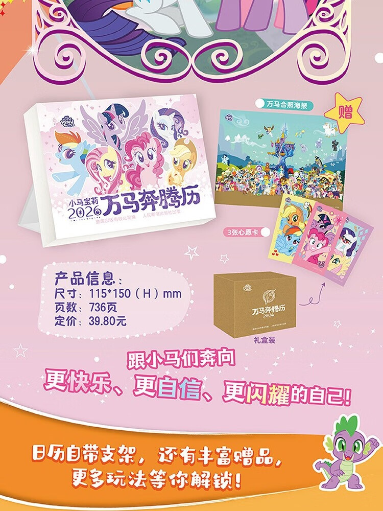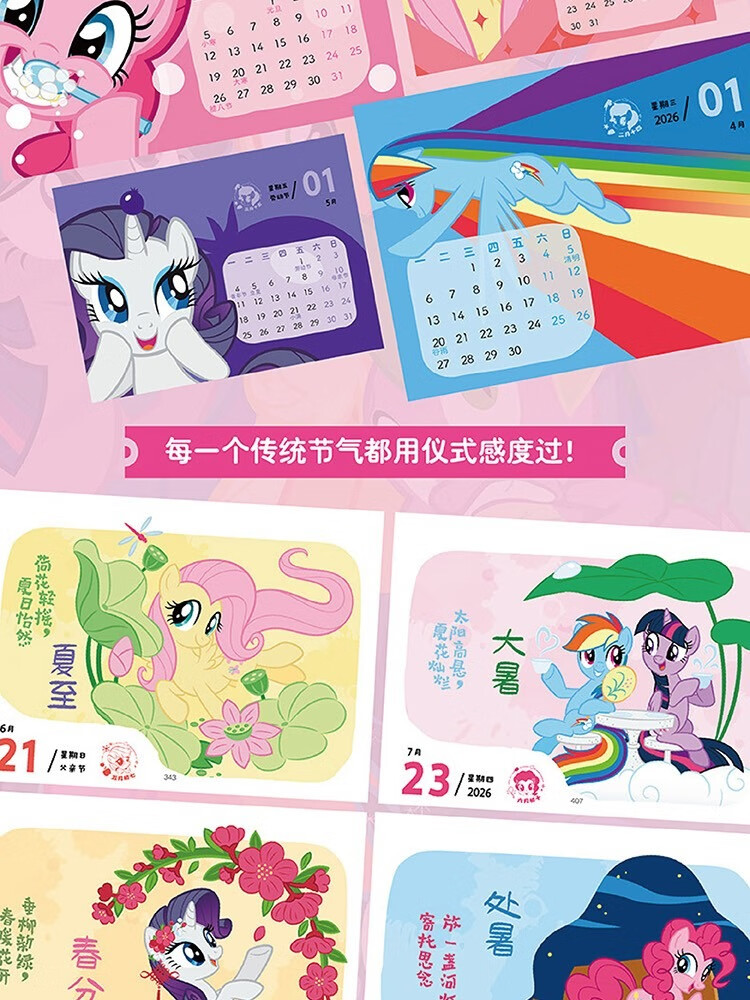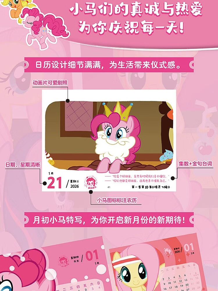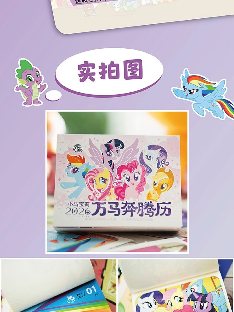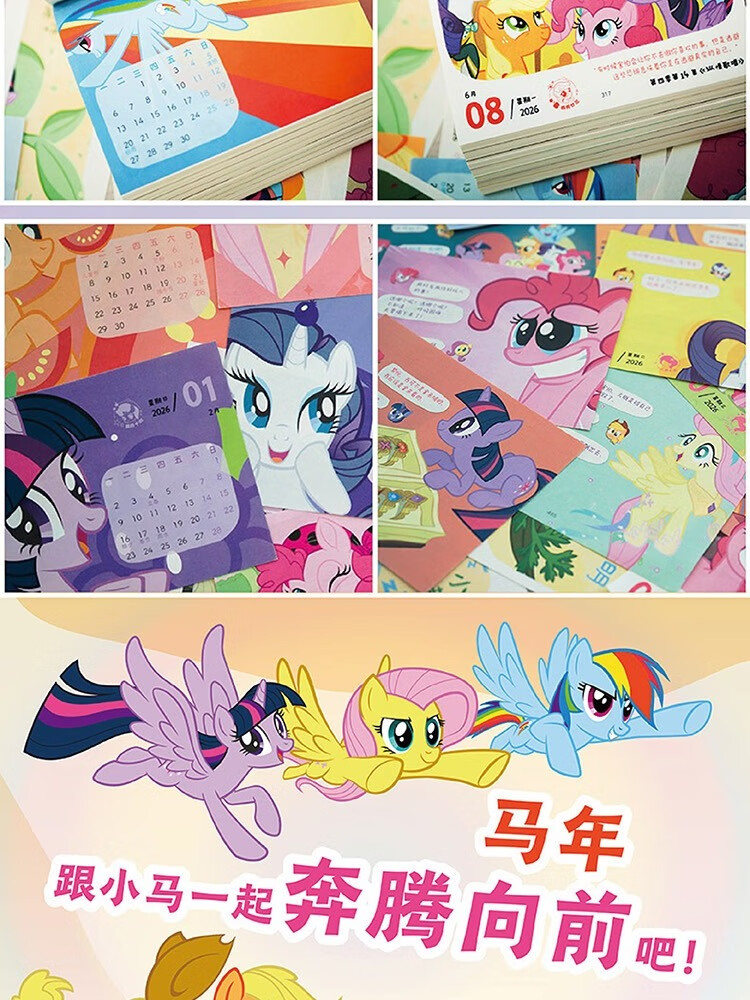 孩之宝小马宝莉2026年日历官方正品万马奔腾马年日历台历 小马宝莉的卡片贴纸动画片剧照语录手账本新年礼物创意好物礼品 小马宝莉2026年日历