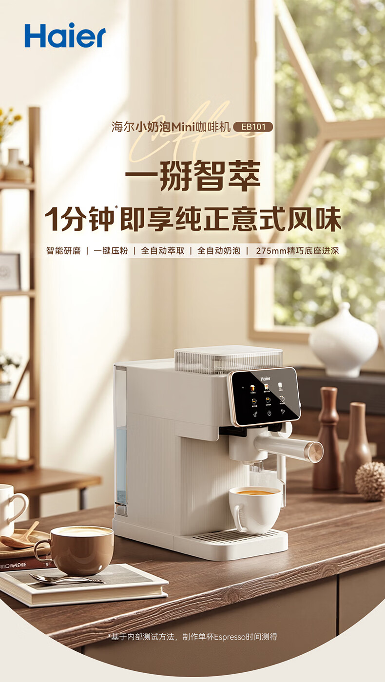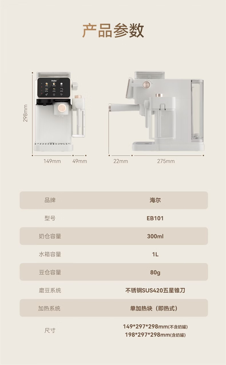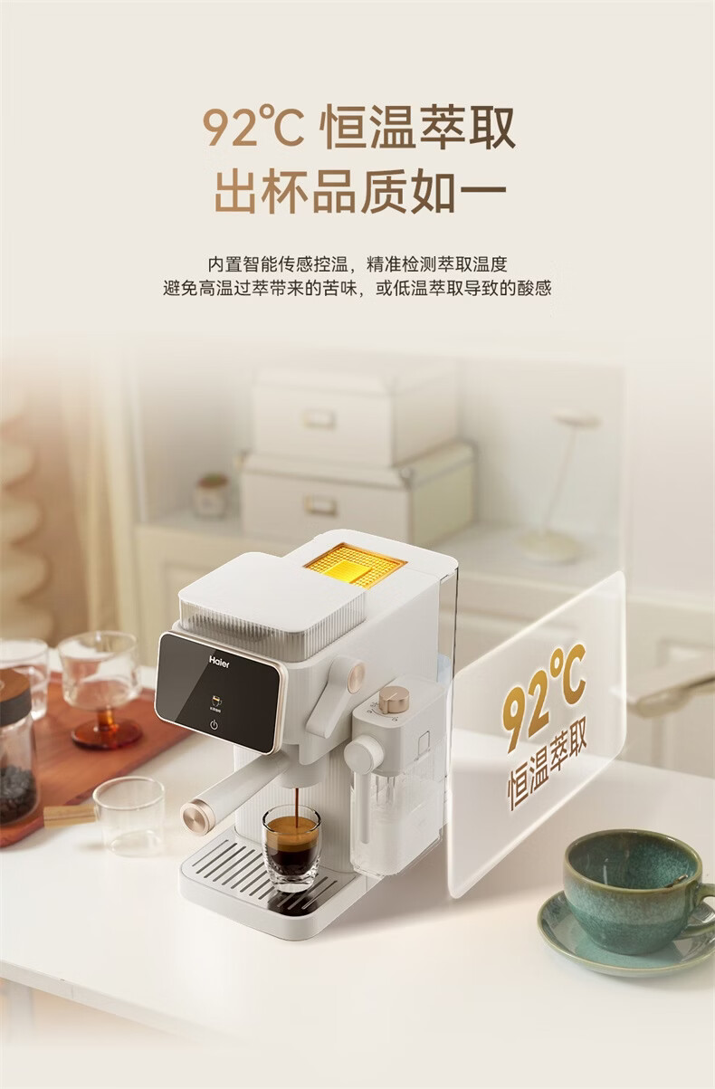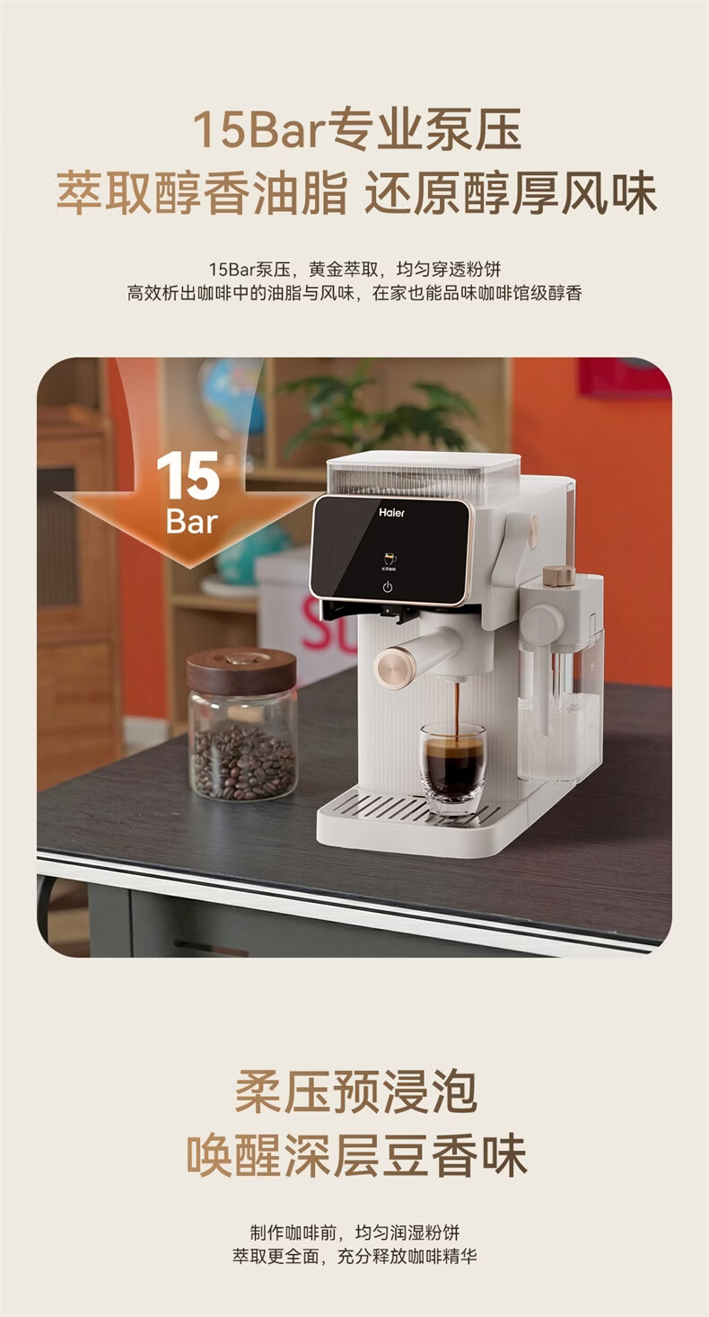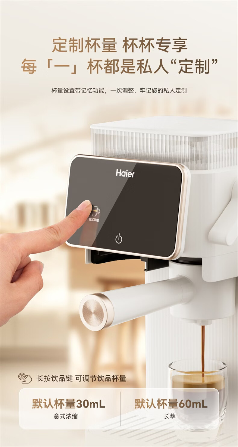 海尔意式半自动咖啡机研磨一体小型家用办公咖啡机磨豆可打奶泡 HSCF-EB101E(W)U1
