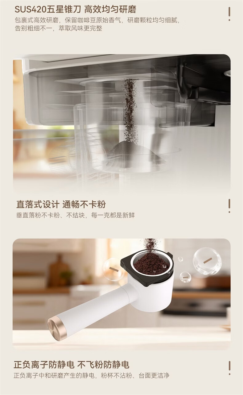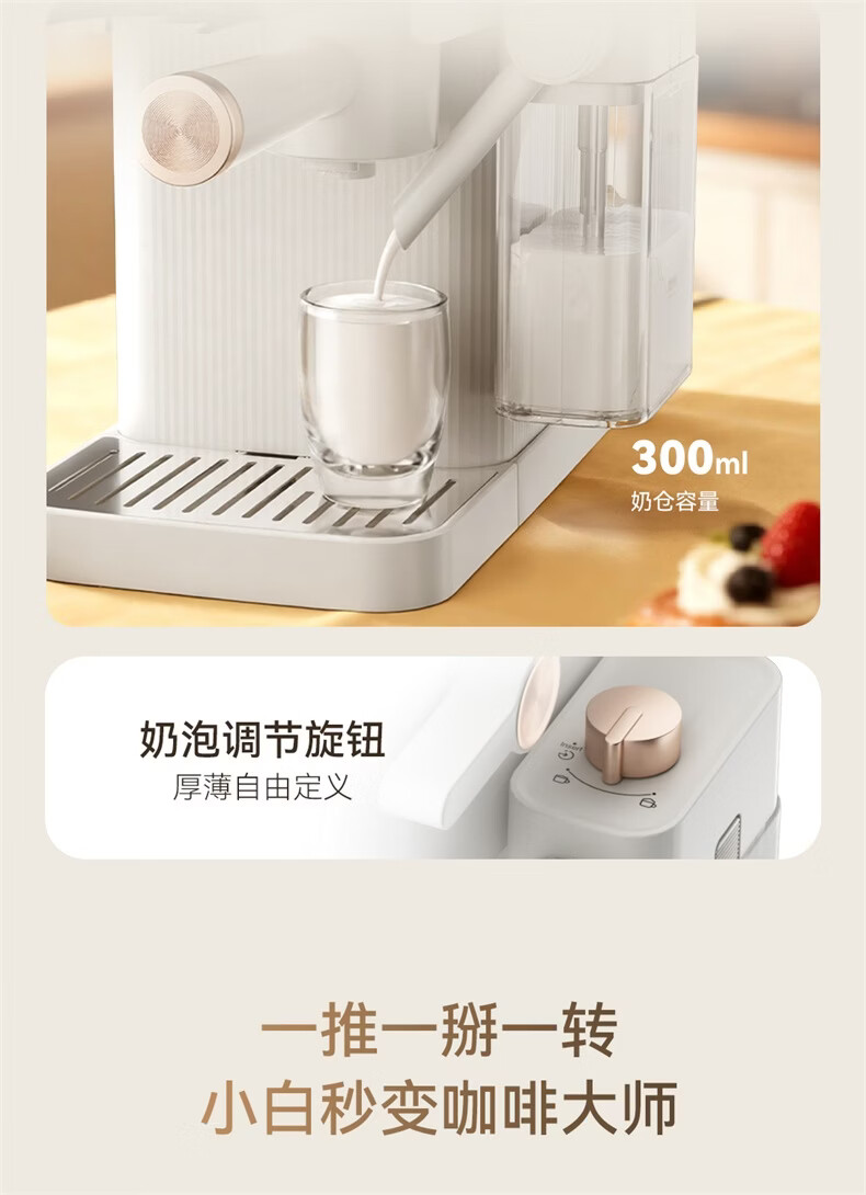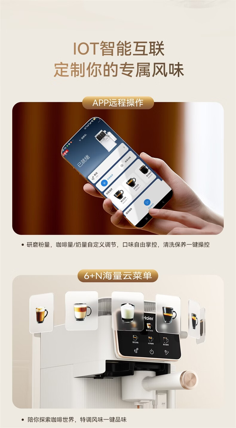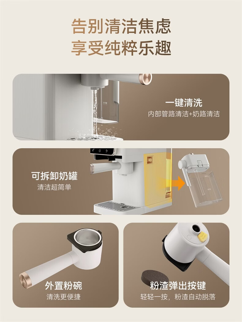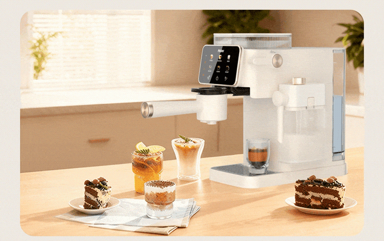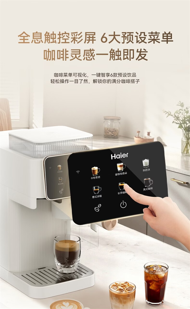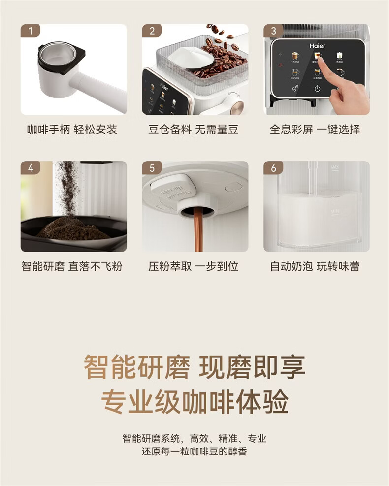 海尔意式半自动咖啡机研磨一体小型家用办公咖啡机磨豆可打奶泡 HSCF-EB101E(W)U1