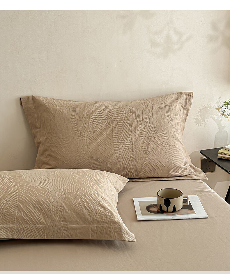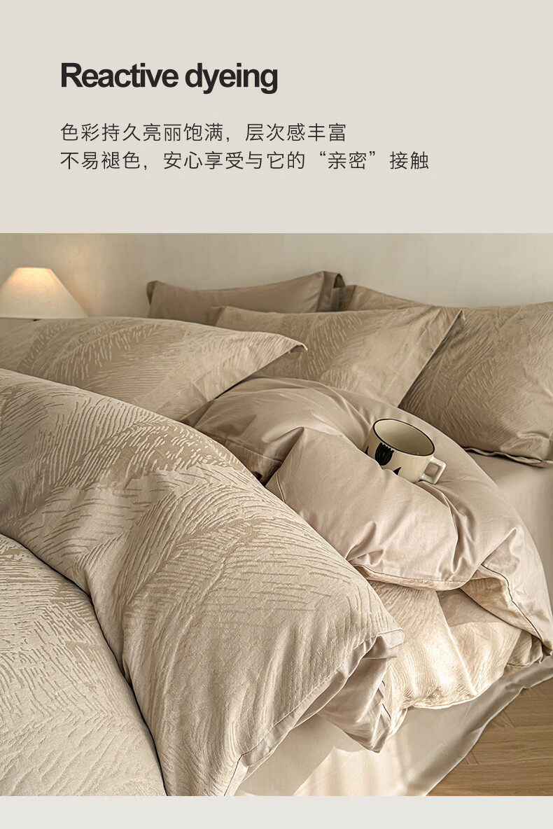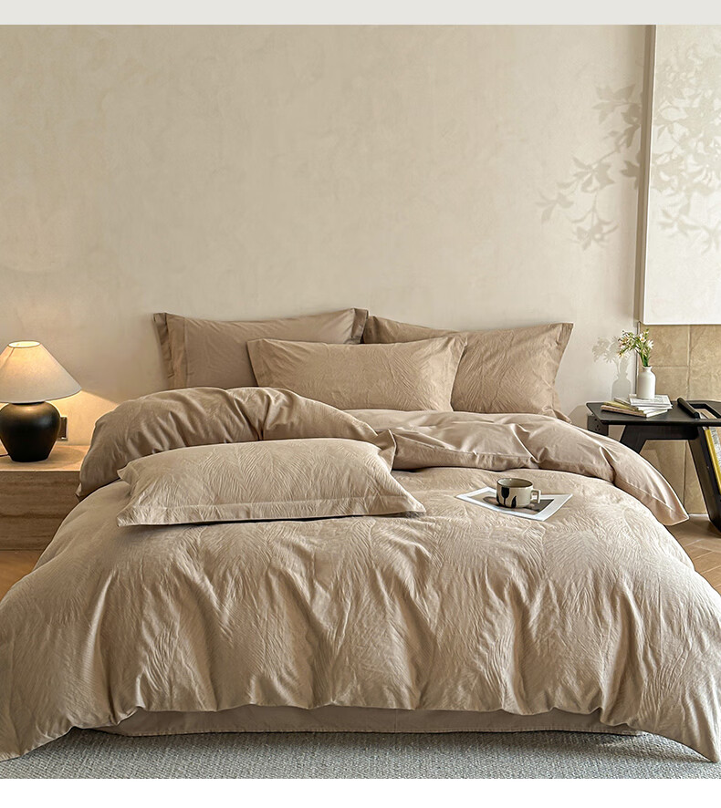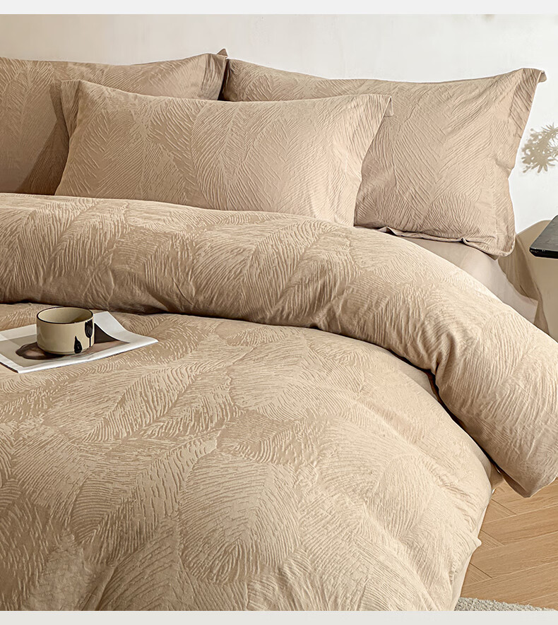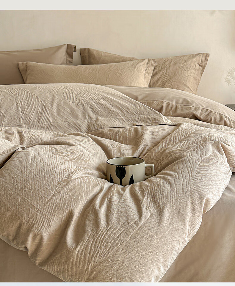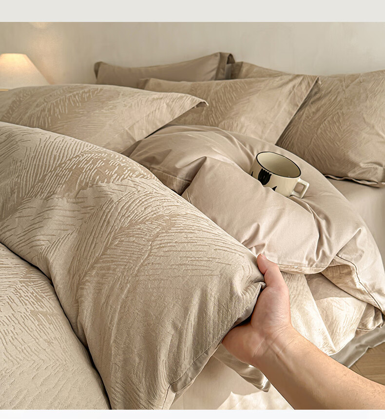 VJE高级感全棉四件套浮雕立体提花纯棉长绒棉床单被套越洗越软100棉 暗影羽织-银灰 四件套1.8m 床单款 (被套200*230cm)