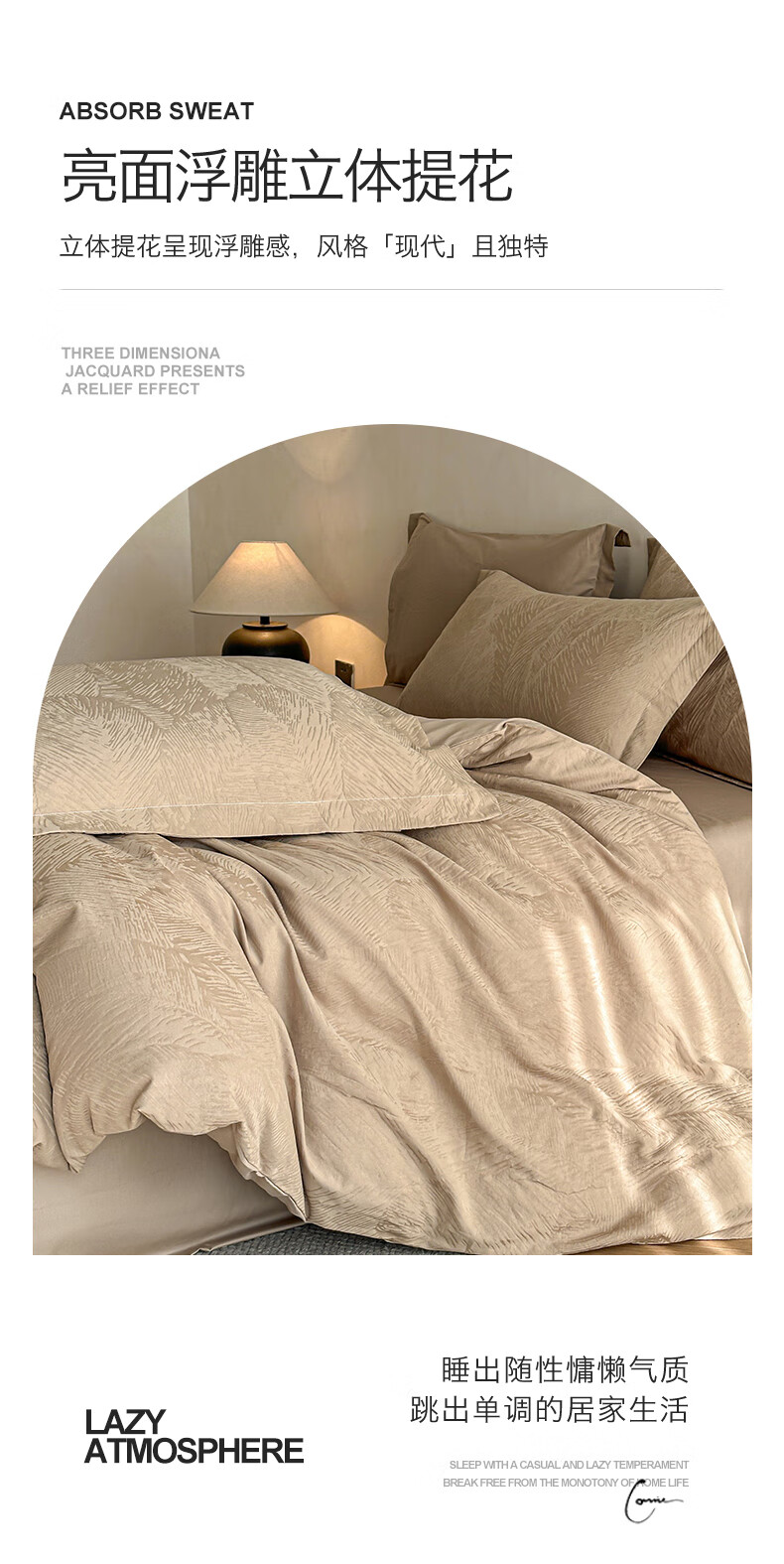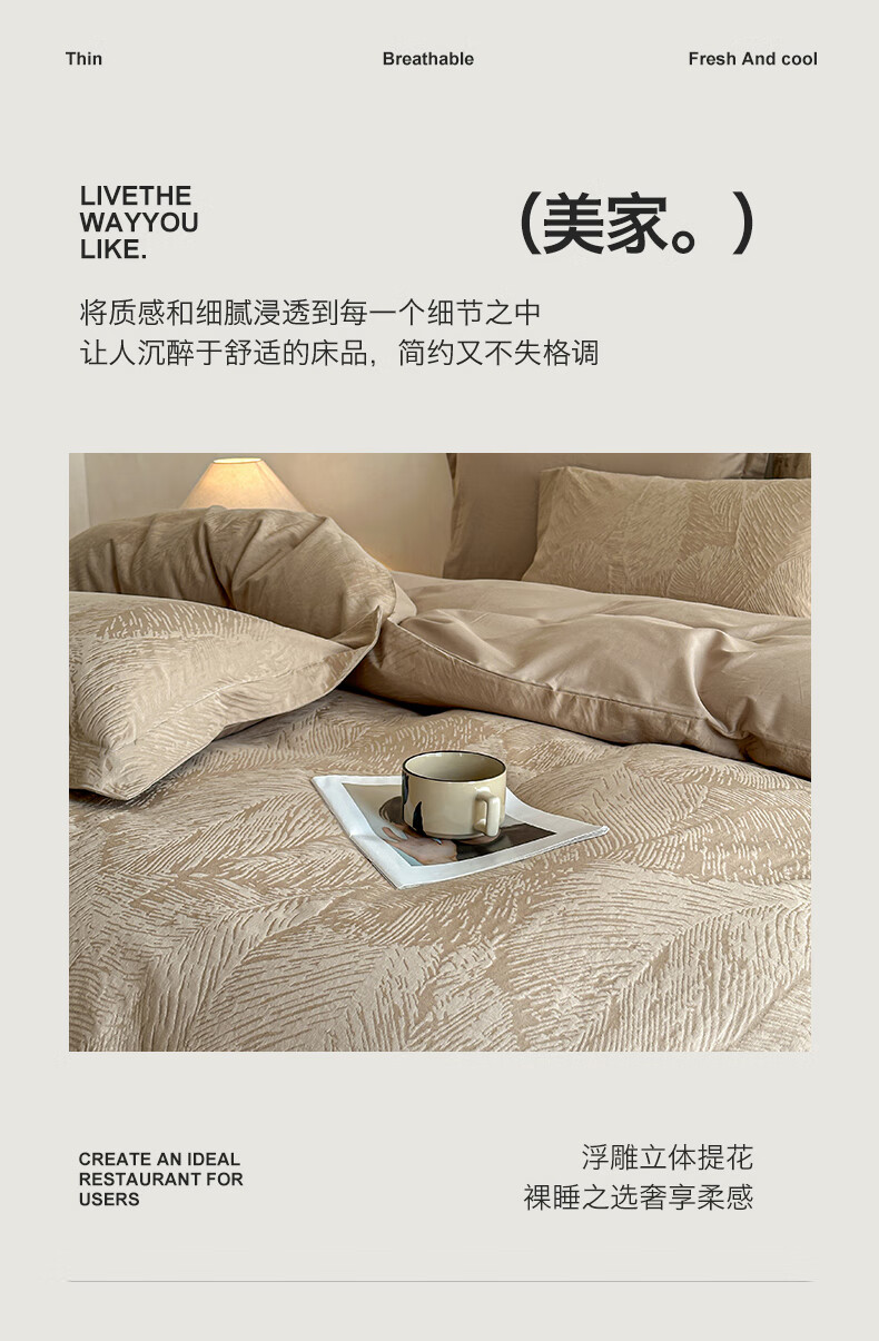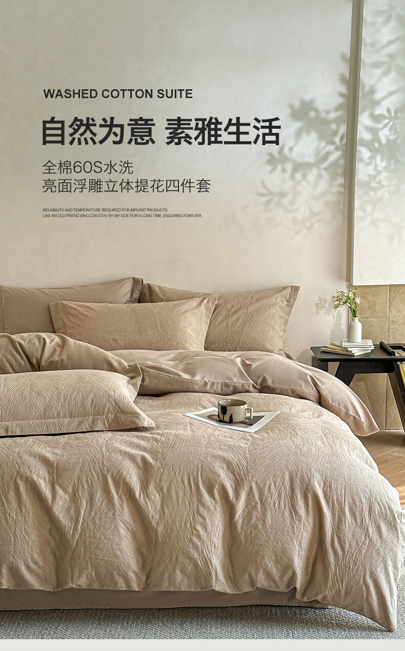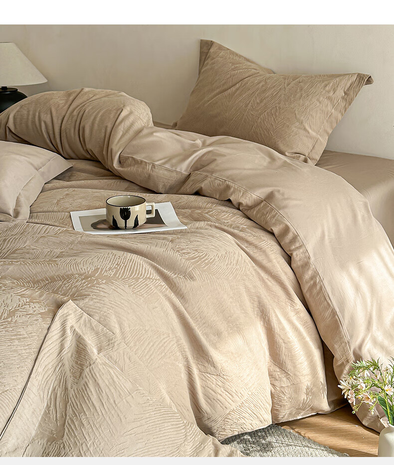 VJE高级感全棉四件套浮雕立体提花纯棉长绒棉床单被套越洗越软100棉 暗影羽织-银灰 四件套1.8m 床单款 (被套200*230cm)