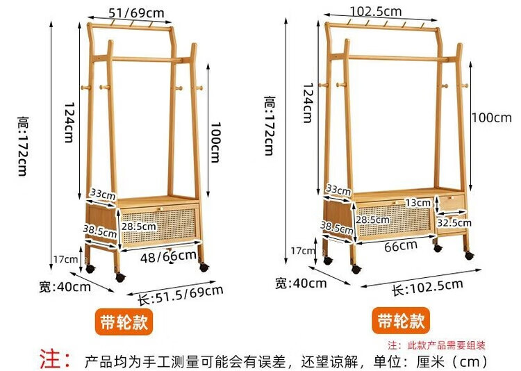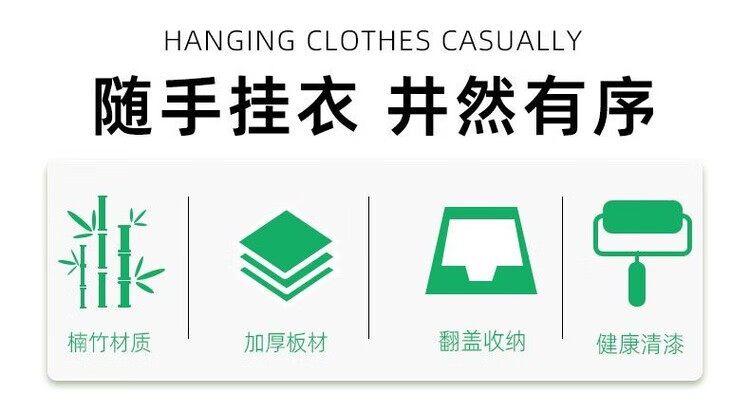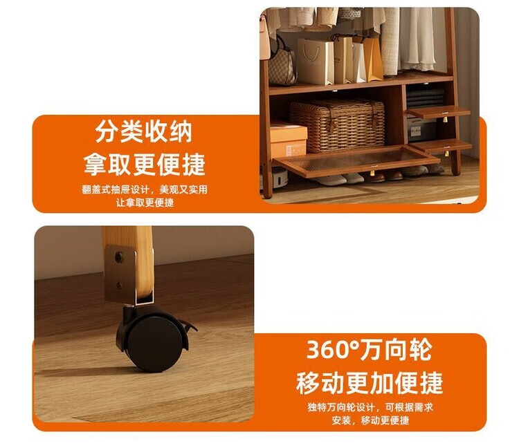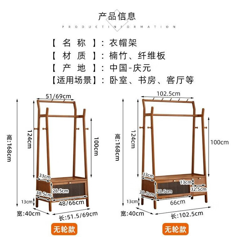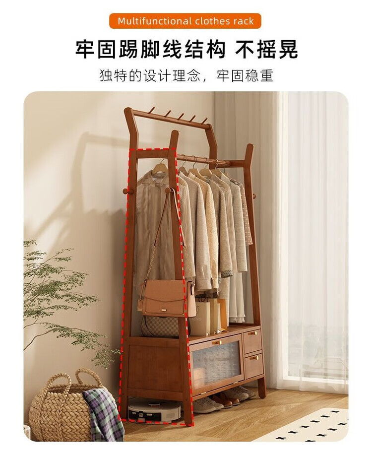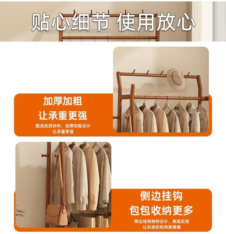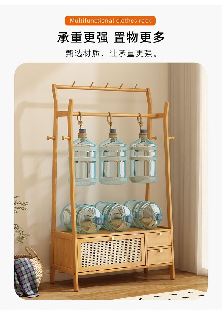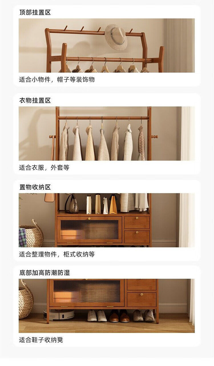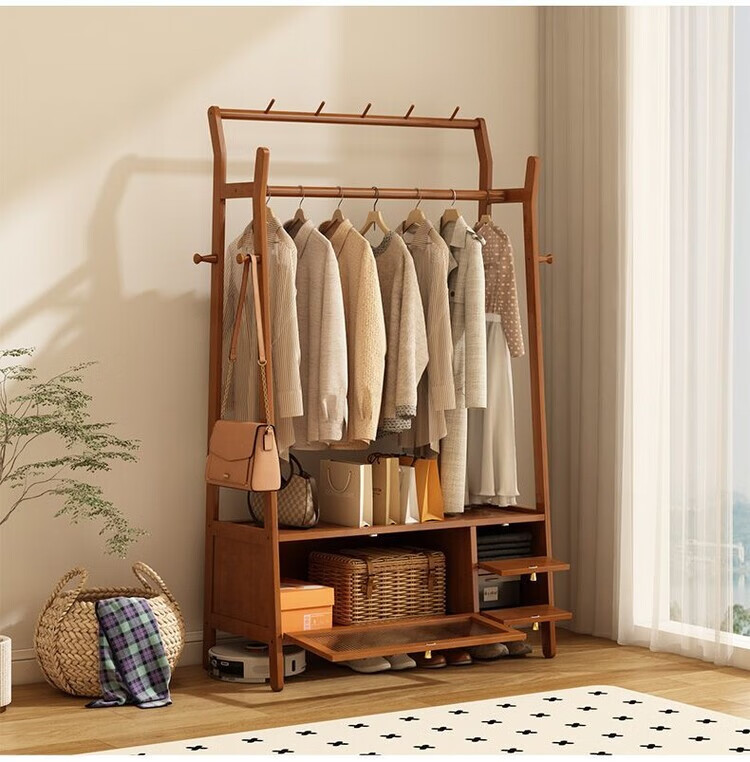 倘然之家挂衣架落地衣架楠竹立式落地卧室衣帽架衣服客厅家用轮子落地挂 【落地衣帽架+收纳柜】原木色【50款无轮】