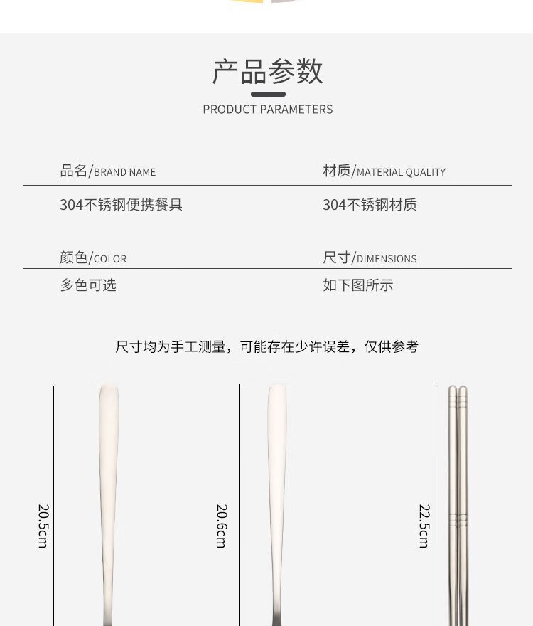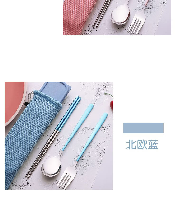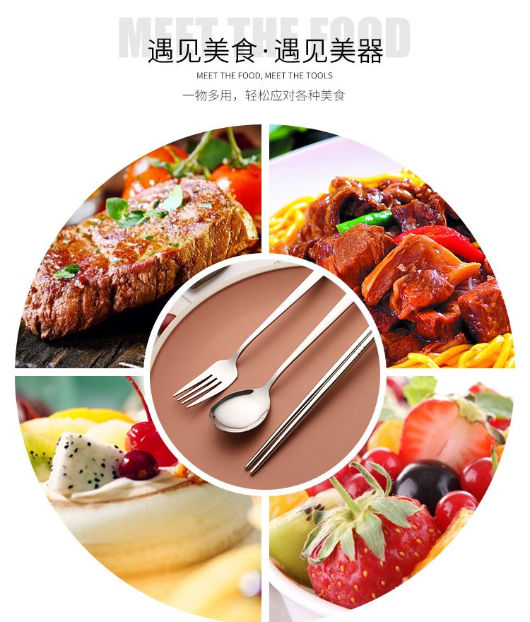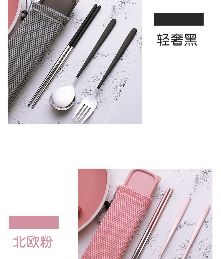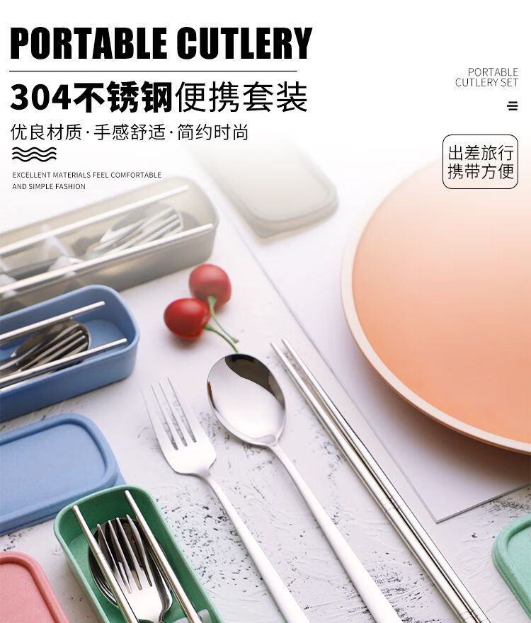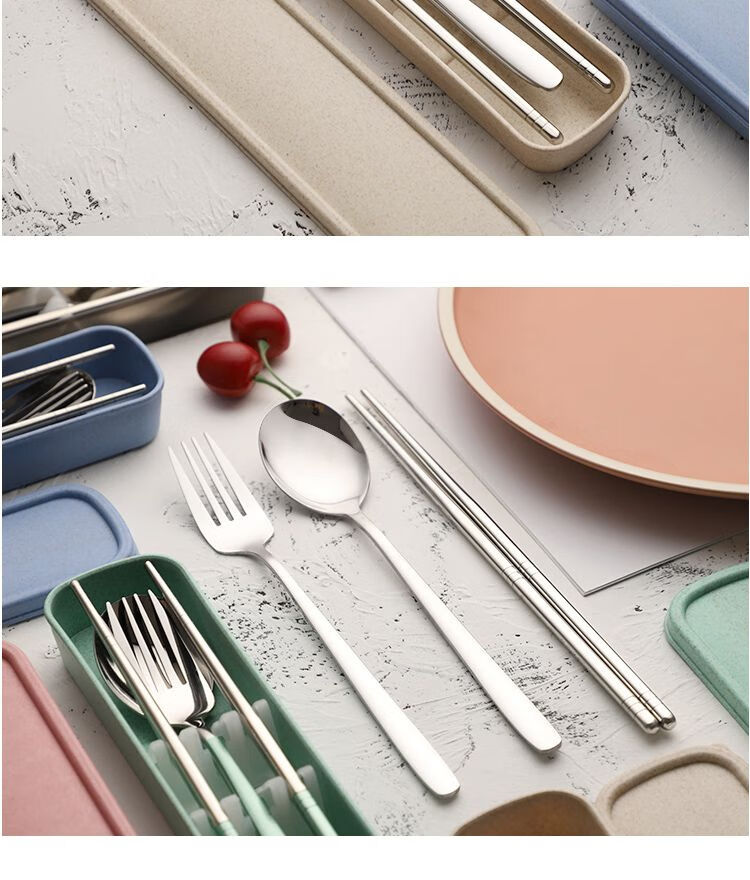 DEATKN德国韩式便携餐具不锈钢筷子勺子叉子餐具套装简约三件套学生上班 原钢【筷+勺+盒】 A款 标配