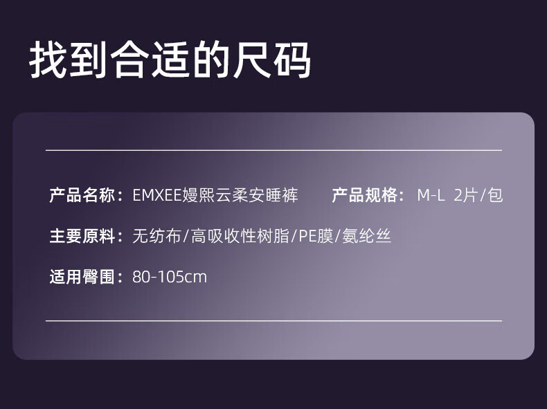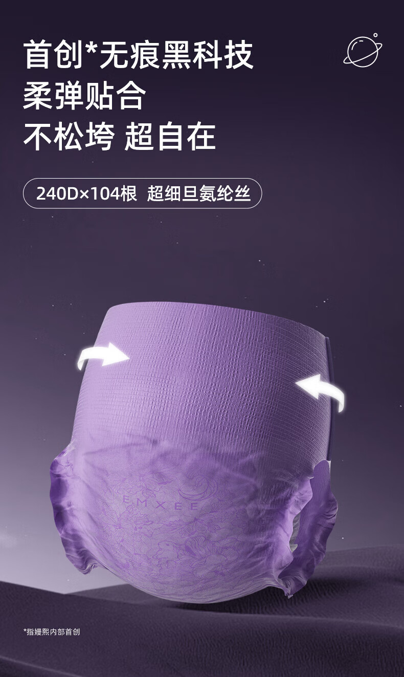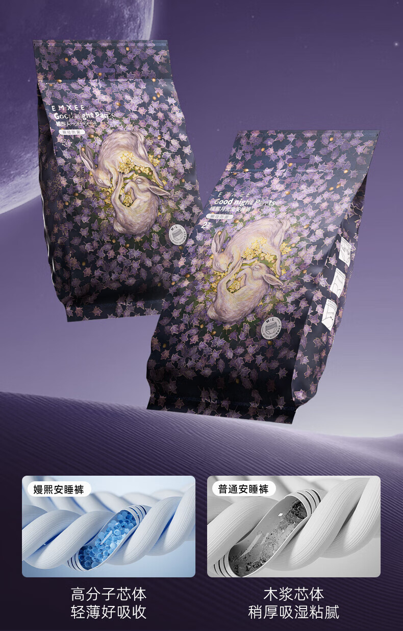嫚熙(EMXEE)一次性月光兔安睡裤女经期用防漏安心裤夜安裤夜用卫生巾内裤 装(共) 12片 6包 M-L(适合臀围80-105cm)