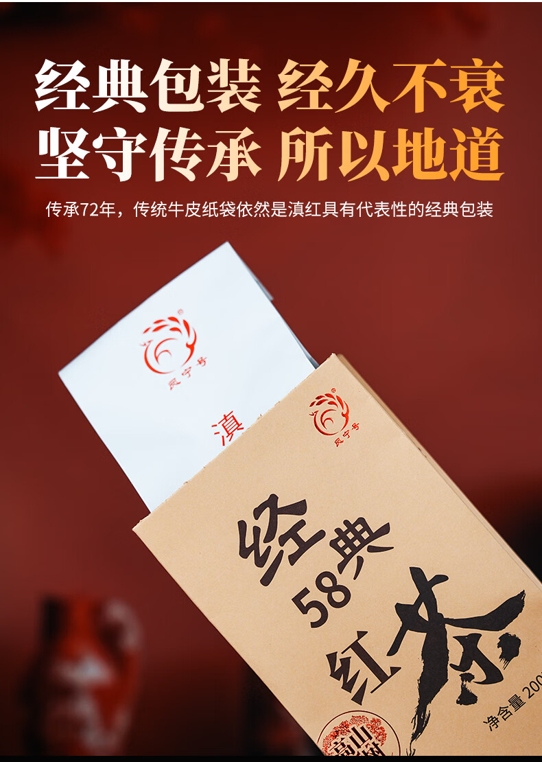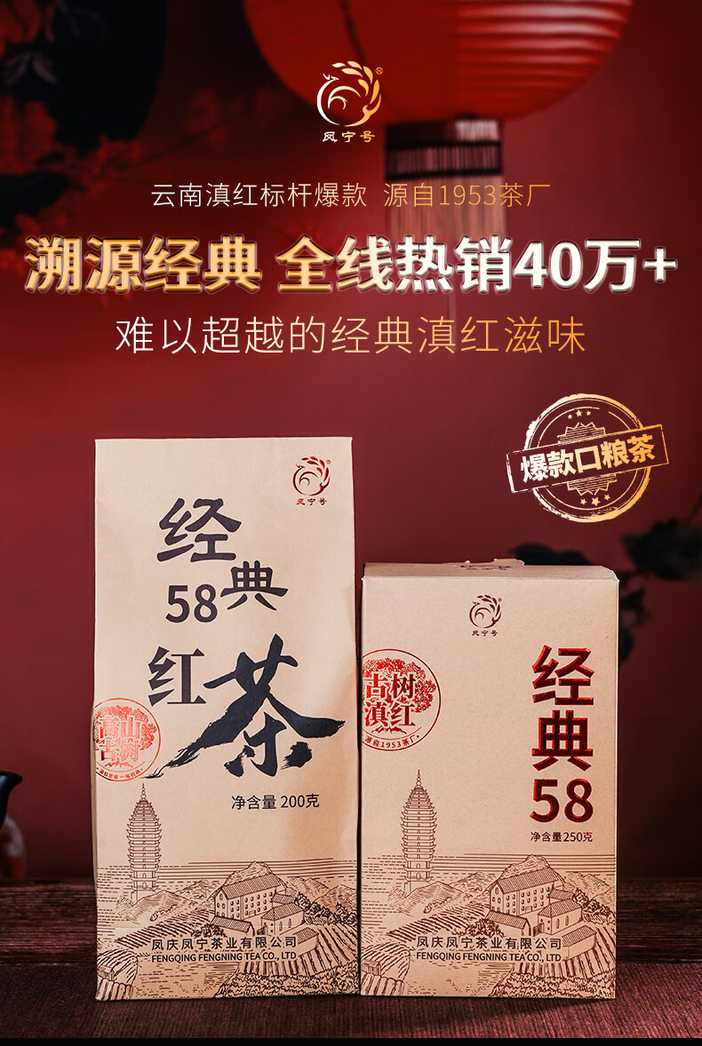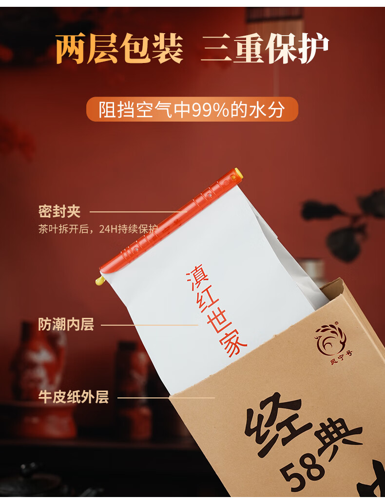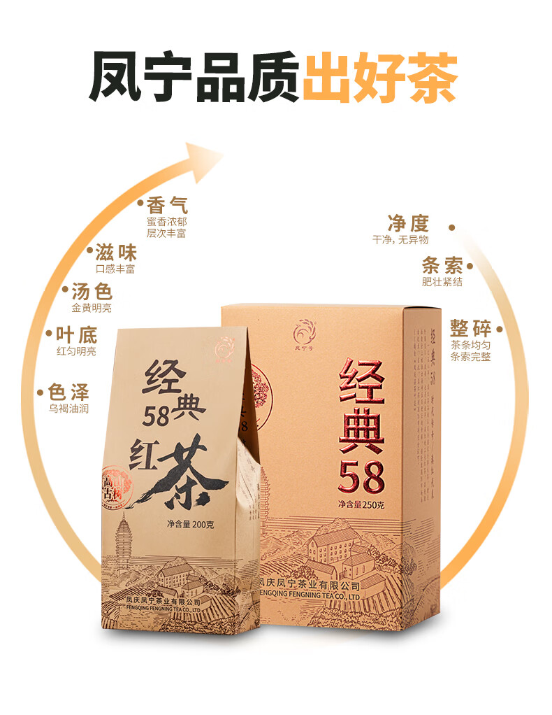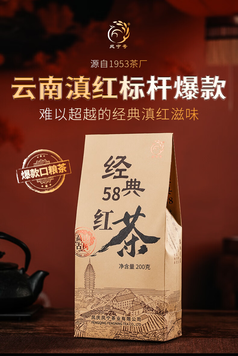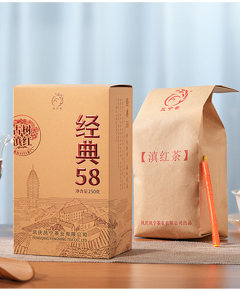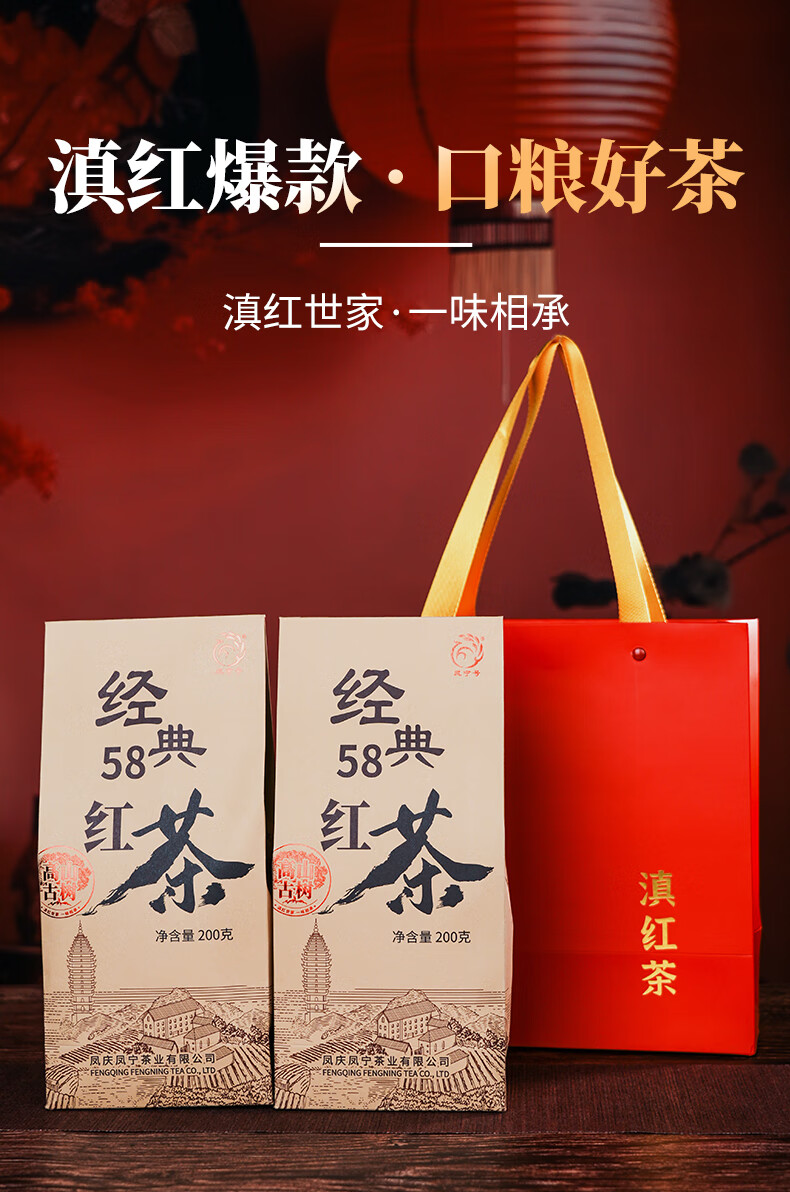 凤宁号红茶经典58特级凤庆滇红茶云南古树滇红金针茶蜜香口粮茶叶自己喝 盒装250g