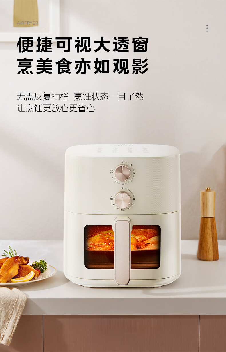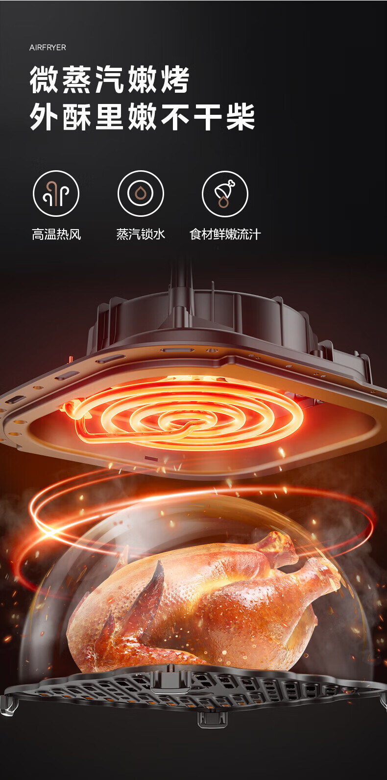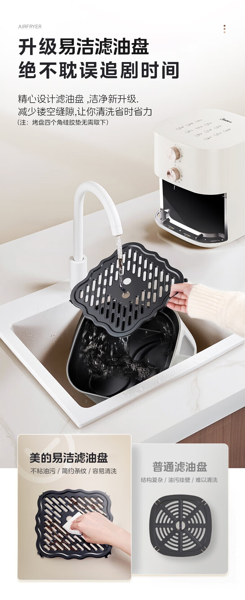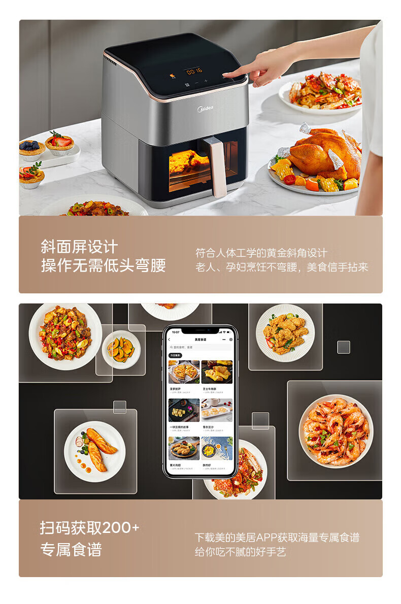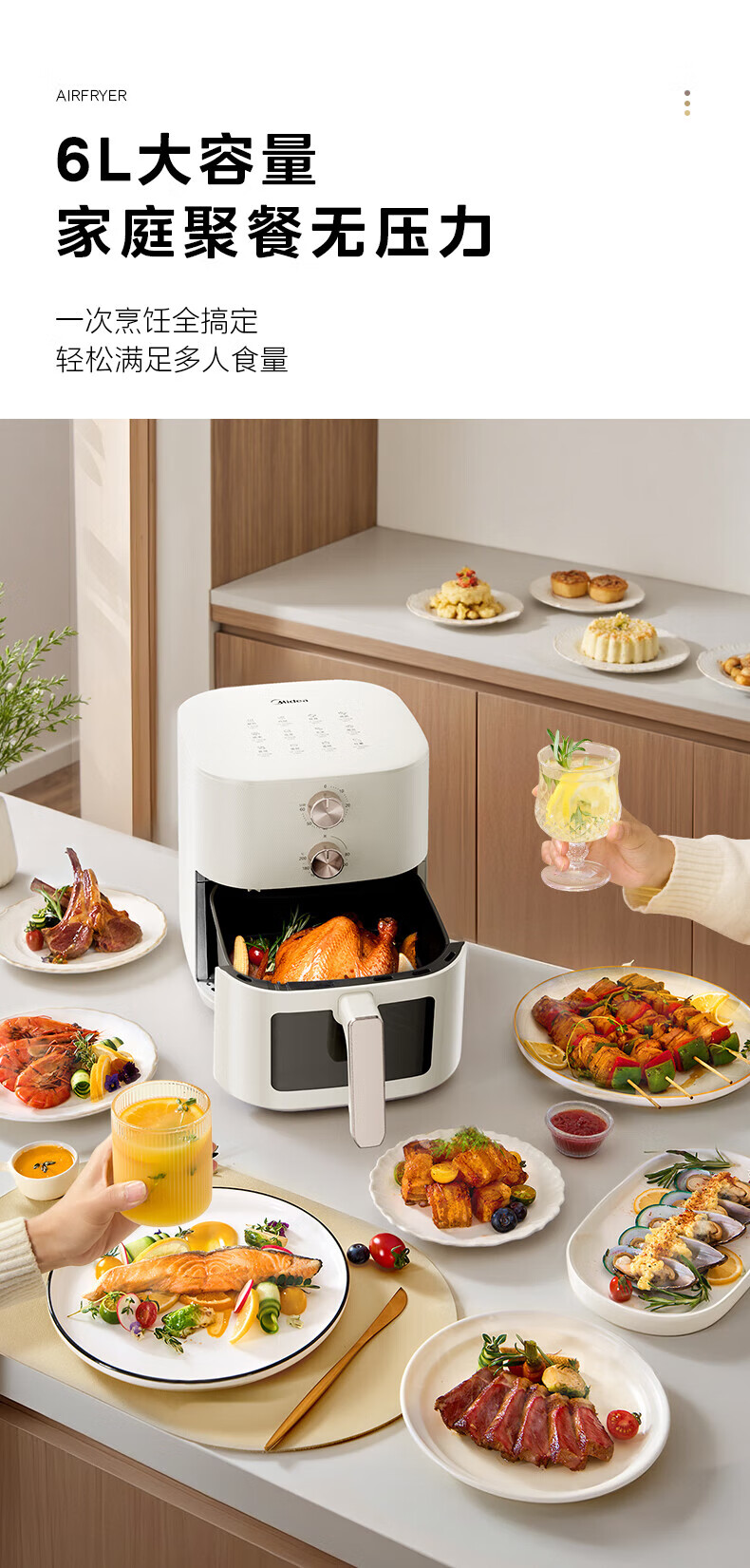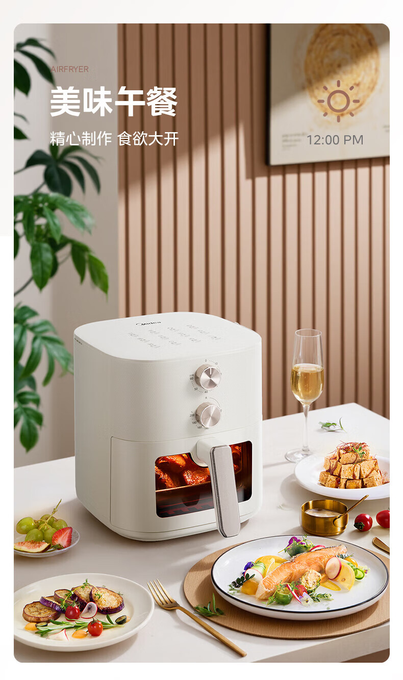 美的(Midea)空气炸锅 智能全自动免翻面 高清可视窗嫩烤家用大容量 多功能炸烤箱 空气炸锅一体机 【电子彩屏|AI智能烹饪】539J5- 5.3L