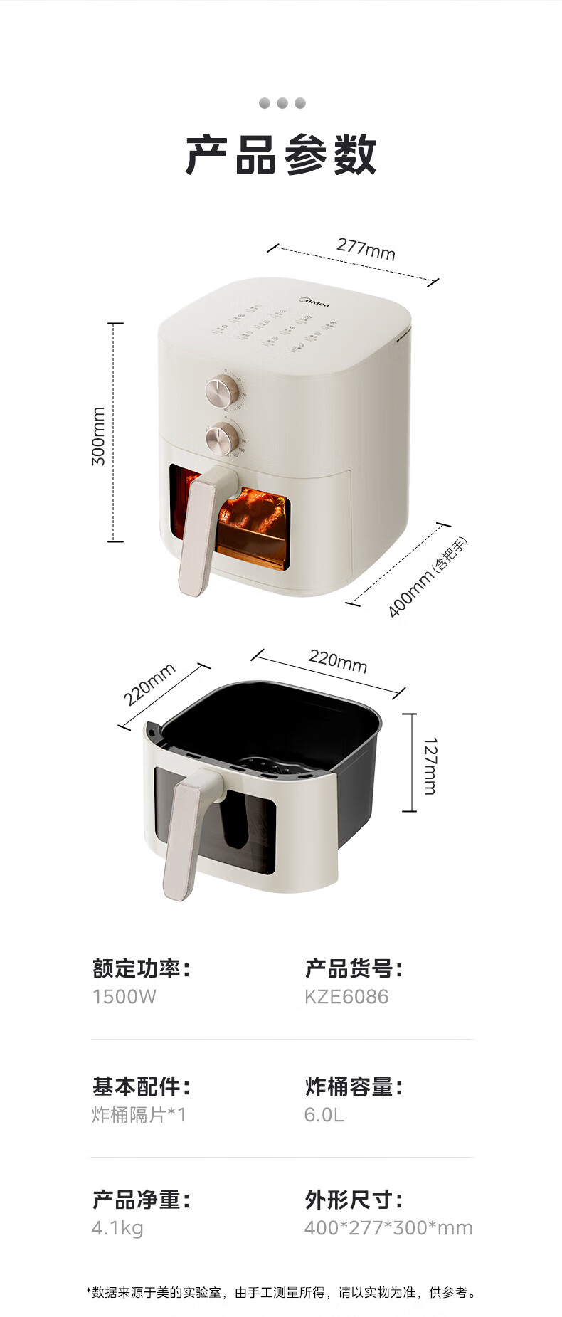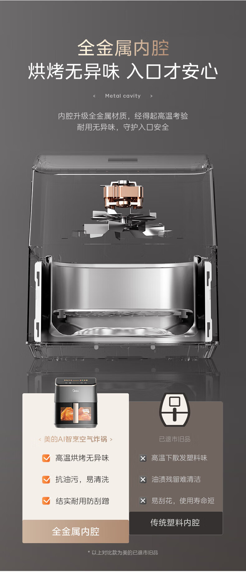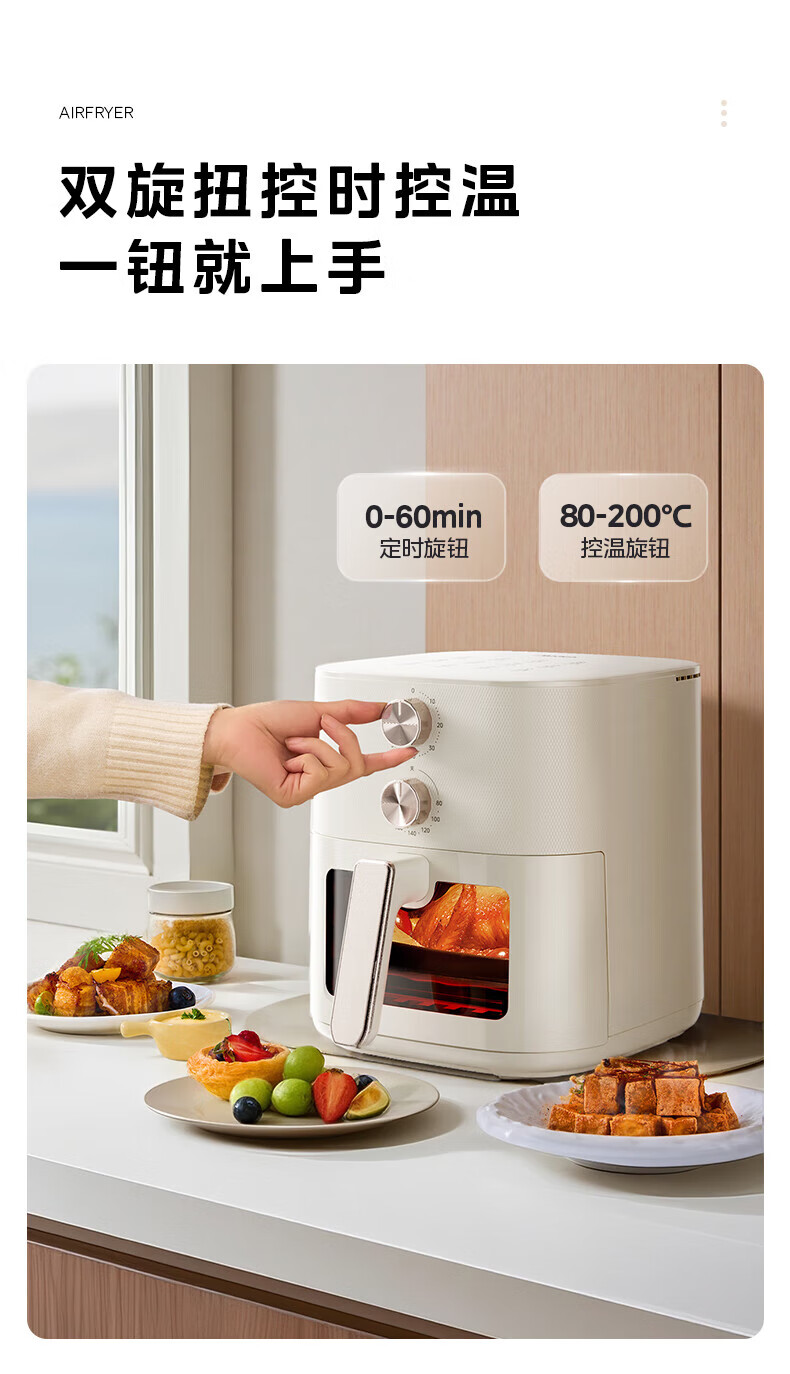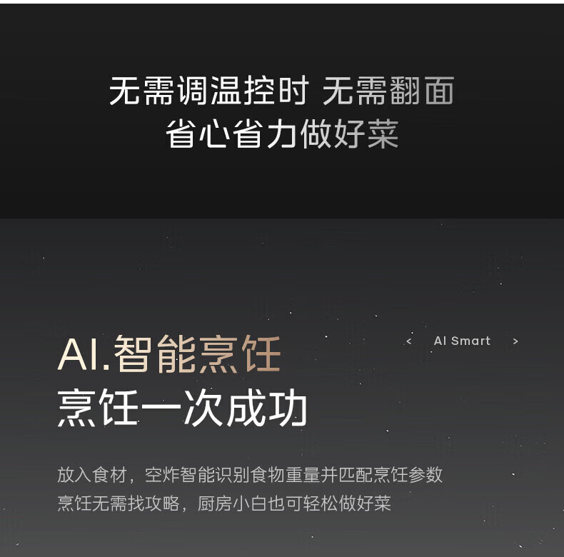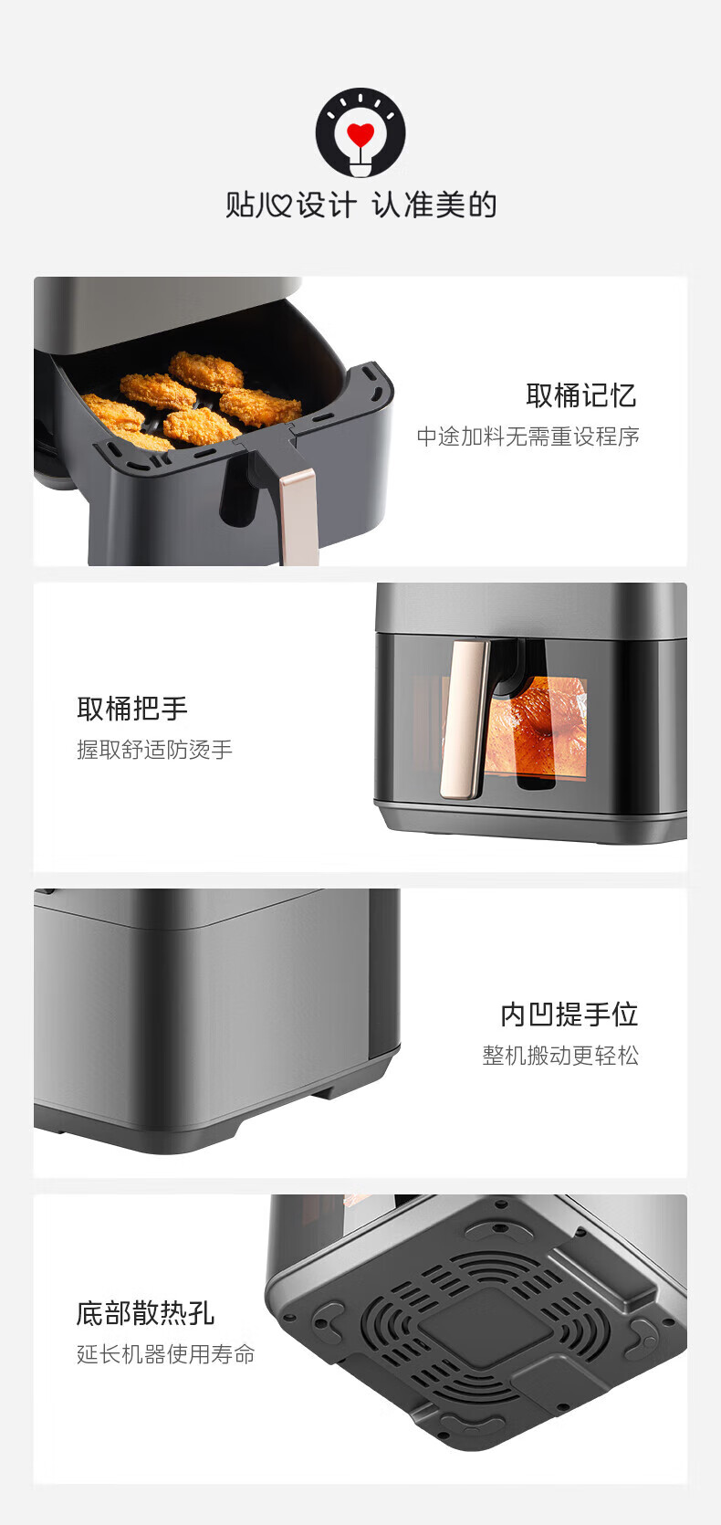 美的(Midea)空气炸锅 智能全自动免翻面 高清可视窗嫩烤家用大容量 多功能炸烤箱 空气炸锅一体机 【电子彩屏|AI智能烹饪】539J5- 5.3L