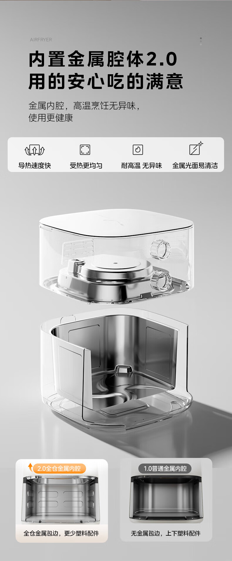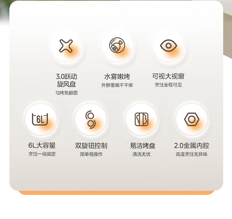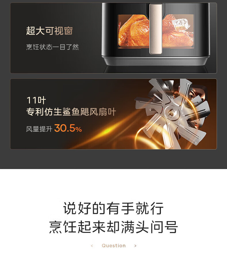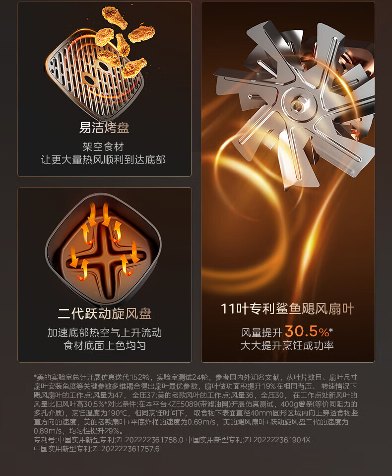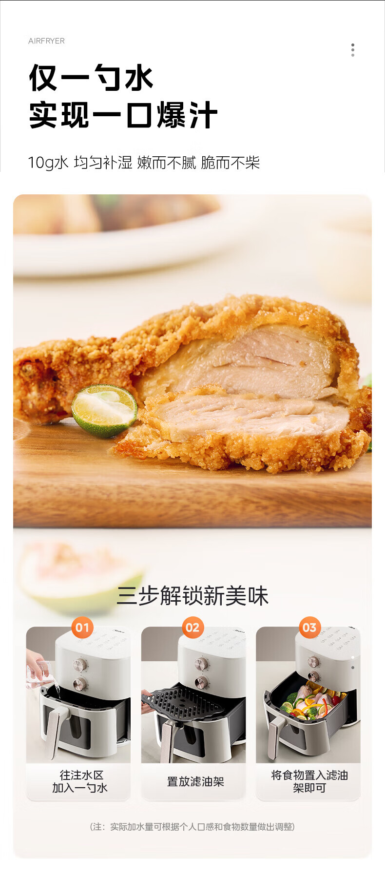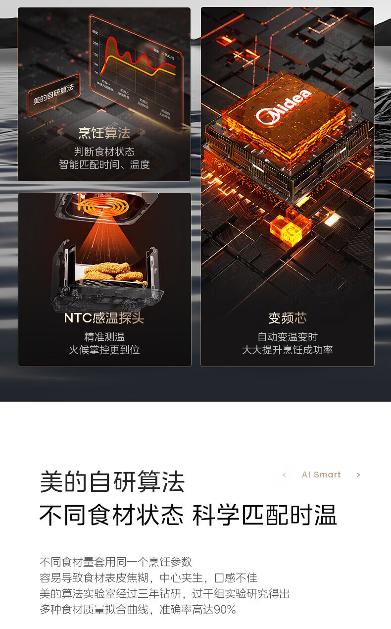美的(Midea)空气炸锅 智能全自动免翻面 高清可视窗嫩烤家用大容量 多功能炸烤箱 空气炸锅一体机 【电子彩屏|AI智能烹饪】539J5- 5.3L