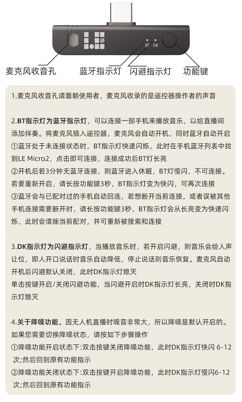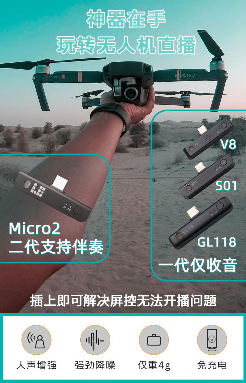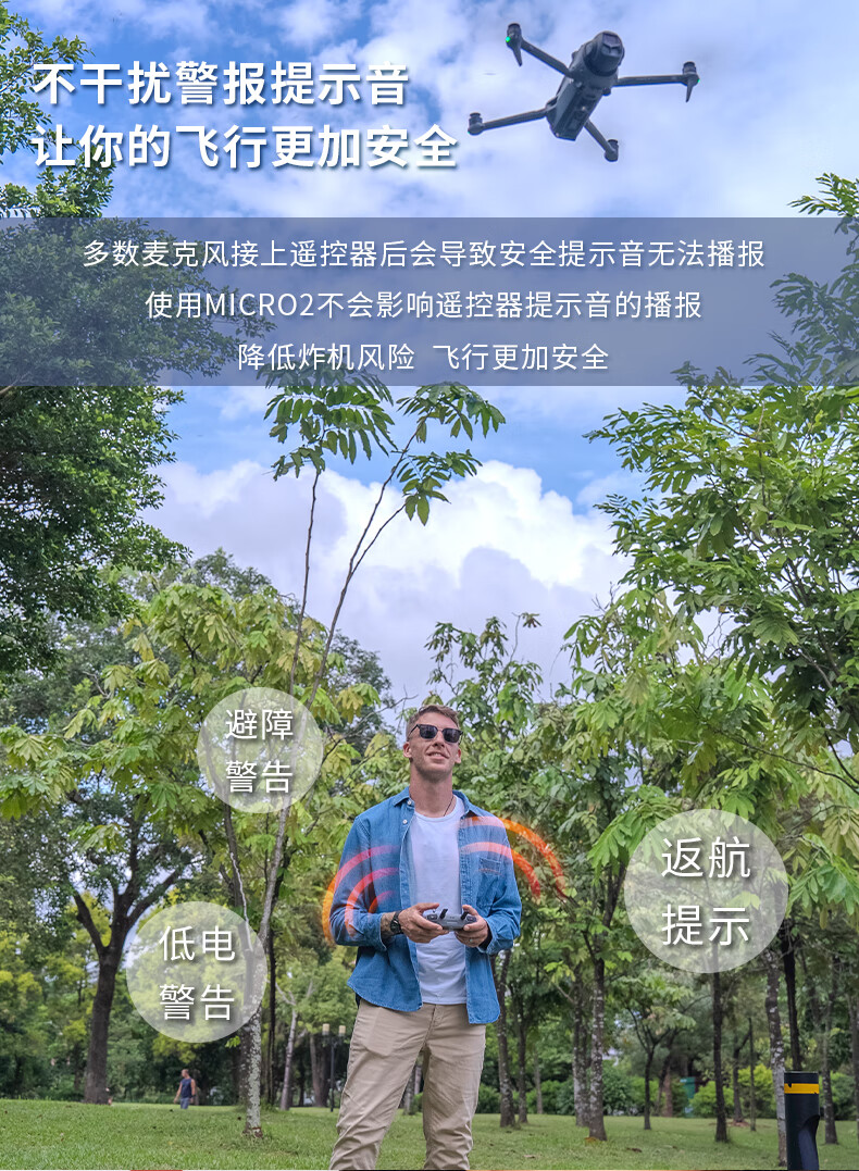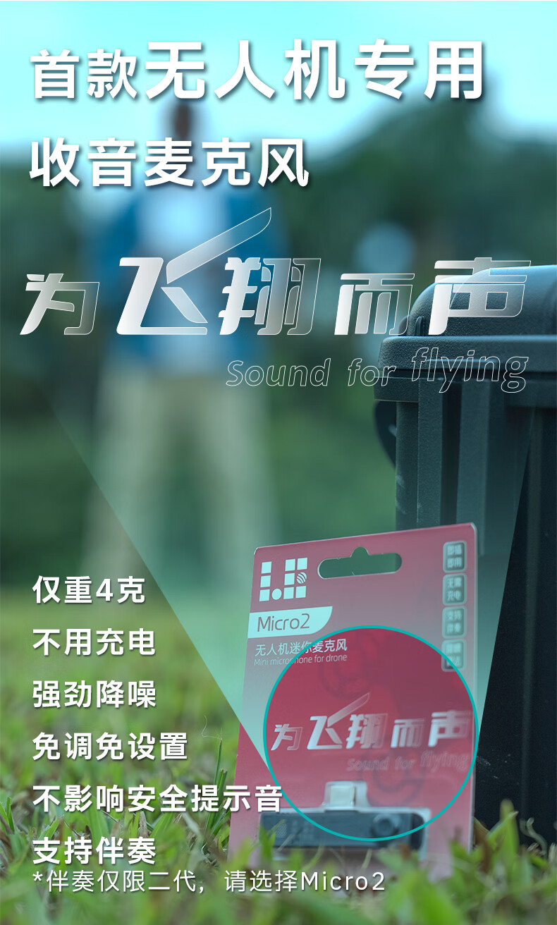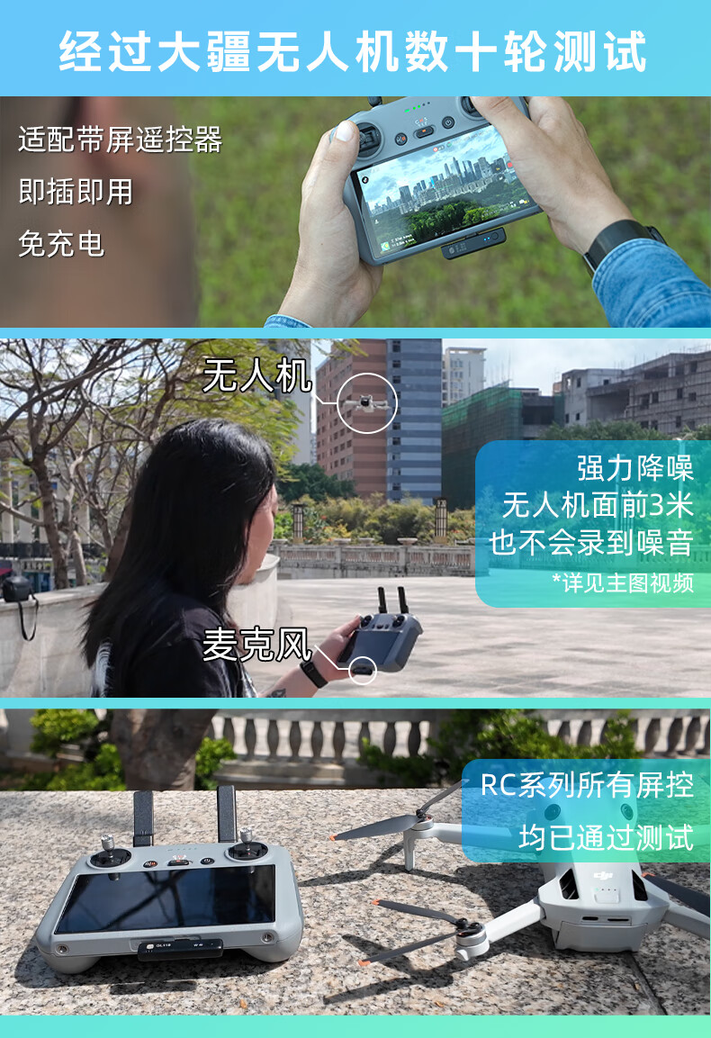 LE MICTECH麦克风GL118麦克风智能降噪适用大疆无人机RC RC2 RC pro 屏控直播使用遥控器外置降噪麦克风 Micro 2【二代】支持伴奏 无人机麦克风