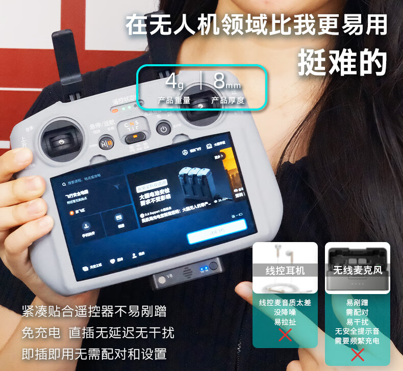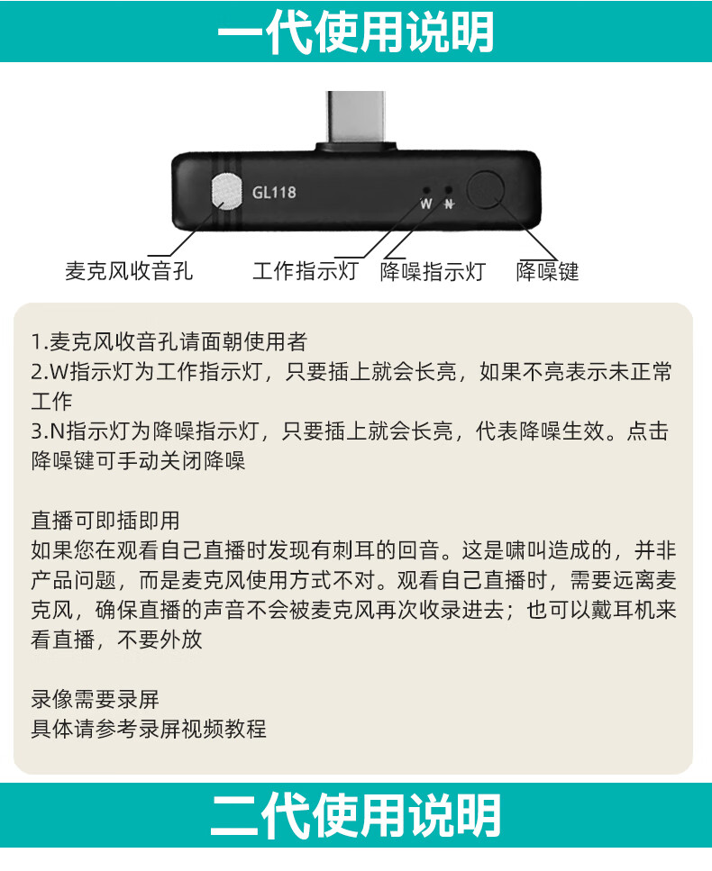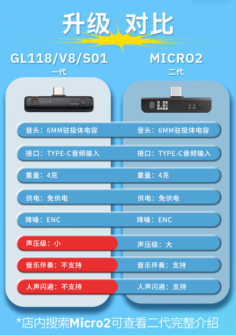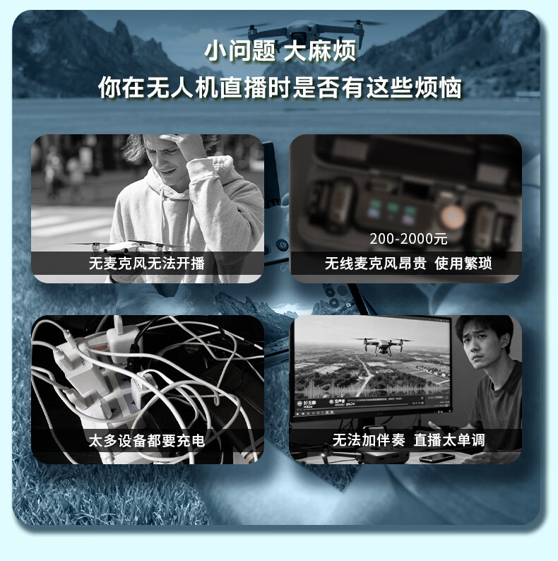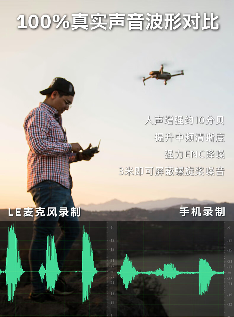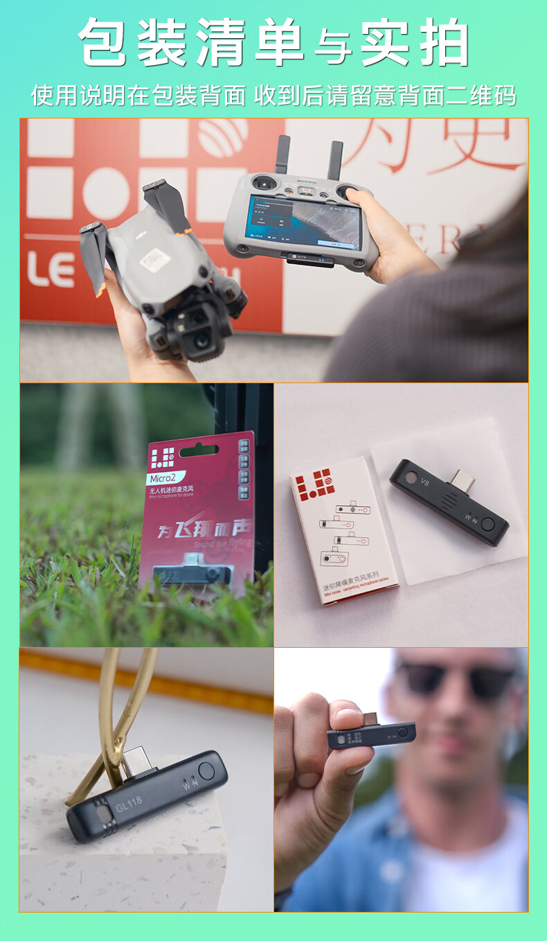 LE MICTECH麦克风GL118麦克风智能降噪适用大疆无人机RC RC2 RC pro 屏控直播使用遥控器外置降噪麦克风 Micro 2【二代】支持伴奏 无人机麦克风