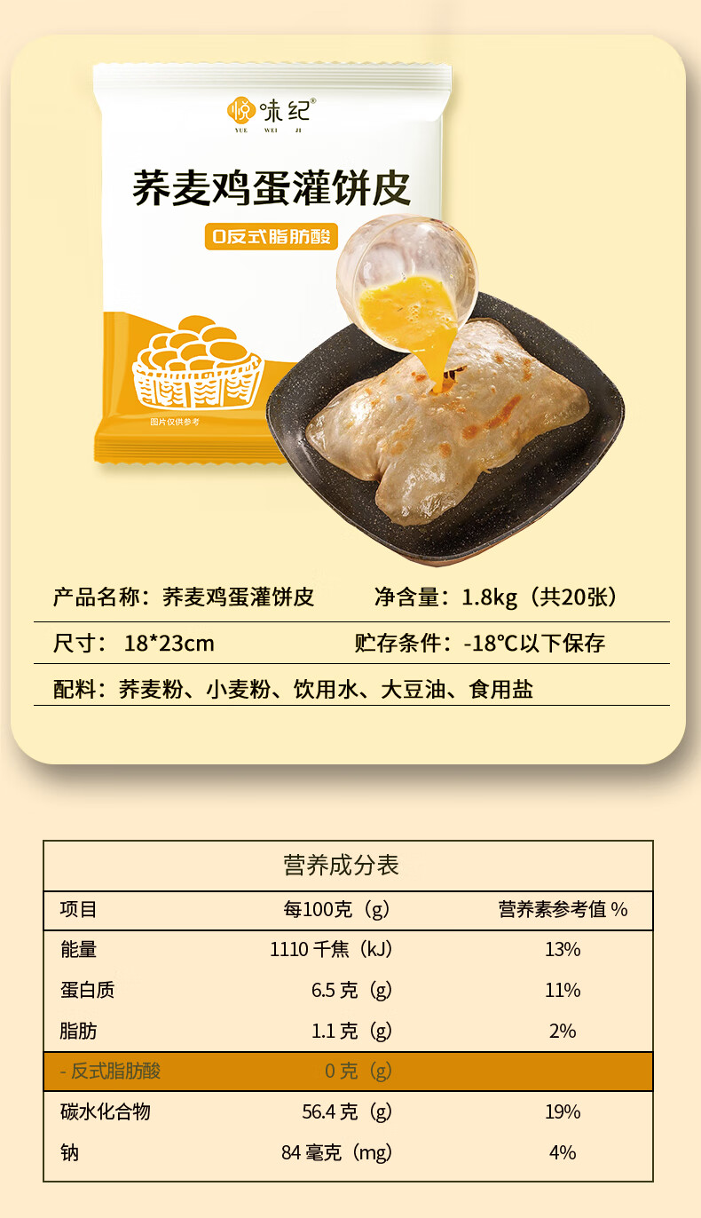 悦味纪 鸡蛋灌饼皮 原味/黄油/荞麦三种口味 手抓饼卷饼半成品早餐速食 【20张】原味灌饼*1袋