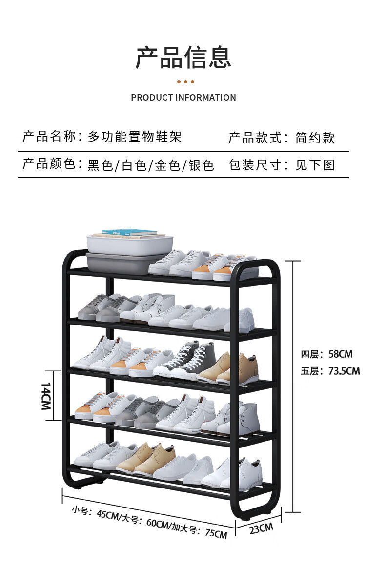 【现货现发】鞋架子宿舍家用门口收纳多层快速组装简易鞋架 6层75cm-黑色