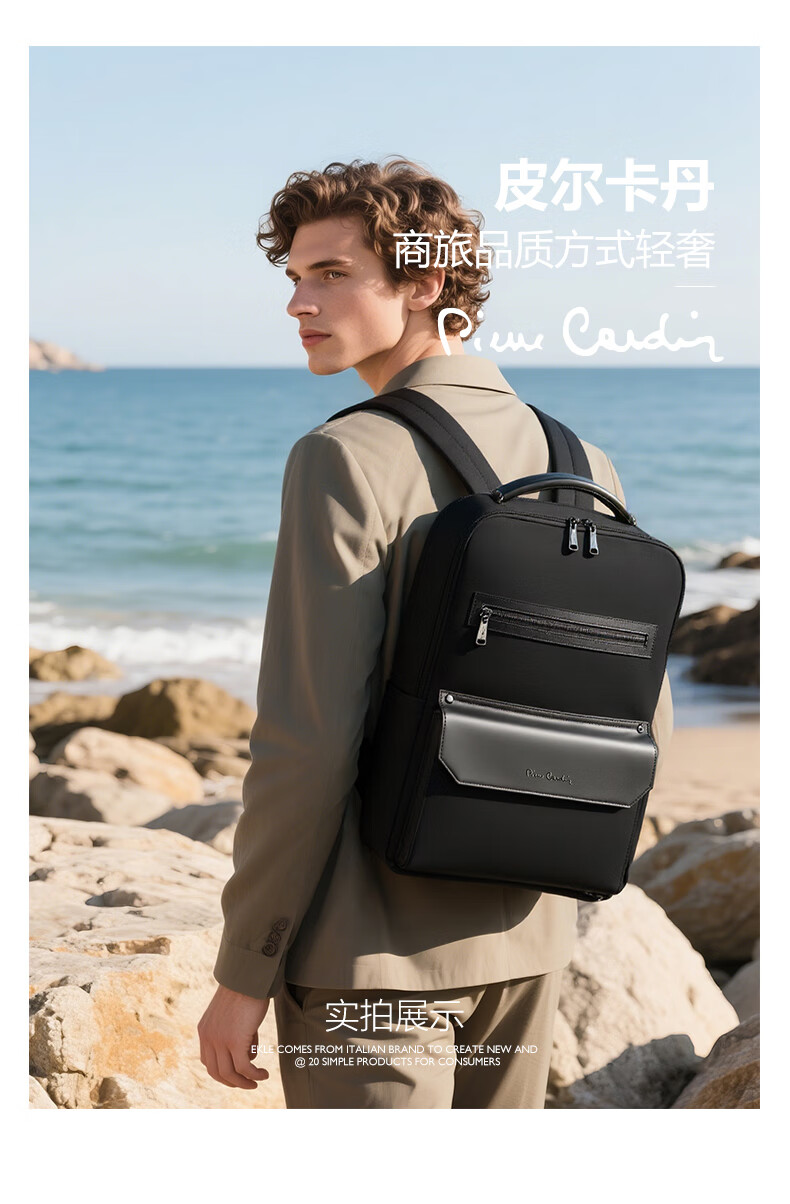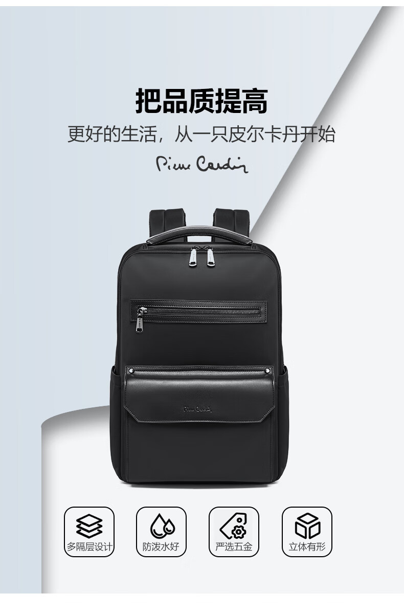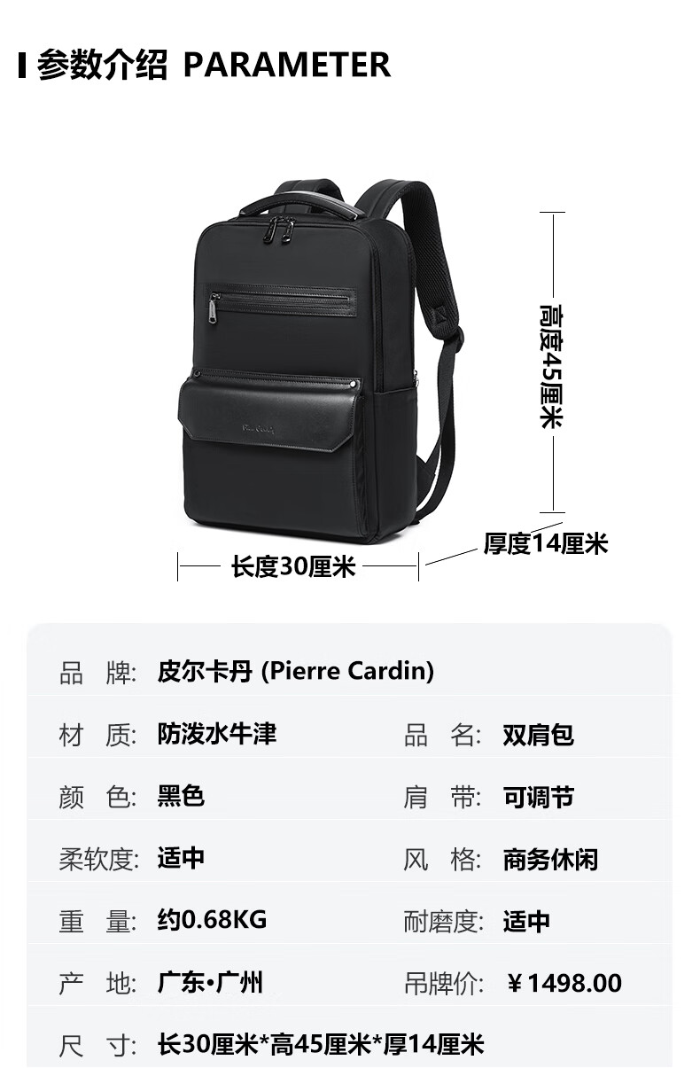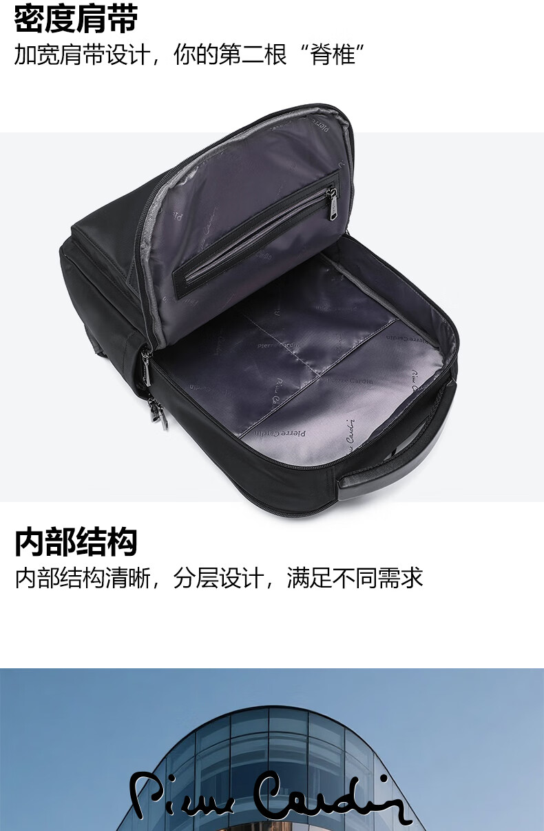 皮尔卡丹(pierre cardin)男包新款双肩包男商务出差旅行轻便电脑包背包男士大容量书包通勤 黑色【可放下15.6寸笔记本电脑】 长30高45厚度14厘米