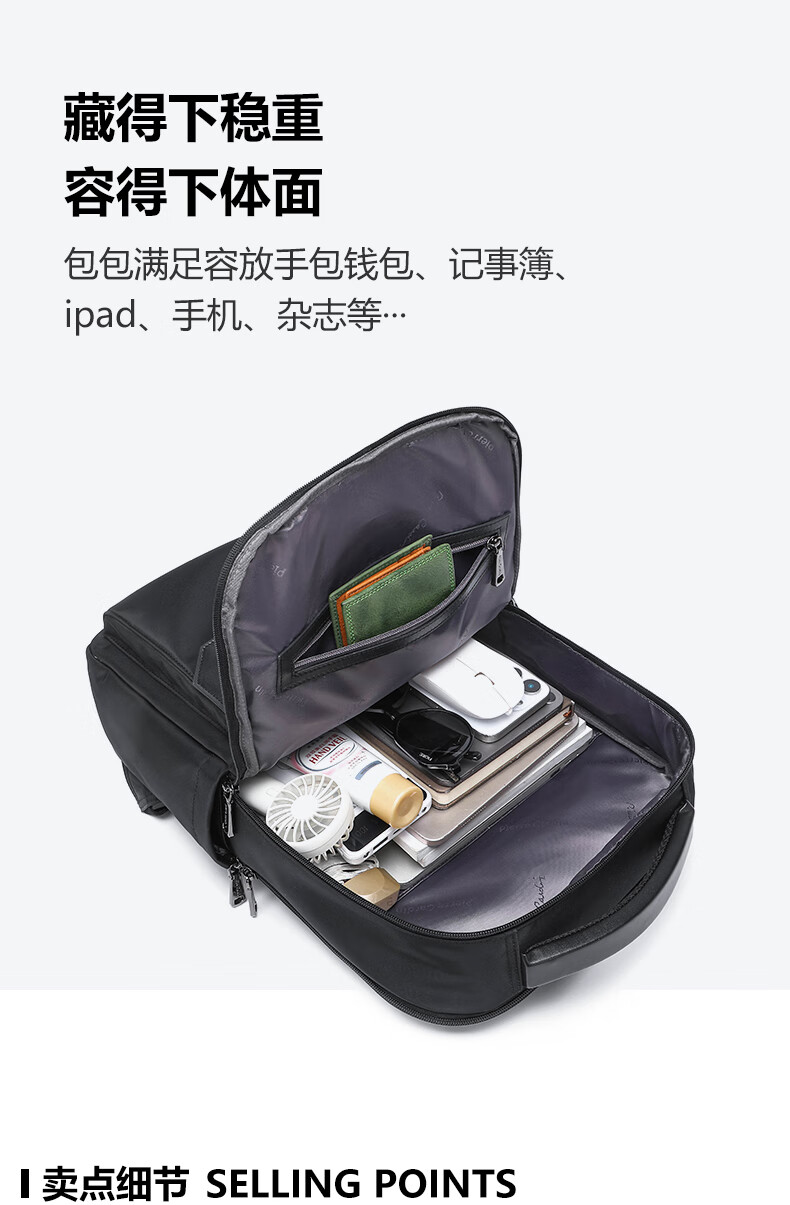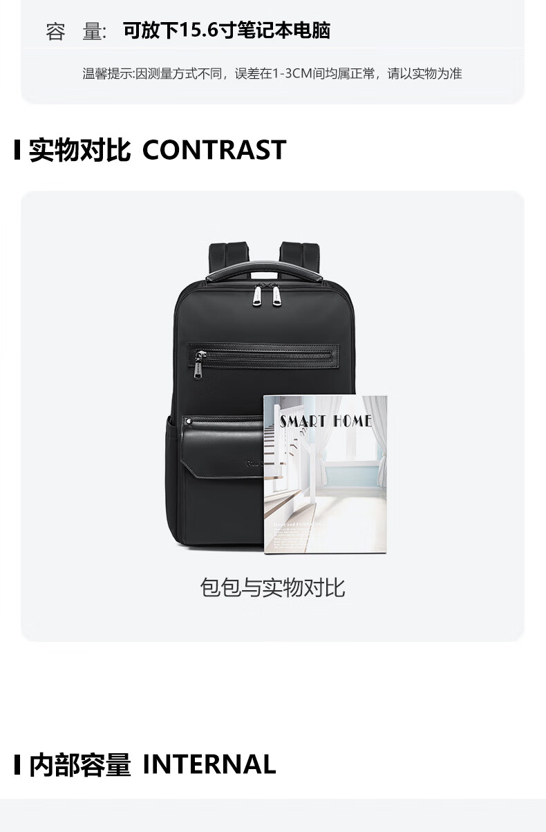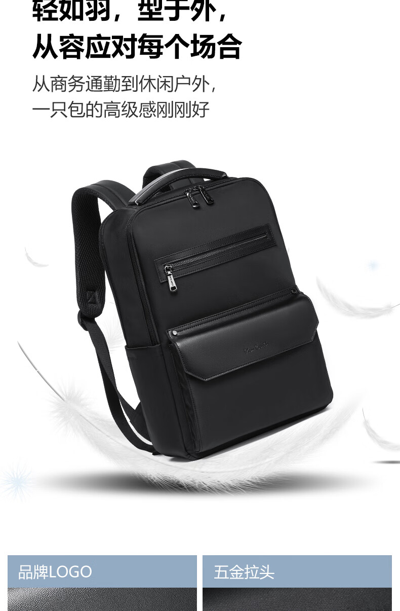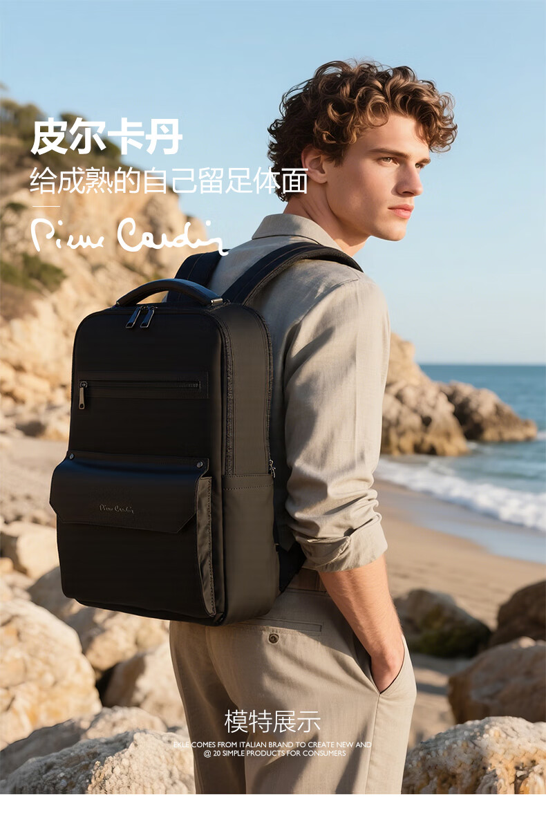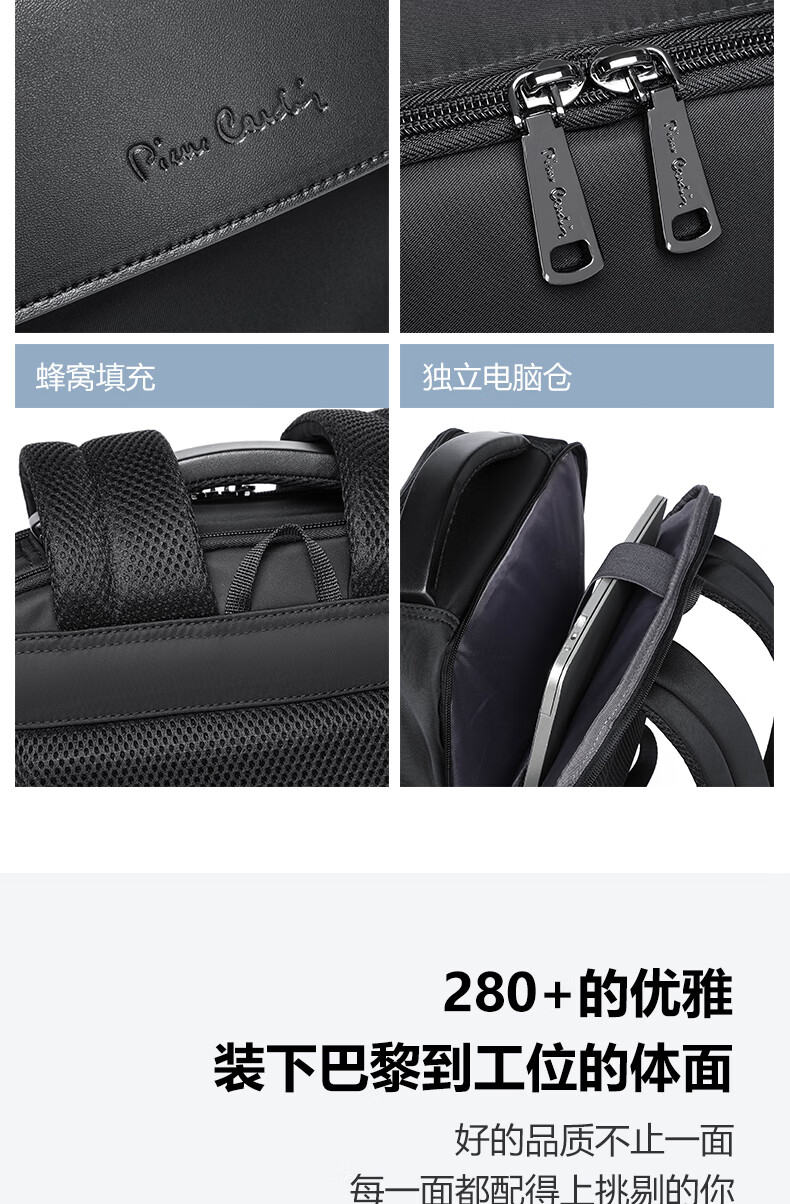 皮尔卡丹(pierre cardin)男包新款双肩包男商务出差旅行轻便电脑包背包男士大容量书包通勤 黑色【可放下15.6寸笔记本电脑】 长30高45厚度14厘米