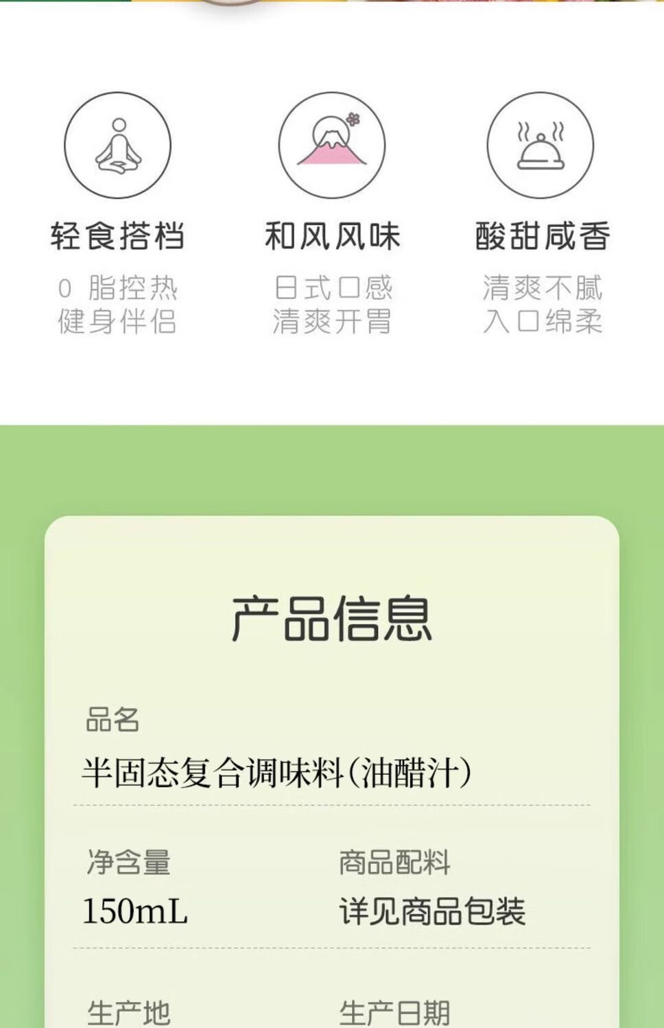 【南阳老字号】油醋汁150ml装0脂肪轻食健身酱料凉拌水煮菜酱料 150ml/瓶5瓶装