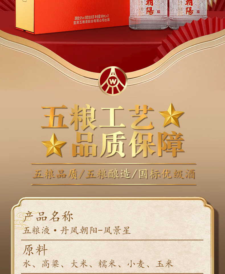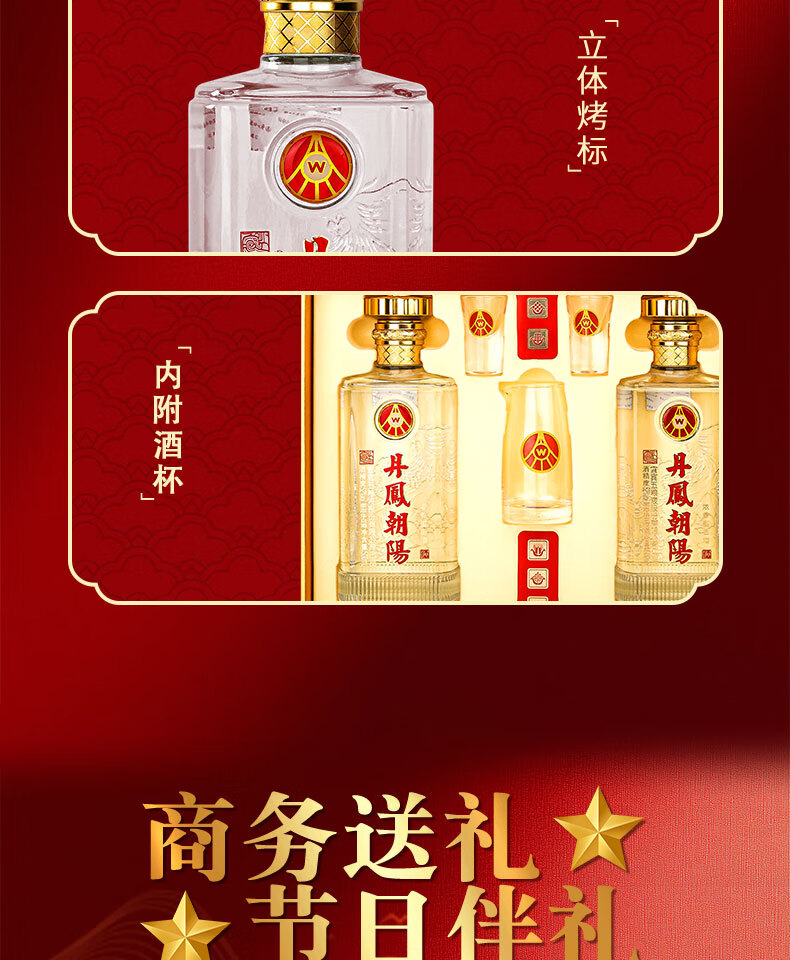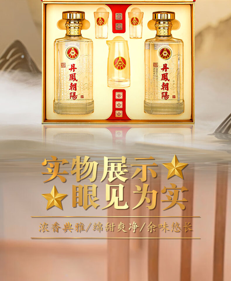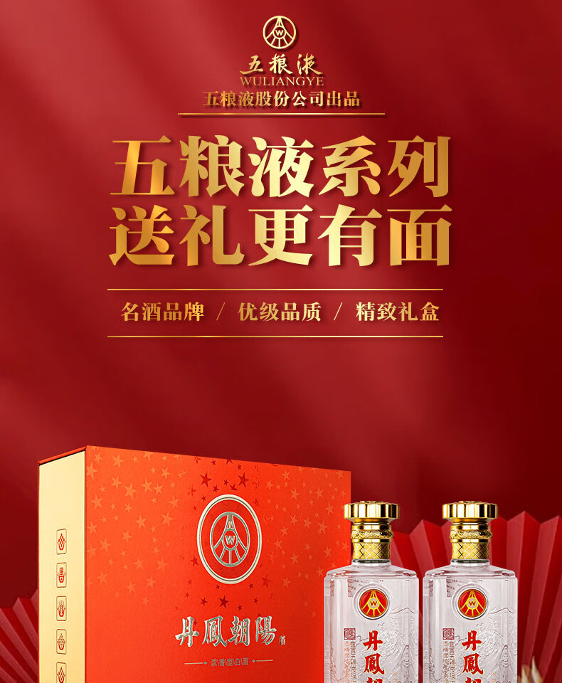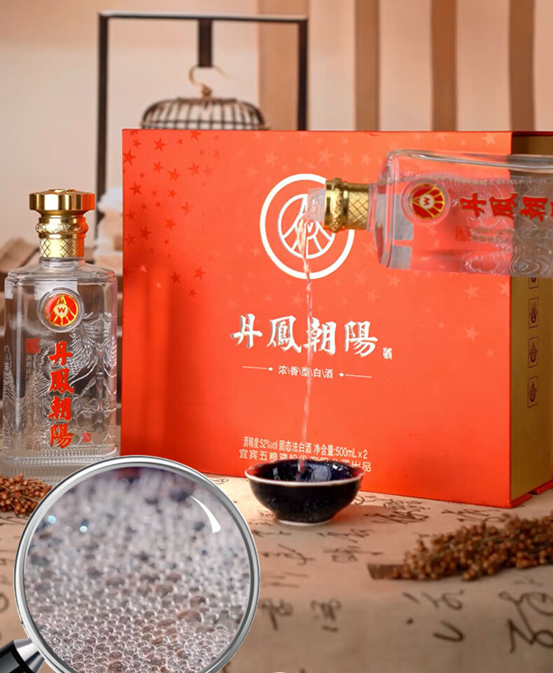 五粮液股份出品 丹凤朝阳 浓香型白酒 喜宴收藏送礼 52度 500mL 2瓶 双支礼盒装 赠礼杯