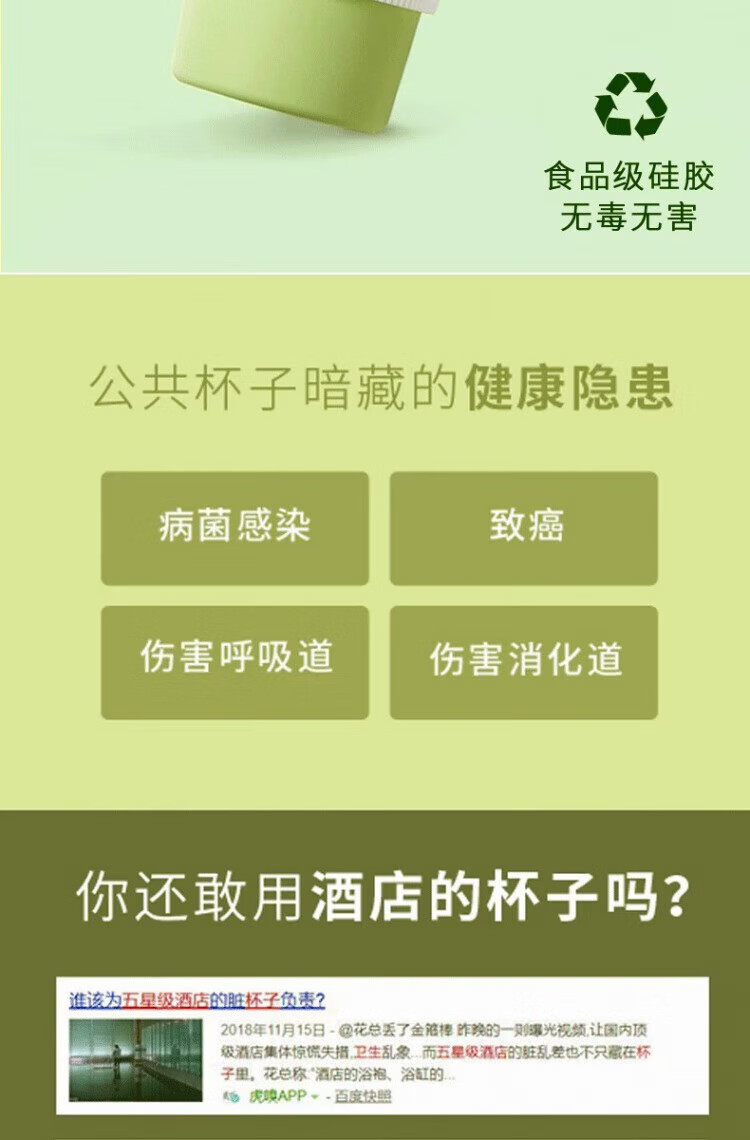 DEATKN德国旅行漱口杯食品级硅胶耐高温洗漱刷牙杯子旅游便携式折叠 灰色350ml【食品级硅胶】